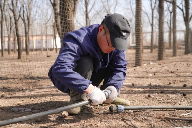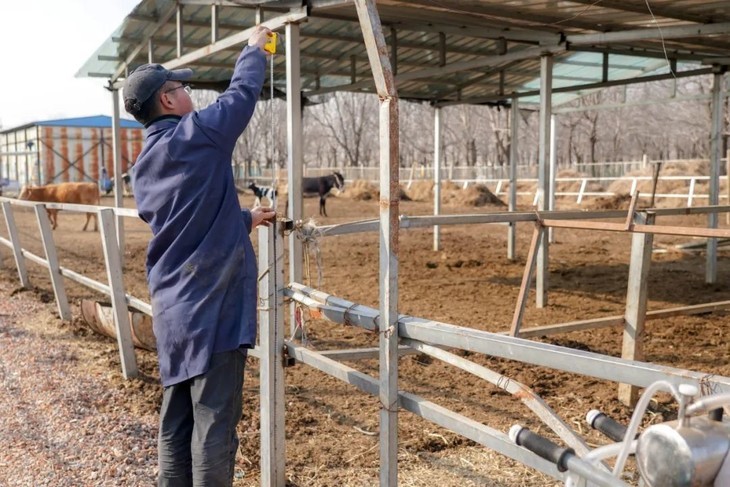 清洗完挤奶用具,他拿出卷尺比比划划,然后拉住在梨园整修小院儿的建筑师傅,让他帮忙焊一个给牛用的定位栏。这个定位栏可不是普通养殖场为了“囚禁”猪和牛,吃喝拉撒都在里面,连转身都不能只为长膘的那种,而是为了挤奶更干净更舒适专门准备的。新朝仔细叮嘱师傅一定要按自己设计的做,尺寸合适,才能符合“牛体工学”,牛更舒服了,人员也安全。不愧是在国内知名奶厂待过的人,细节更能体现出专业。