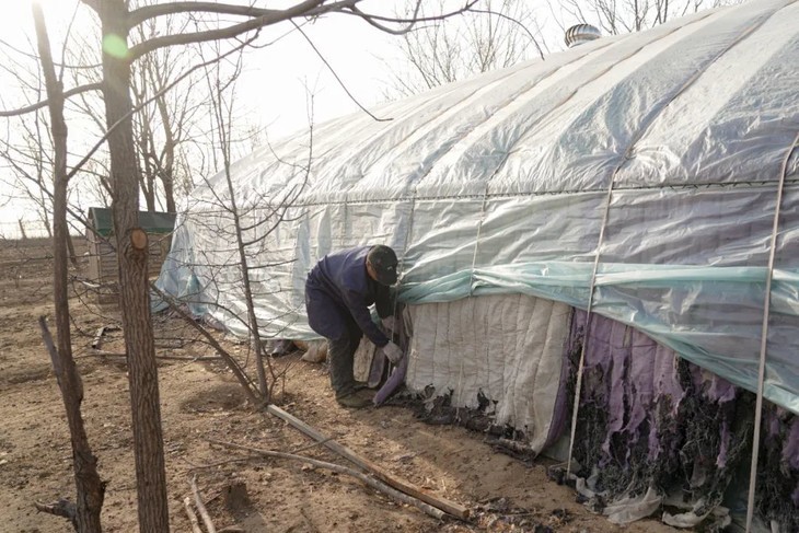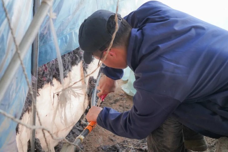 把保温的棉被放下,鸡鸭鹅慢慢溜达回家,该睡觉的睡觉,饿了就再吃几口,还有全自动的饮水管道,棚屋里的设施一应俱全,它们生活得很舒适。