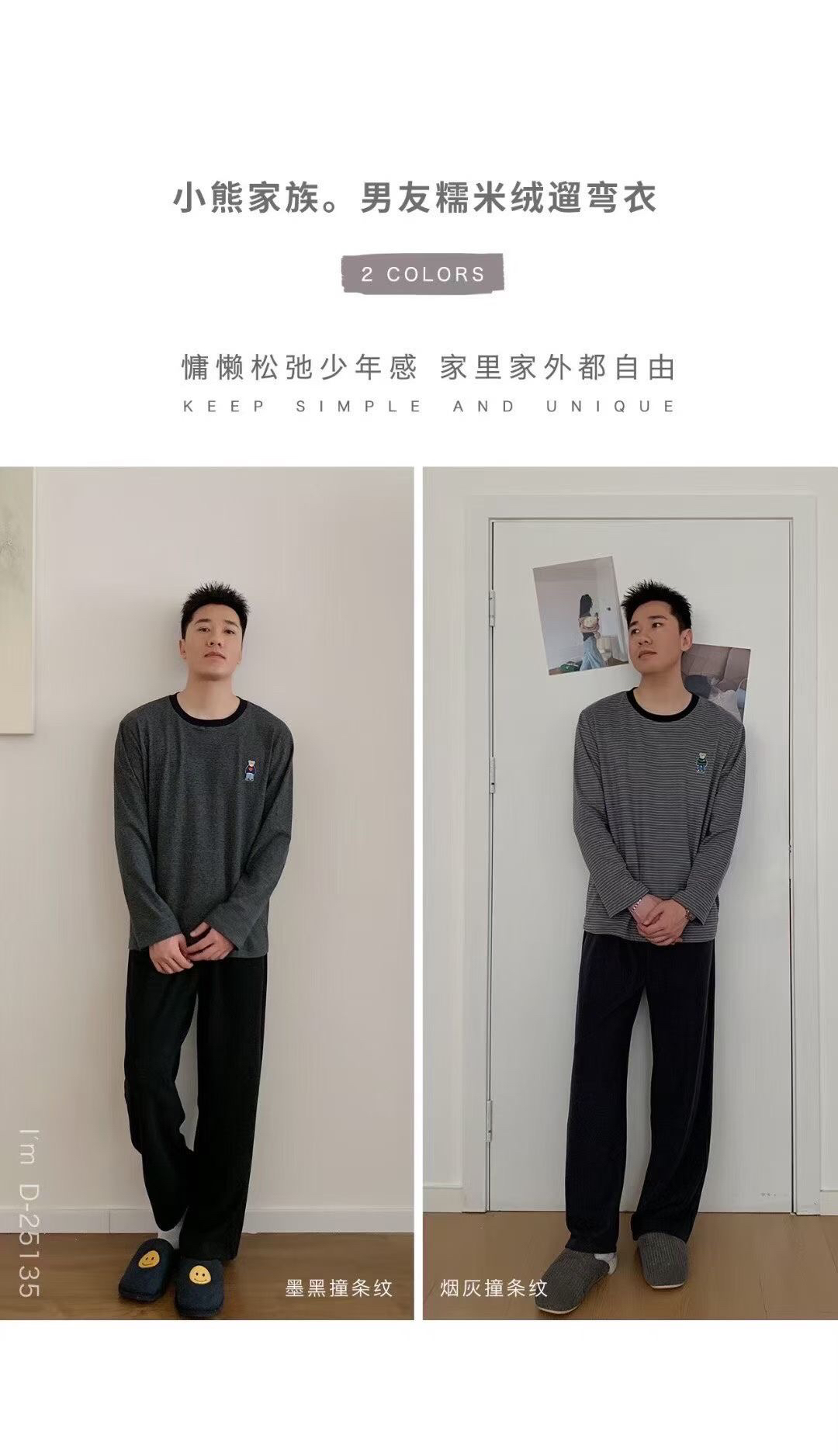 情侣款!小熊家族家居服套装 亲肤糯米绒 舒适温暖 慵懒版型宅家外出都自由自在