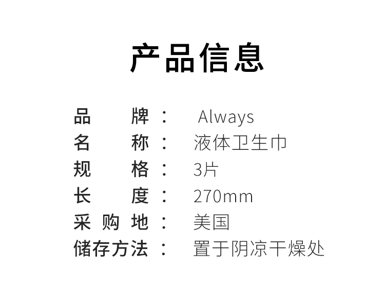 【保税仓】美国ALWAYS护舒宝Infinity系列护翼液体卫生巾无香型2号量多日用3片/盒