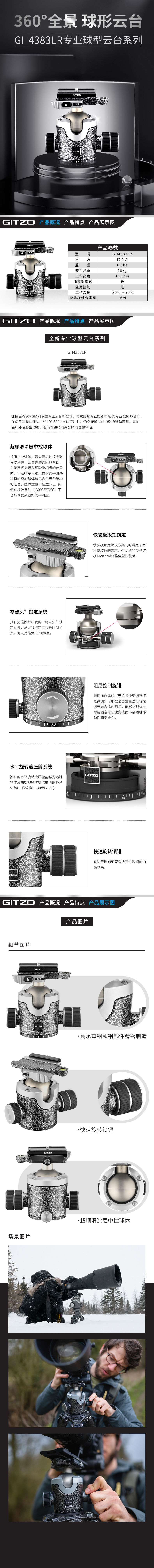 这款捷信4系球型云台GH4383LR (扳锁版) 是一款为大型变焦镜头而设计的高承重三脚架云台,其设计确保了运动的平稳性和精确性。