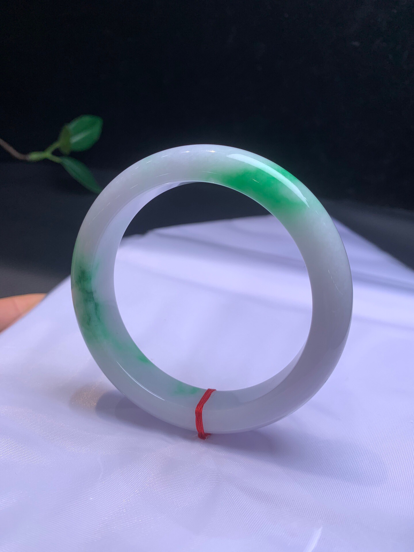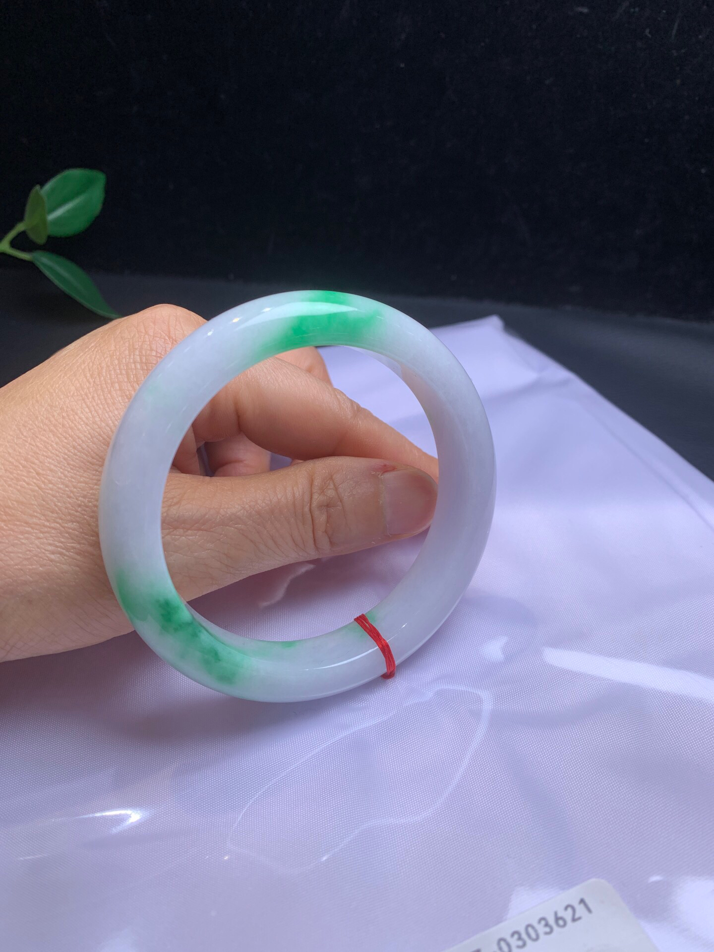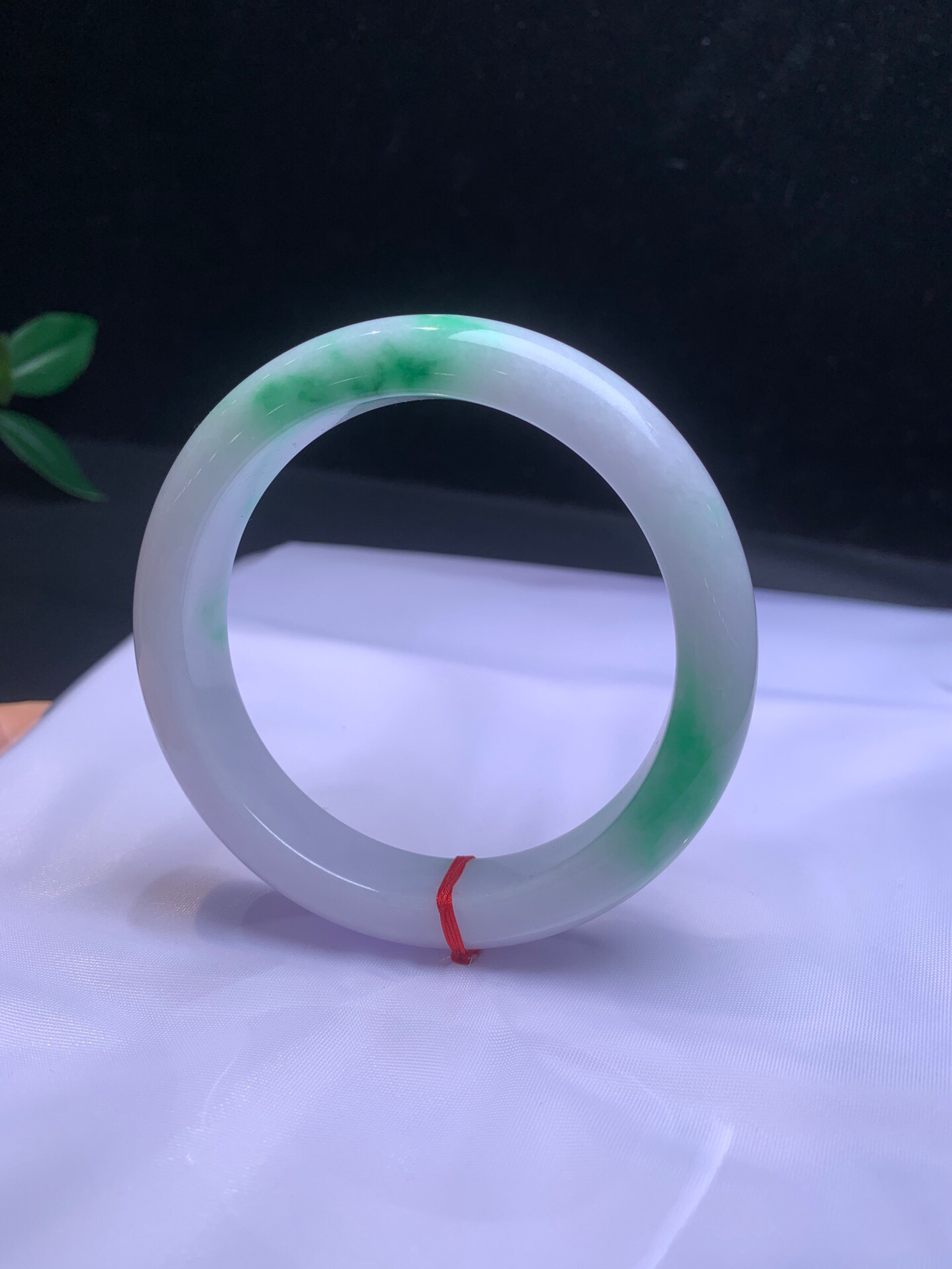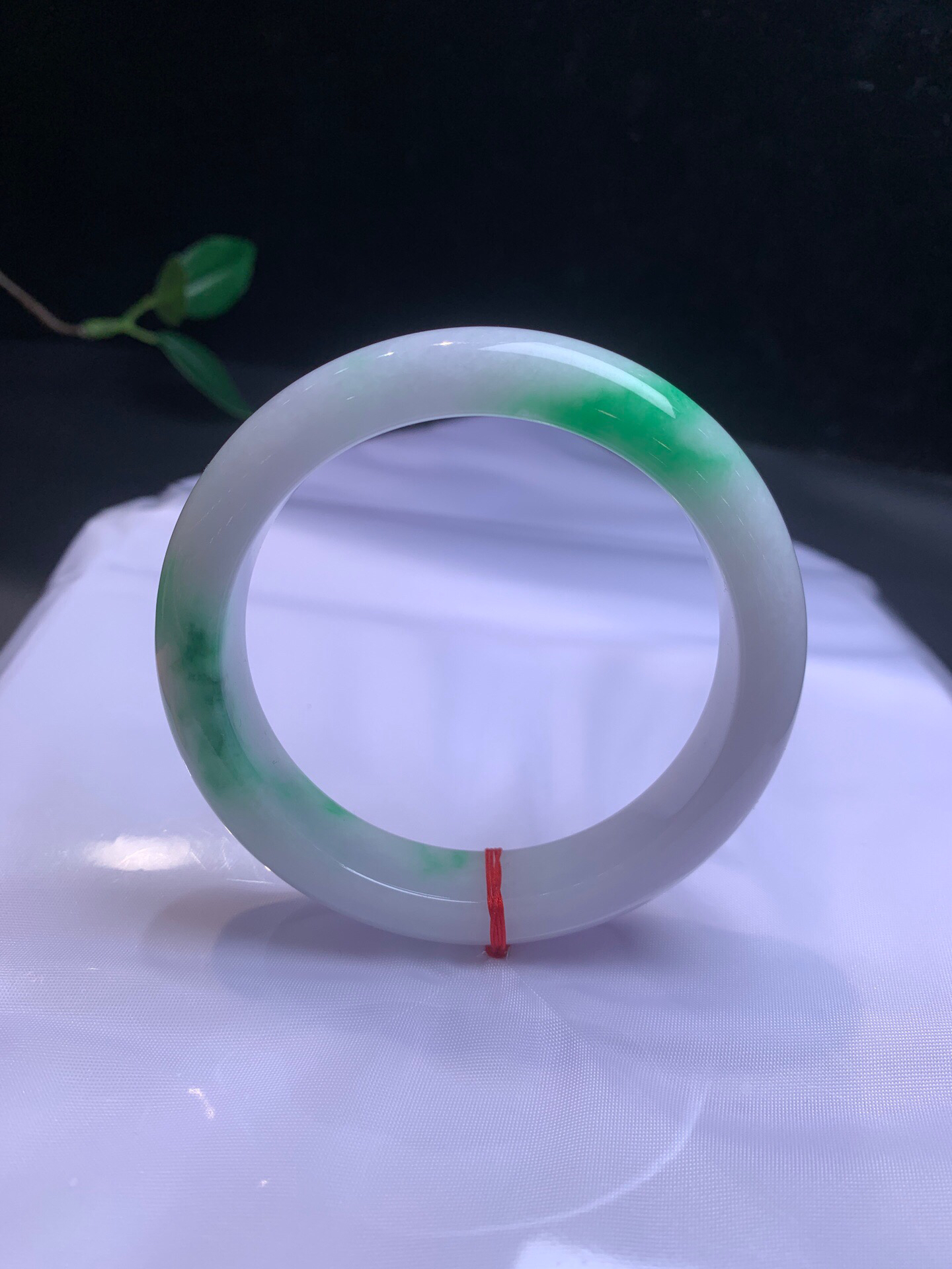 612618,58.5飘阳绿正圈手镯。白底青 干净白底 二处带阳绿色,底妆干净,完美有特色。超值价💰28400 #优石客珠宝#香玉荟萃