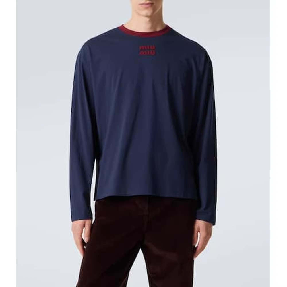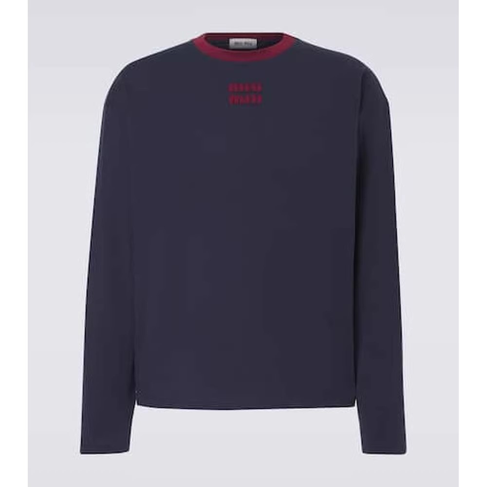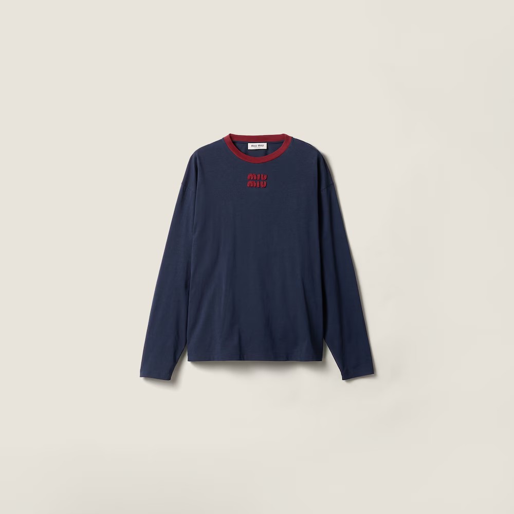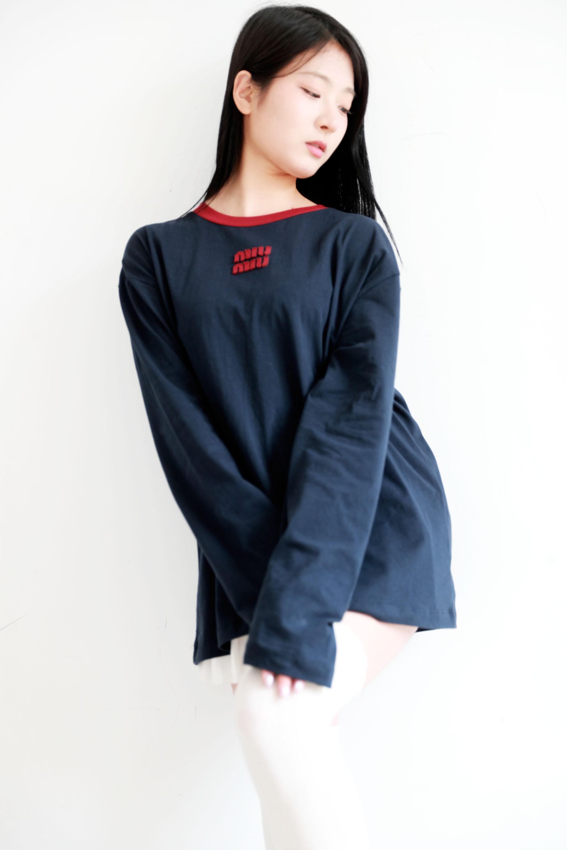 很仙很仙的长袖tee,胸口小标刺绣。靛蓝圆领长袖复古上衣E031160