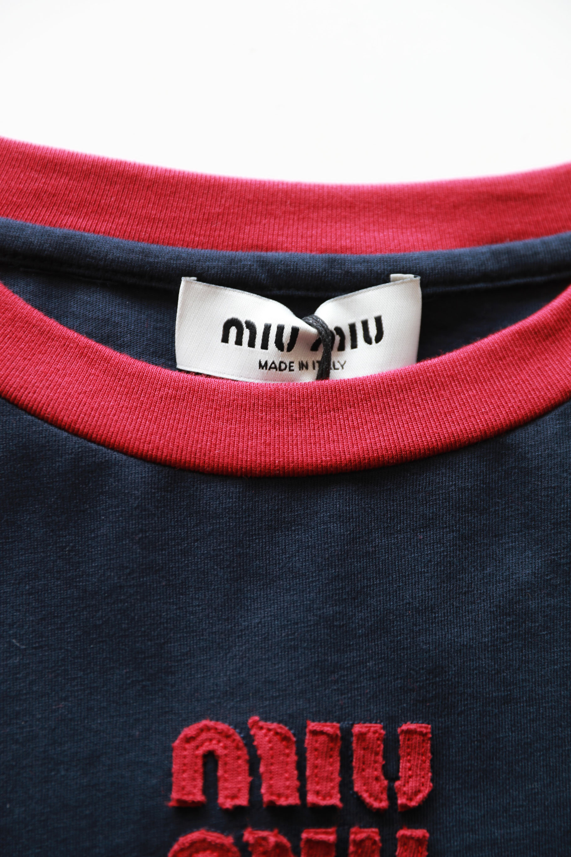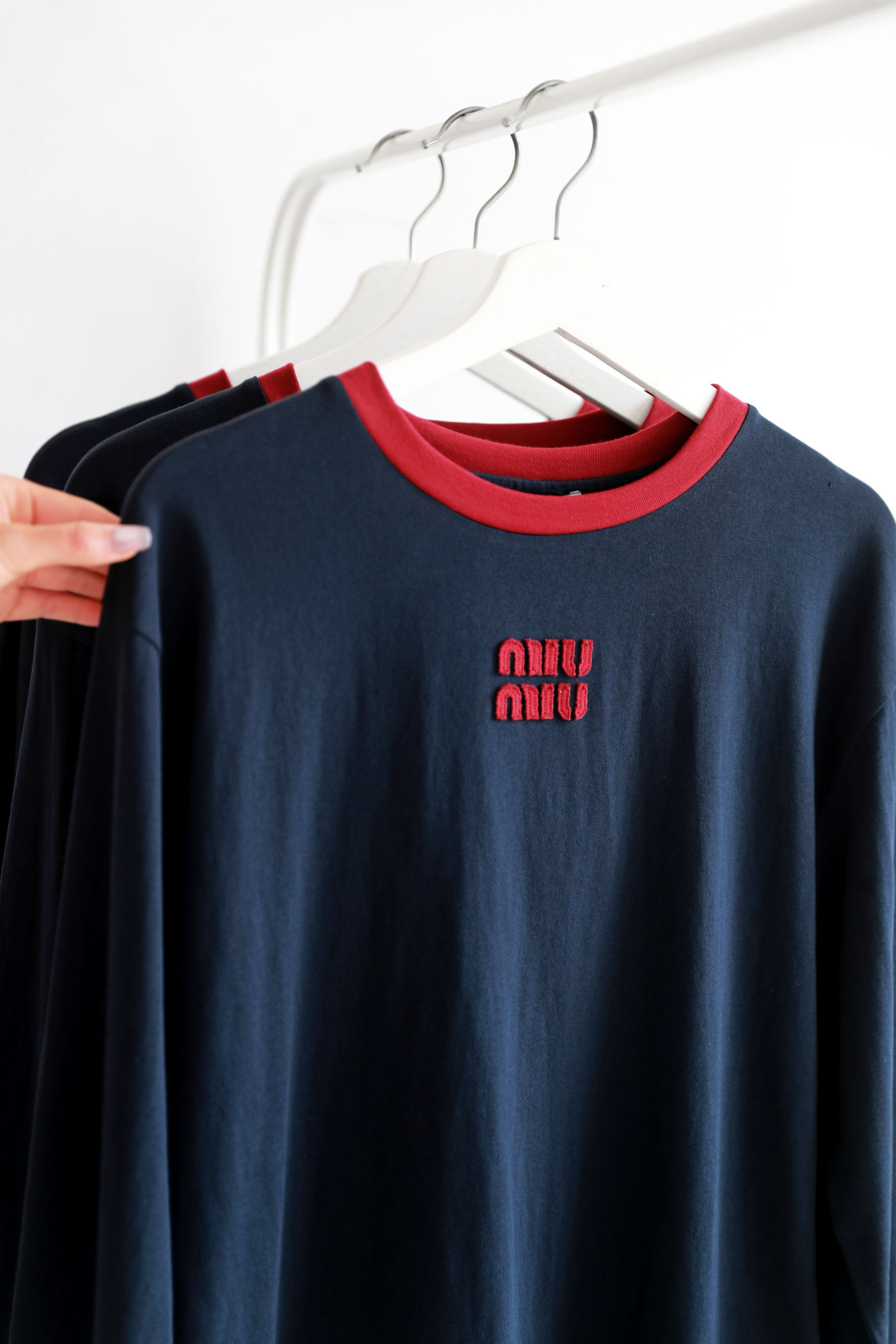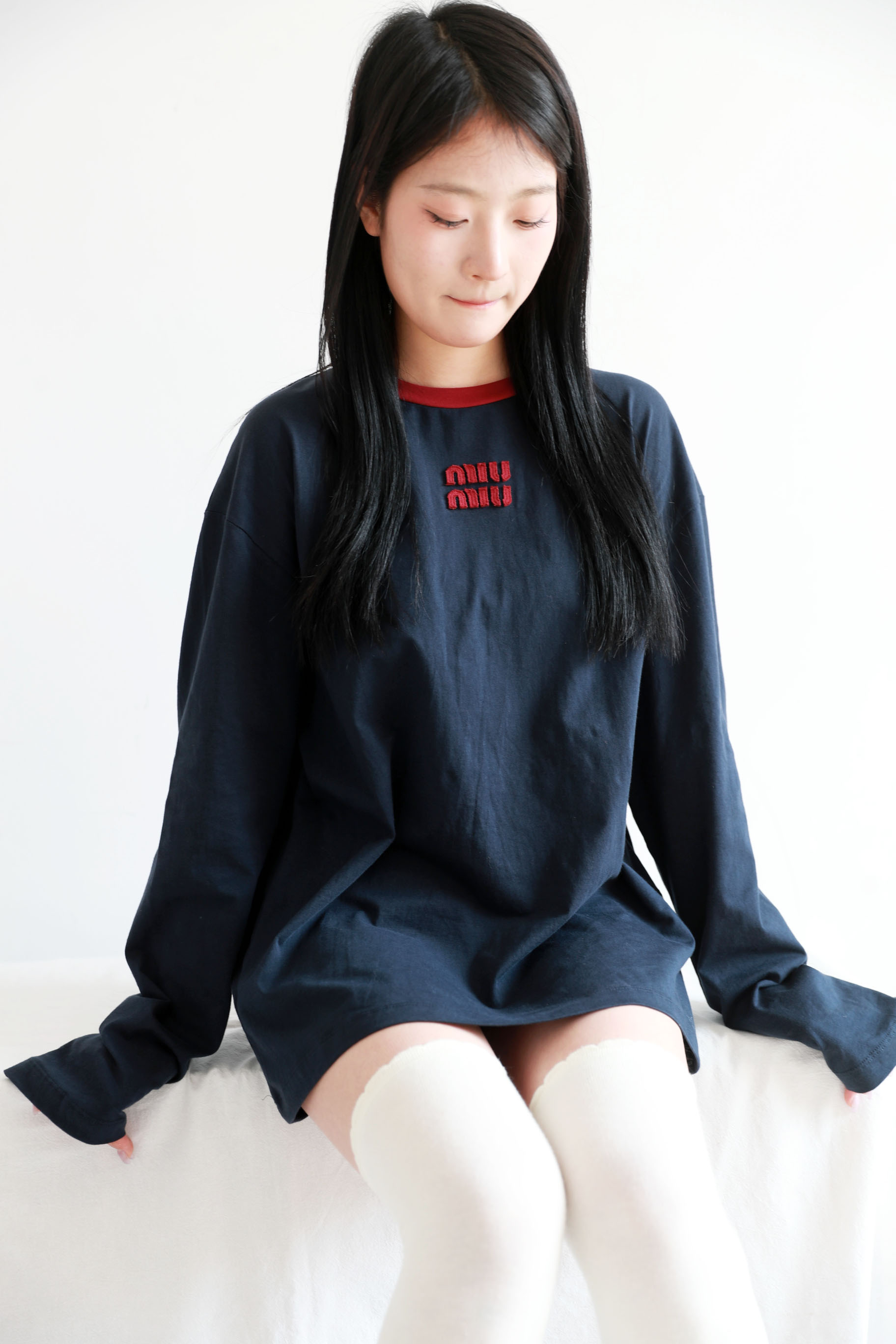 很仙很仙的长袖tee,胸口小标刺绣。靛蓝圆领长袖复古上衣E031160