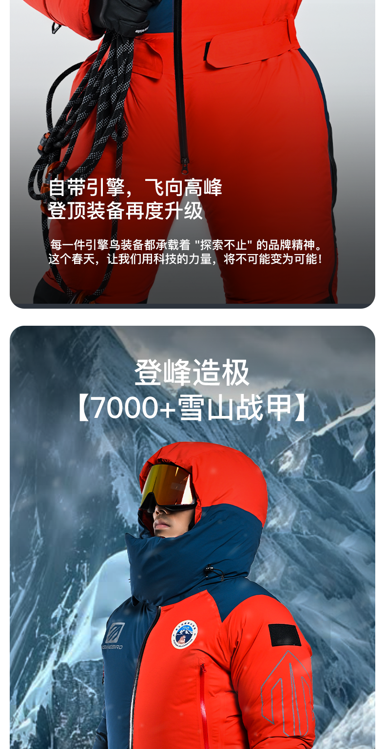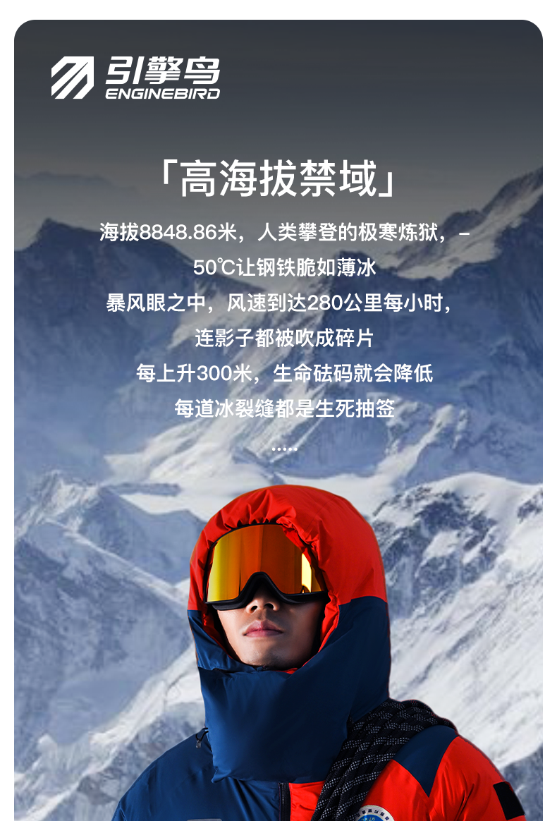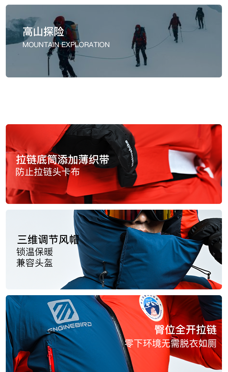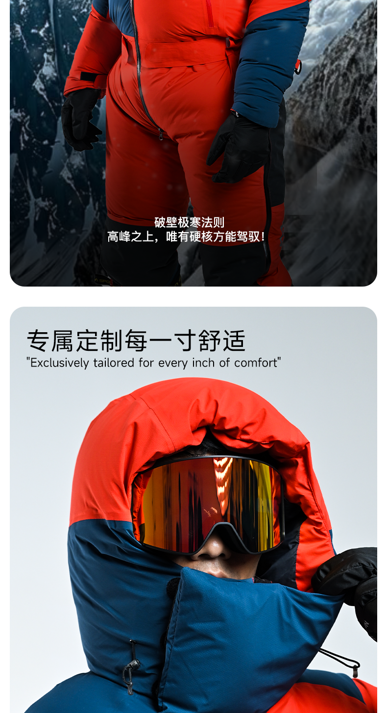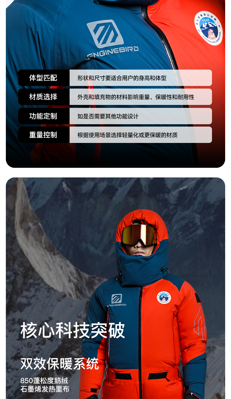 引擎鸟定制款连体羽绒登山服防风保暖户外运动外套男女同款