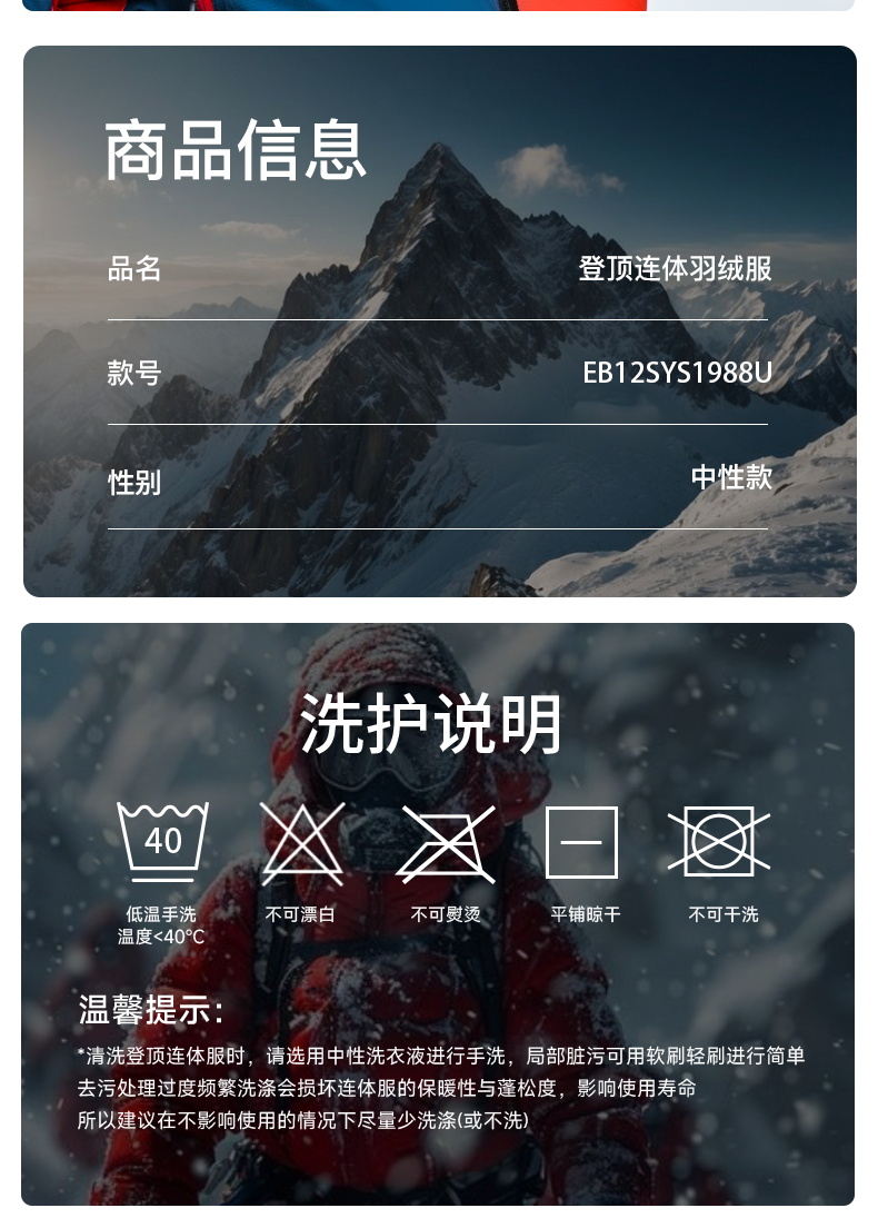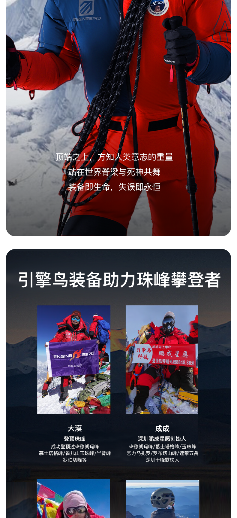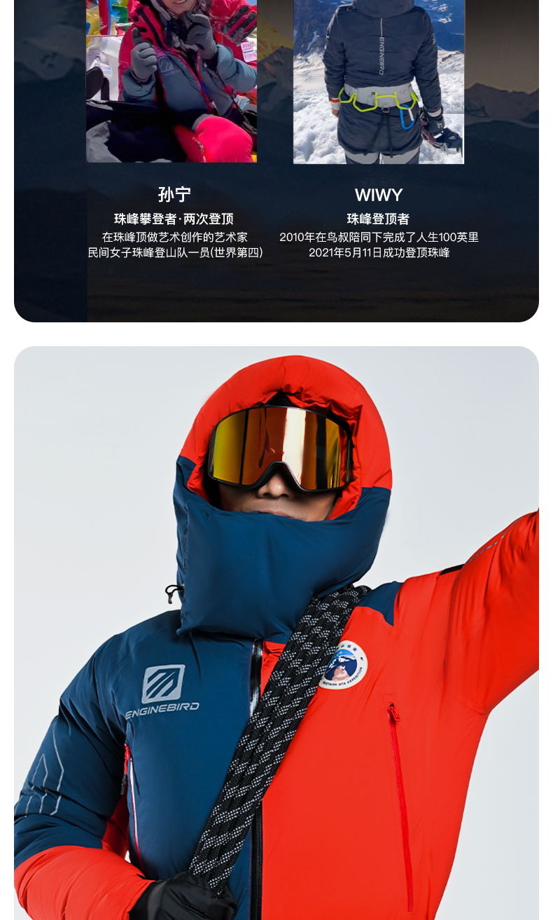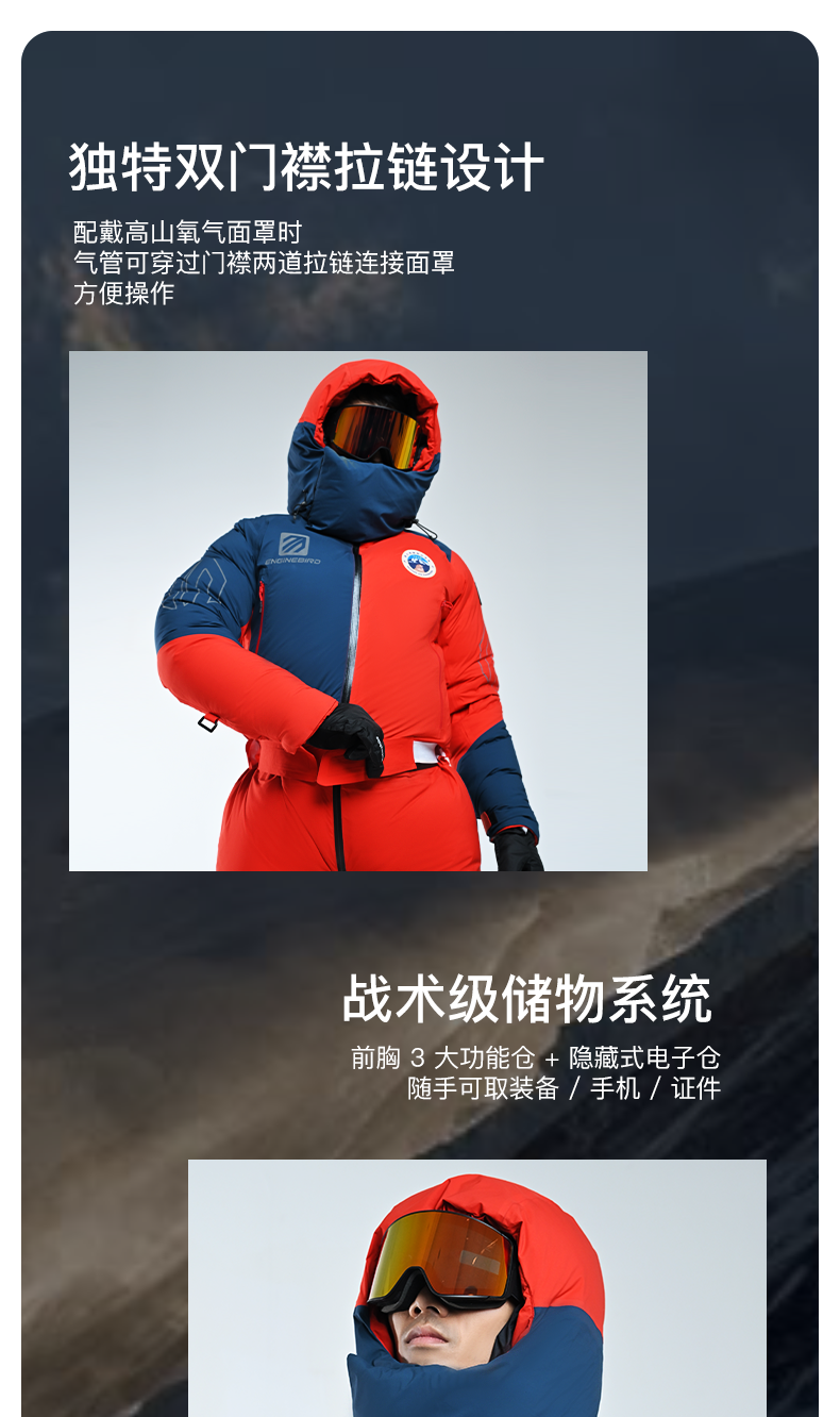 引擎鸟定制款连体羽绒登山服防风保暖户外运动外套男女同款