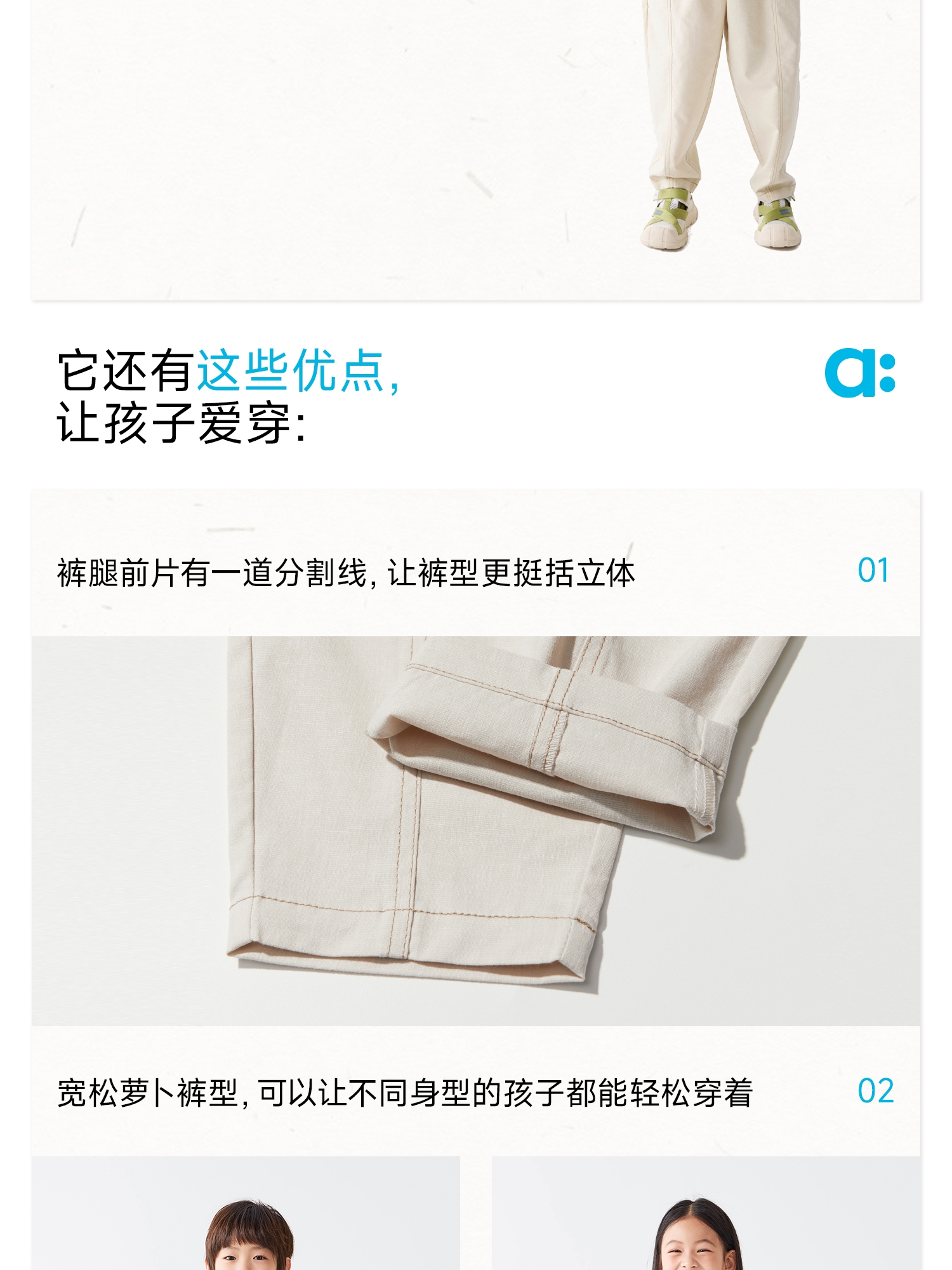 【春Vol.4】allblu幼岚【汉麻萝卜裤】儿童长裤25春夏新款男童女童宽松弹力ZY