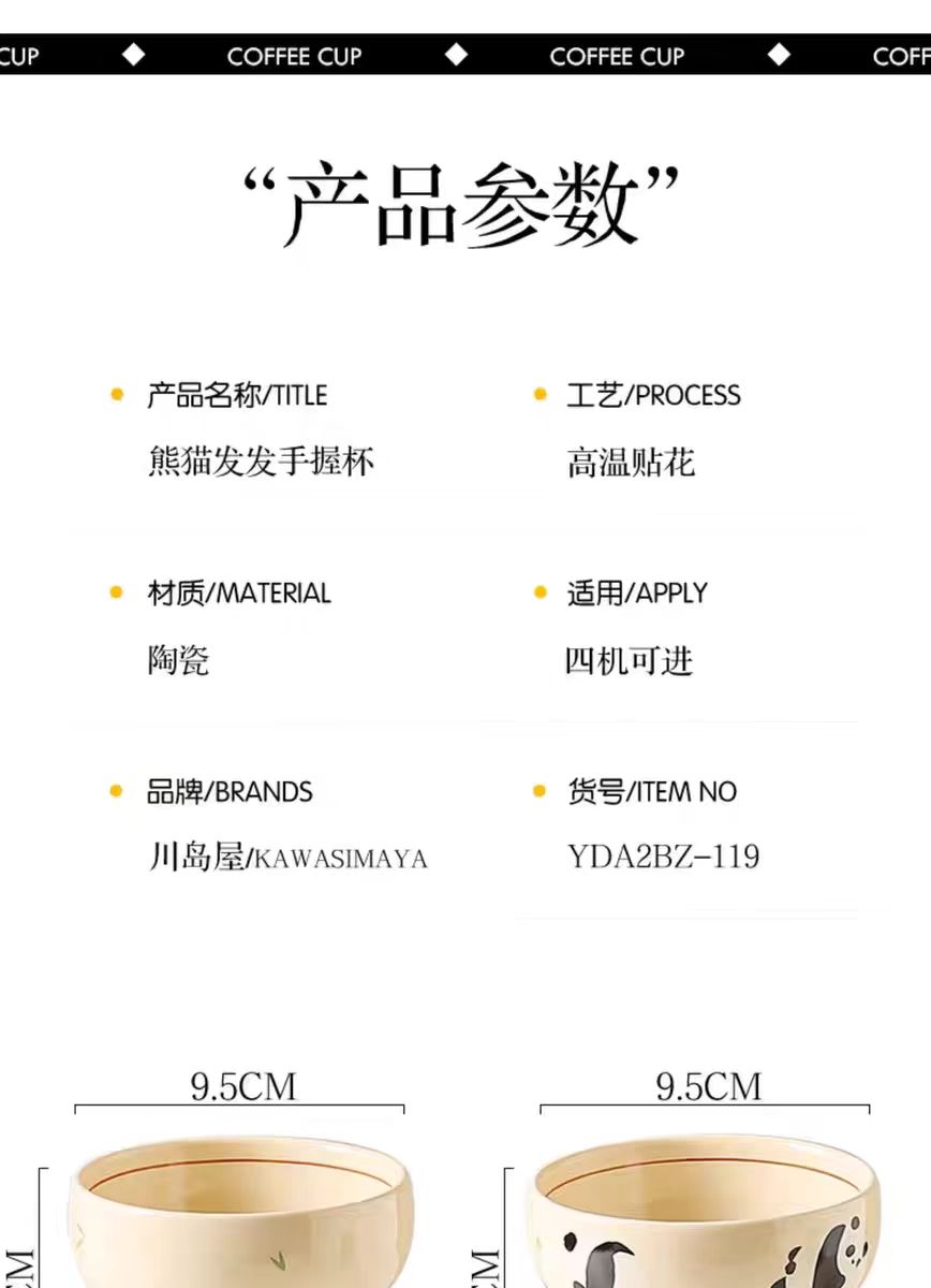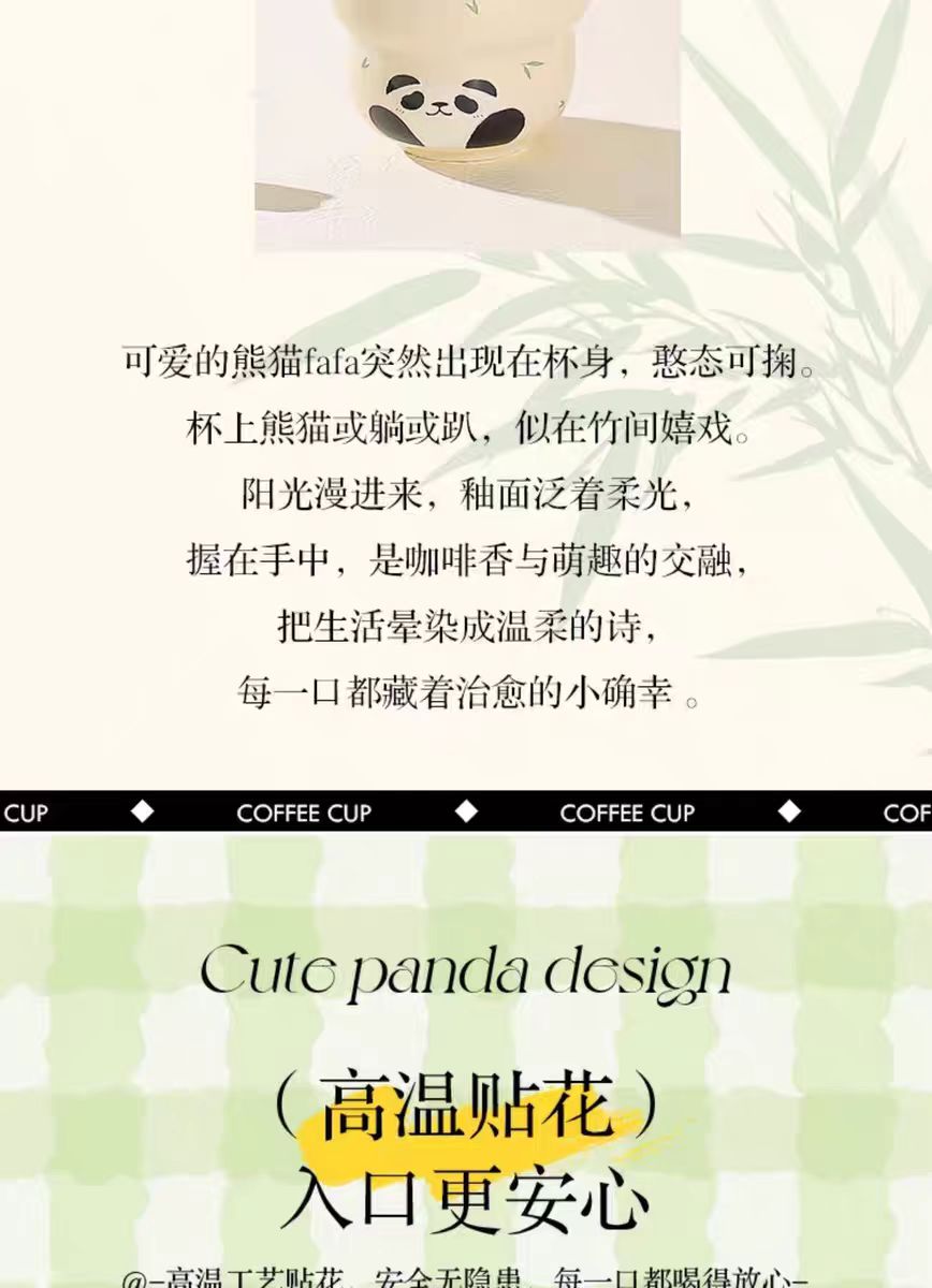 4楼Eubelle欧蓓 川岛屋熊猫手握咖啡杯300ml 女士高颜值马克杯 活动价:16.8元
