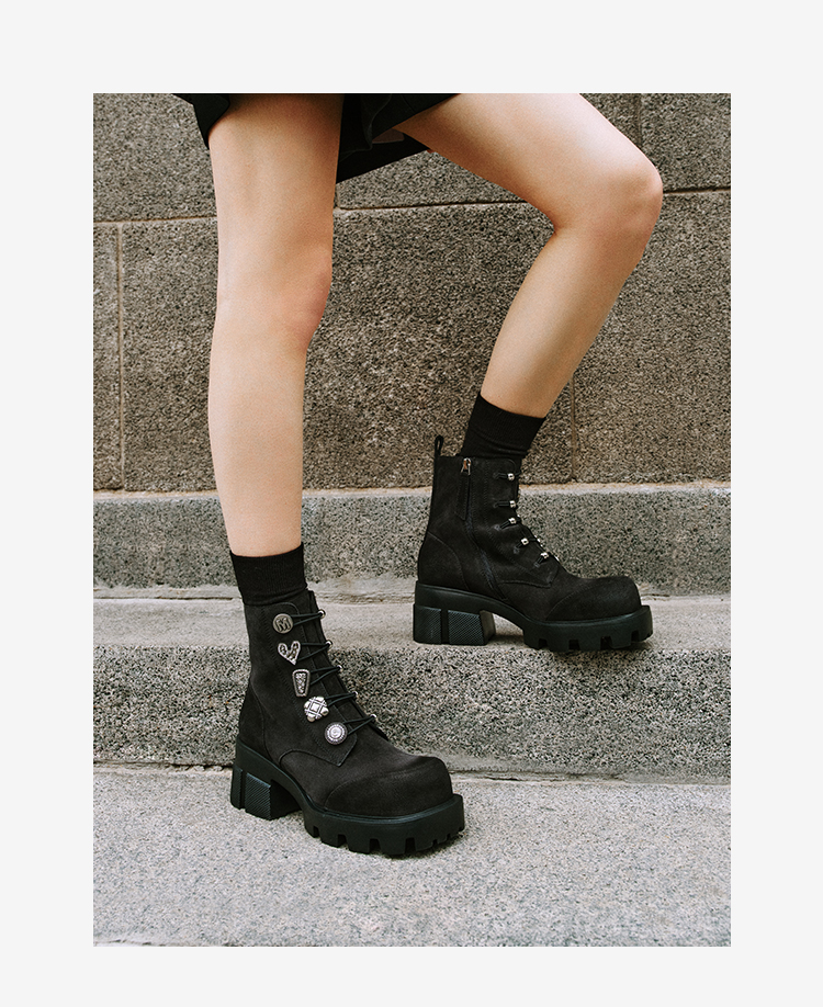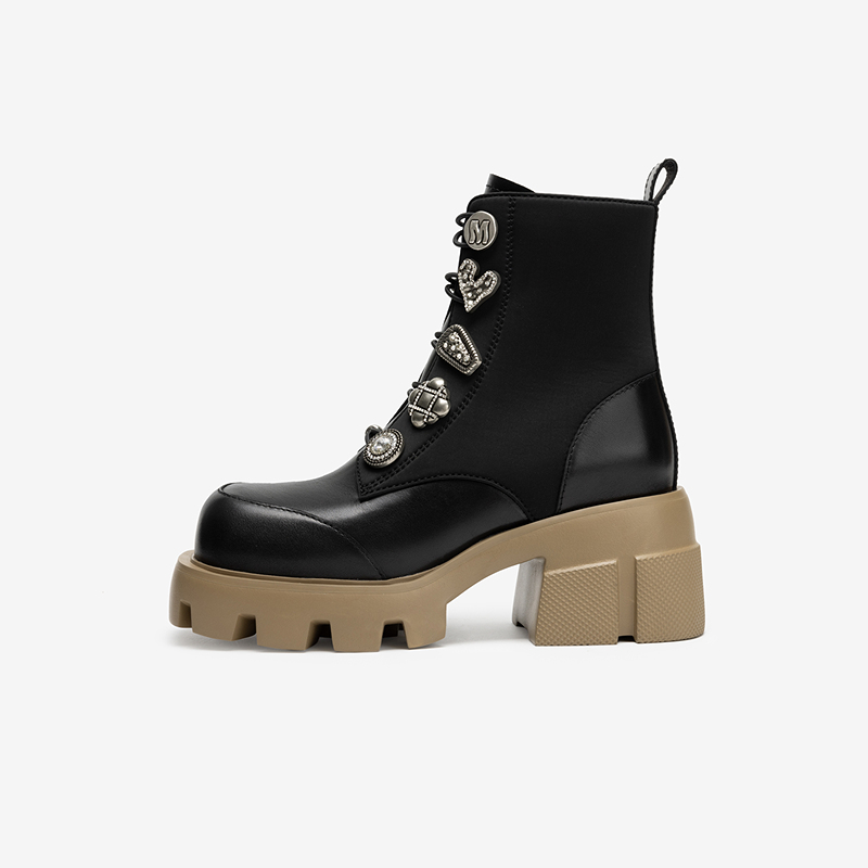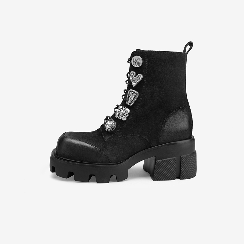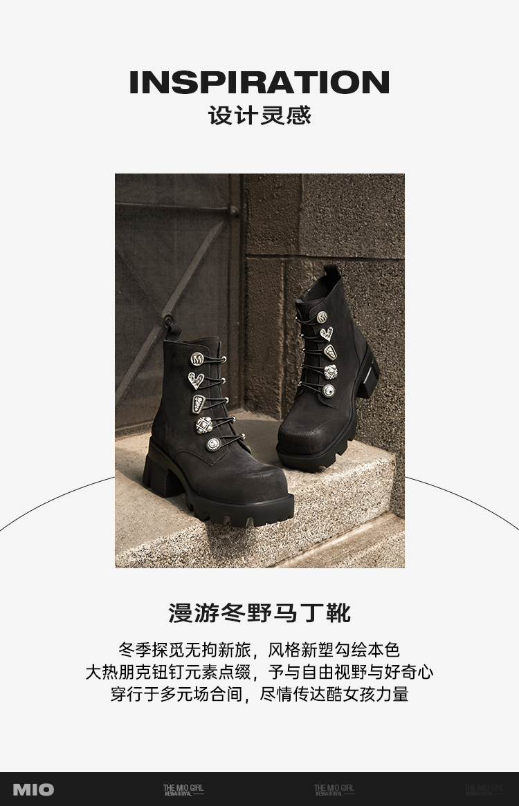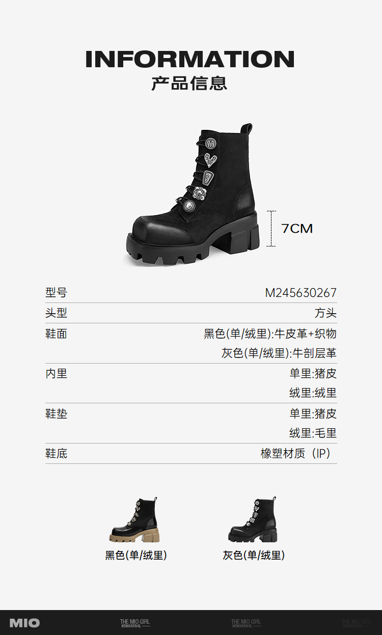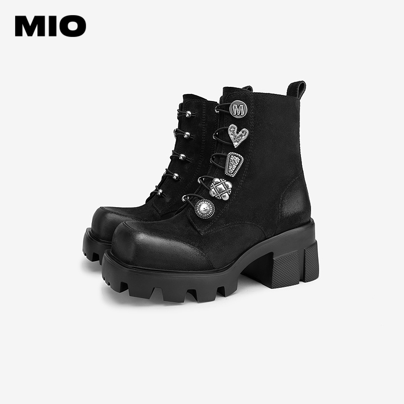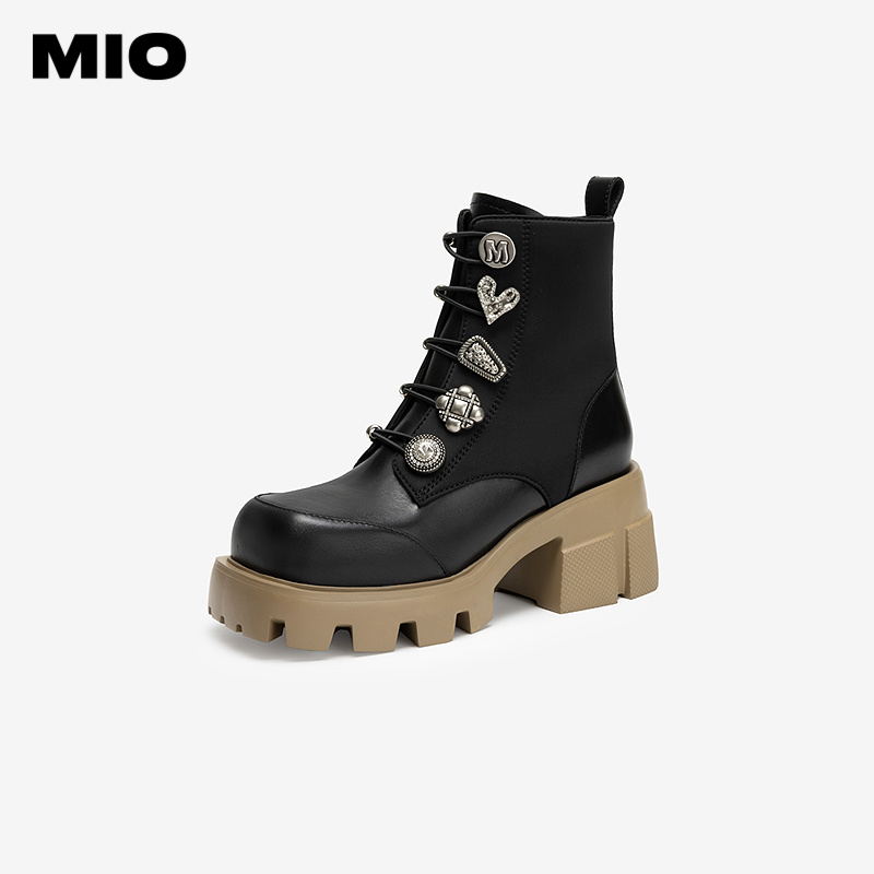 【云粉节】BF楼MIO米奥小众设计马丁靴圆头厚底加绒机车靴酷感增高靴子系带靴M245630267吊牌价1898活动价1423