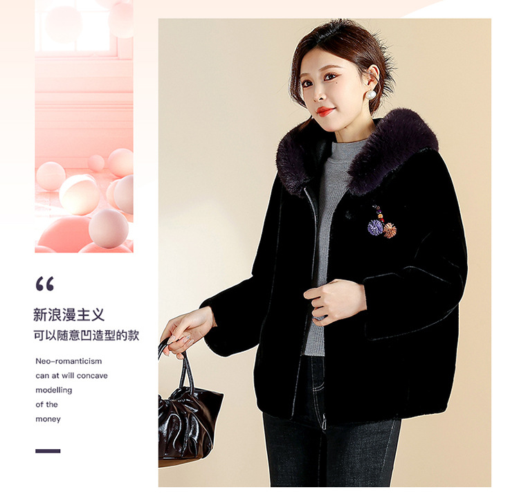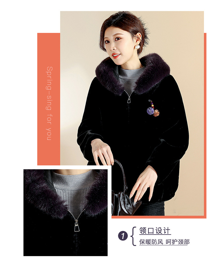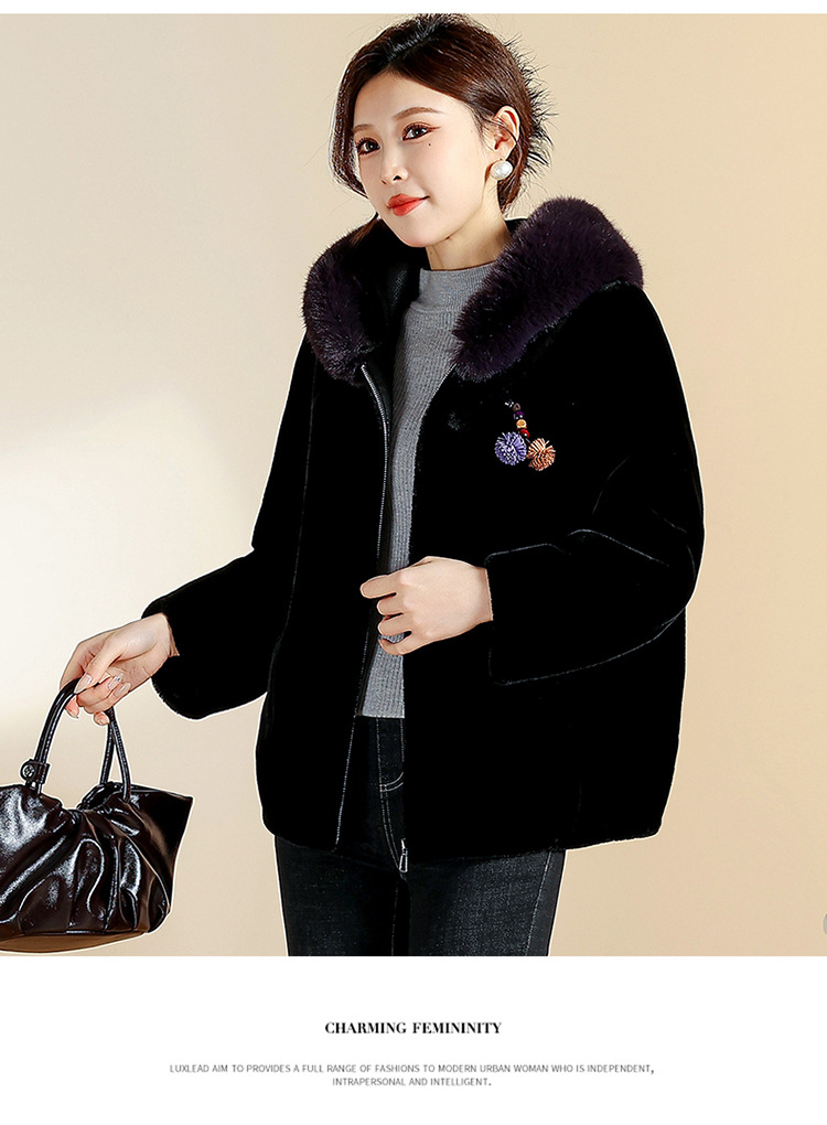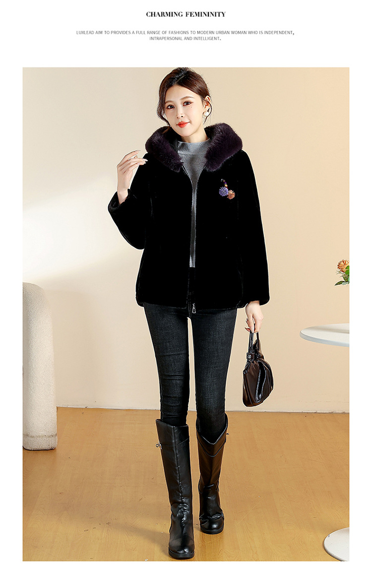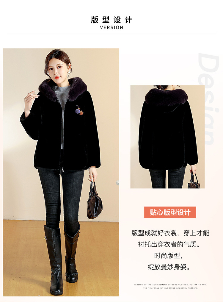 QYM CS25D129宽松连帽气质洋气皮毛一体拉链皮草外套 商品图4