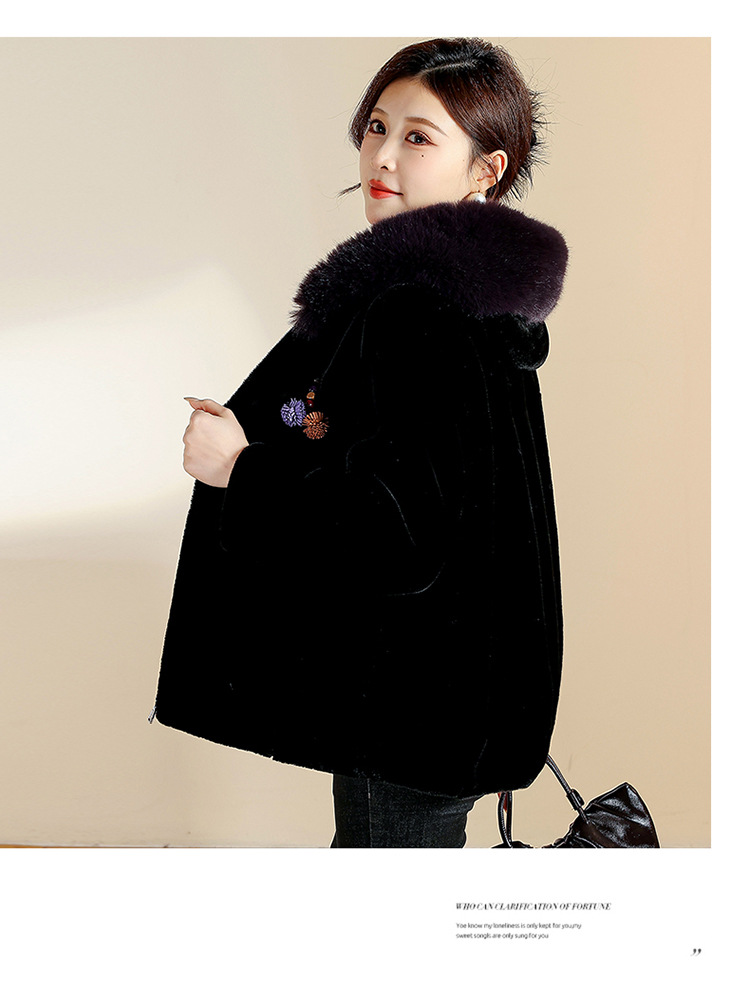 QYM CS25D129宽松连帽气质洋气皮毛一体拉链皮草外套 商品图1