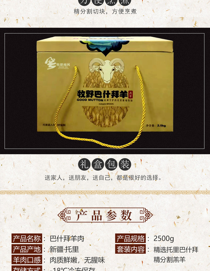 【有机】原价398牧野巴什拜羔羊肉 5斤/盒