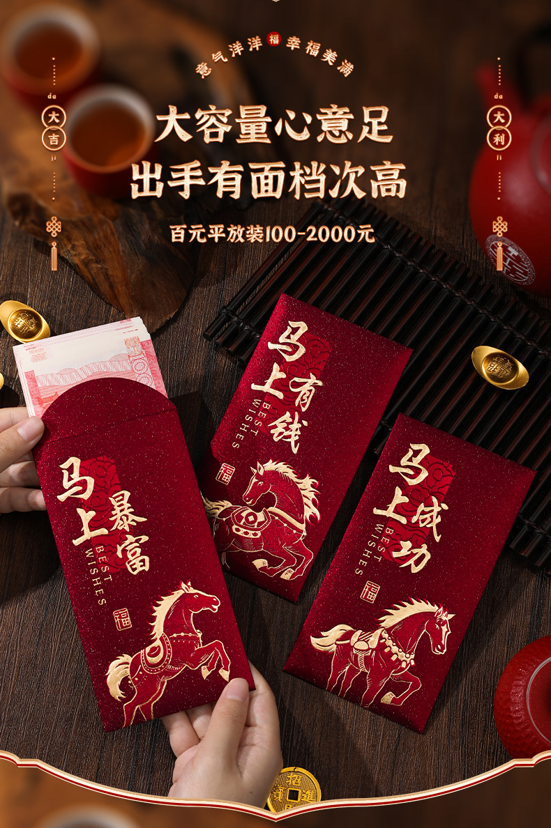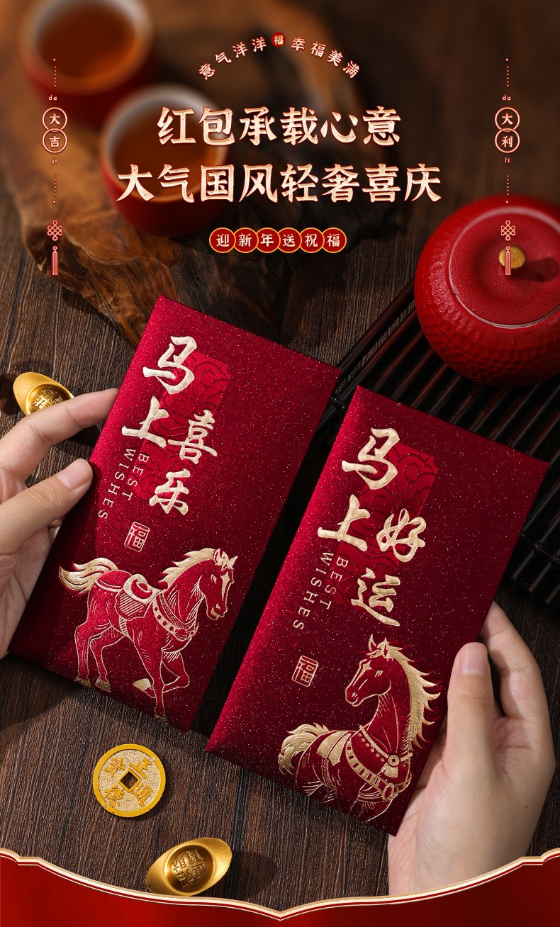 【精致质感颜值高❗️大气国风轻奢喜庆】2026年新款红包袋创意新年马年生肖通用高级酒红色新年压岁利是礼盒封春节。jb