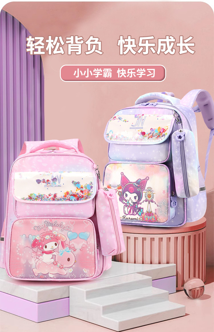 【赠送笔袋!轻松背负,快乐成长】小小学霸 快乐学习 小学生书包女孩 一二三到六年级 动漫卡通 女童减负护脊 儿童双肩背包-QQ