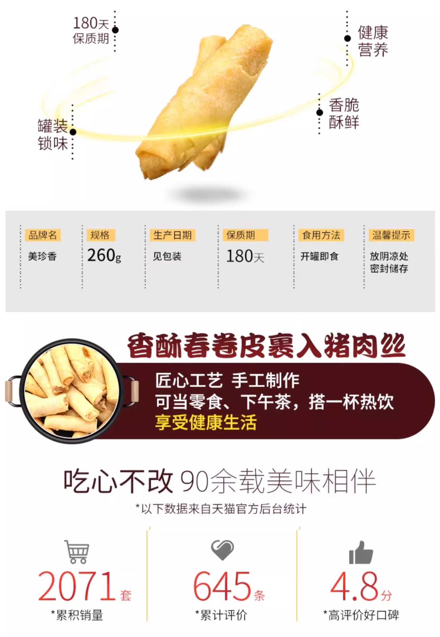 美珍香迷你肉丝卷(油炸糕点)260g春卷皮肉丝夹心香脆零食罐装