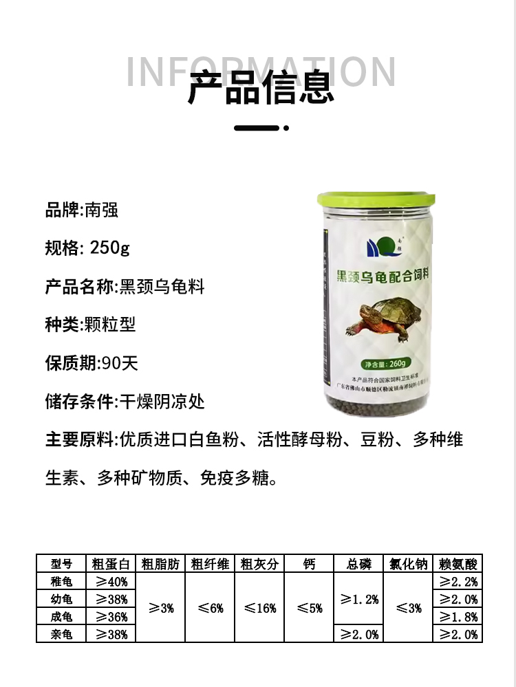 南强增色黑颈料通用白化蛋龟巴西草龟260g包邮
