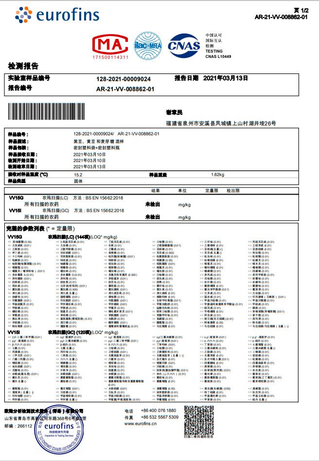 豆子的269项农残都是零检测出