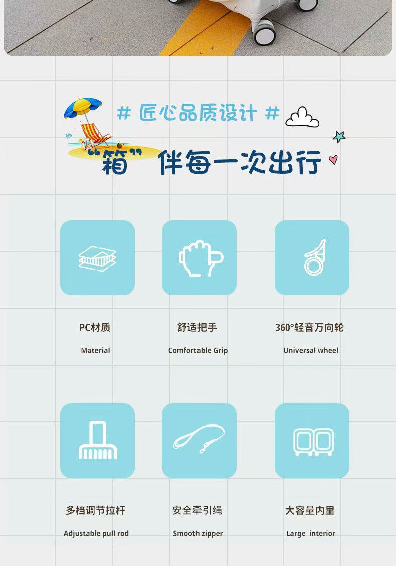 【可玩可坐骑旅行箱,便捷出行好帮手!】儿童行李箱可坐骑 女孩18寸迷你拉杆箱 小型20寸登机箱 男密码旅行箱子-QA
