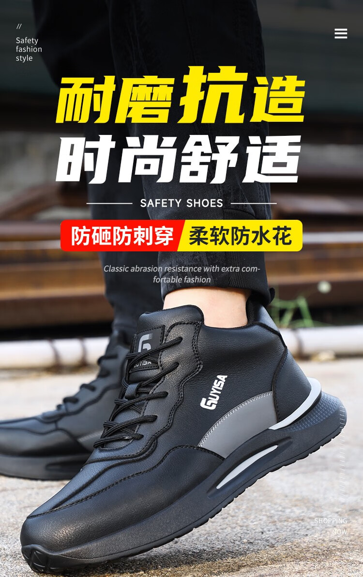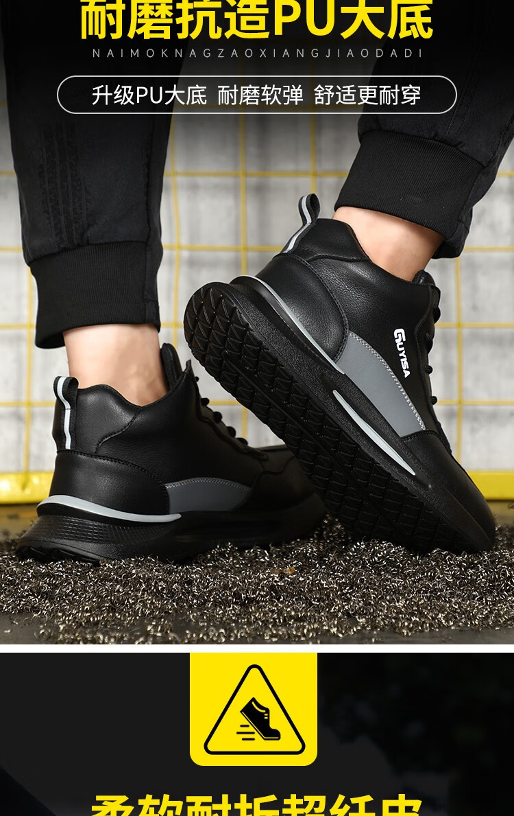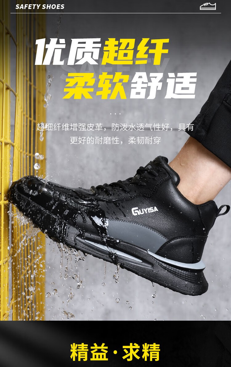 新款高帮四季款防砸防刺黑色防水劳保鞋男低帮超轻EVA鞋底护踝安全鞋防护鞋