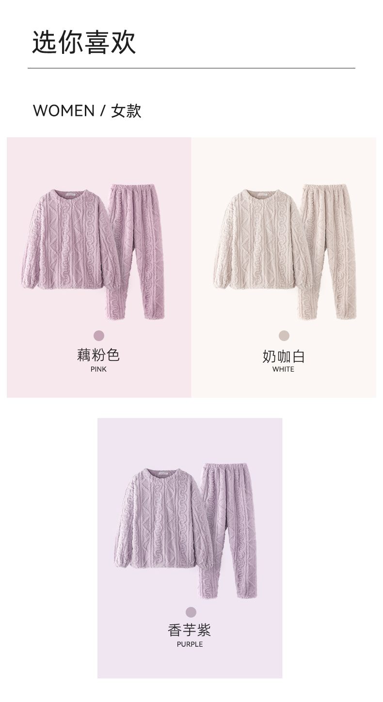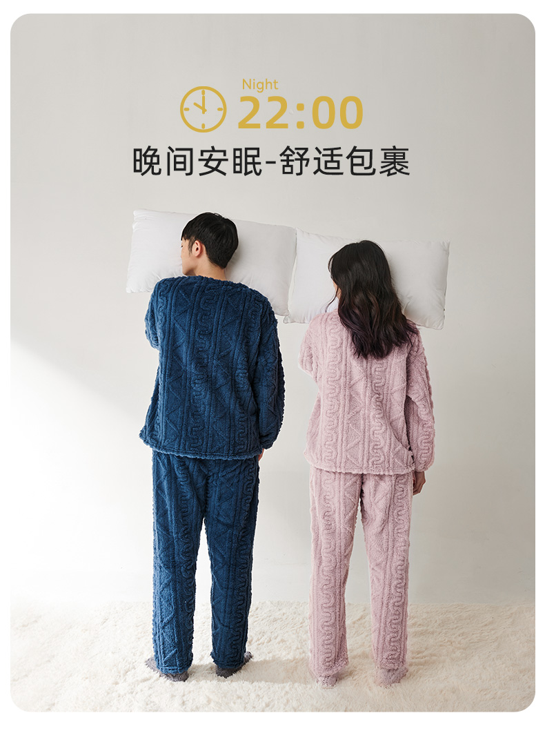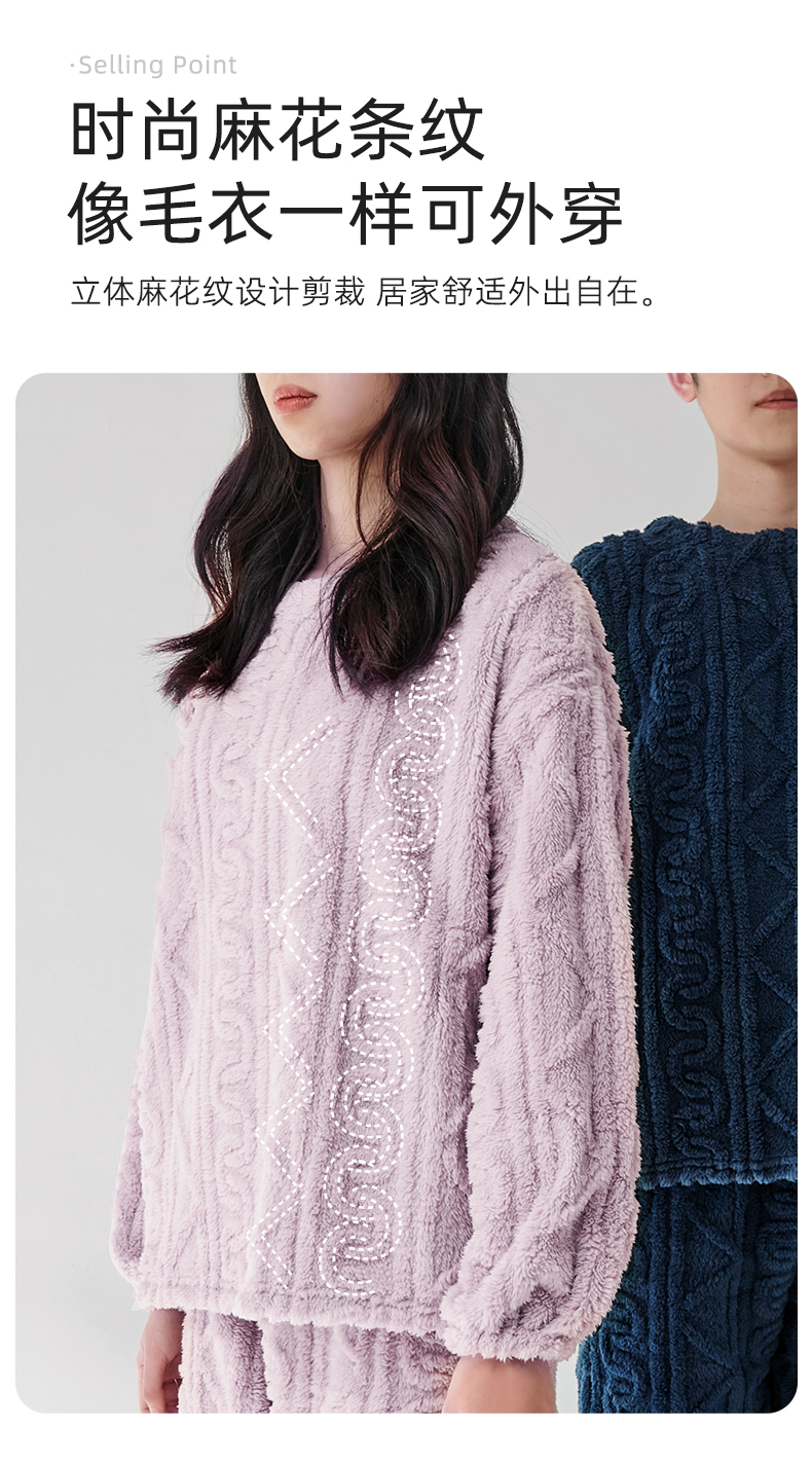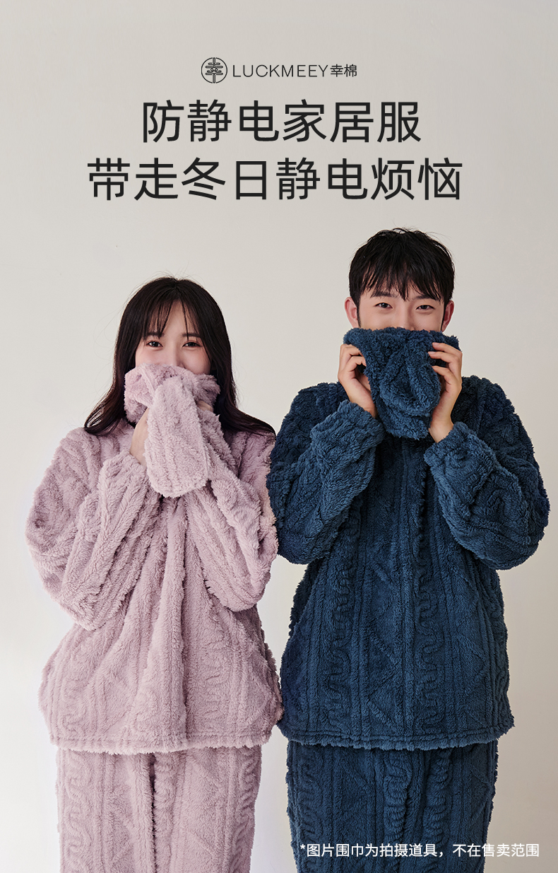 舒适柔软 LUCKMEEY幸棉 Adore毛茸茸防静电麻花长毛绒情侣家居服