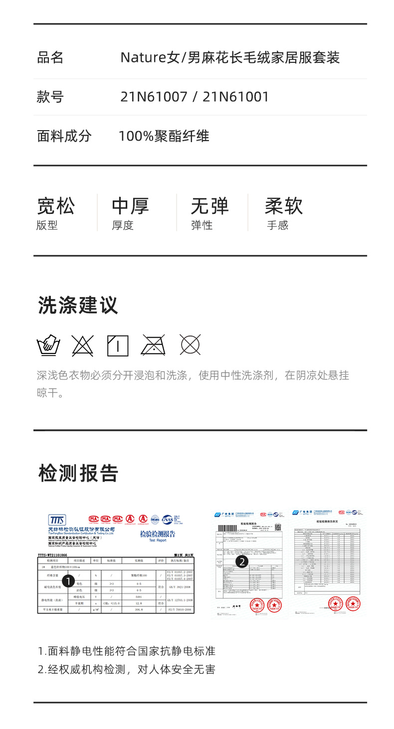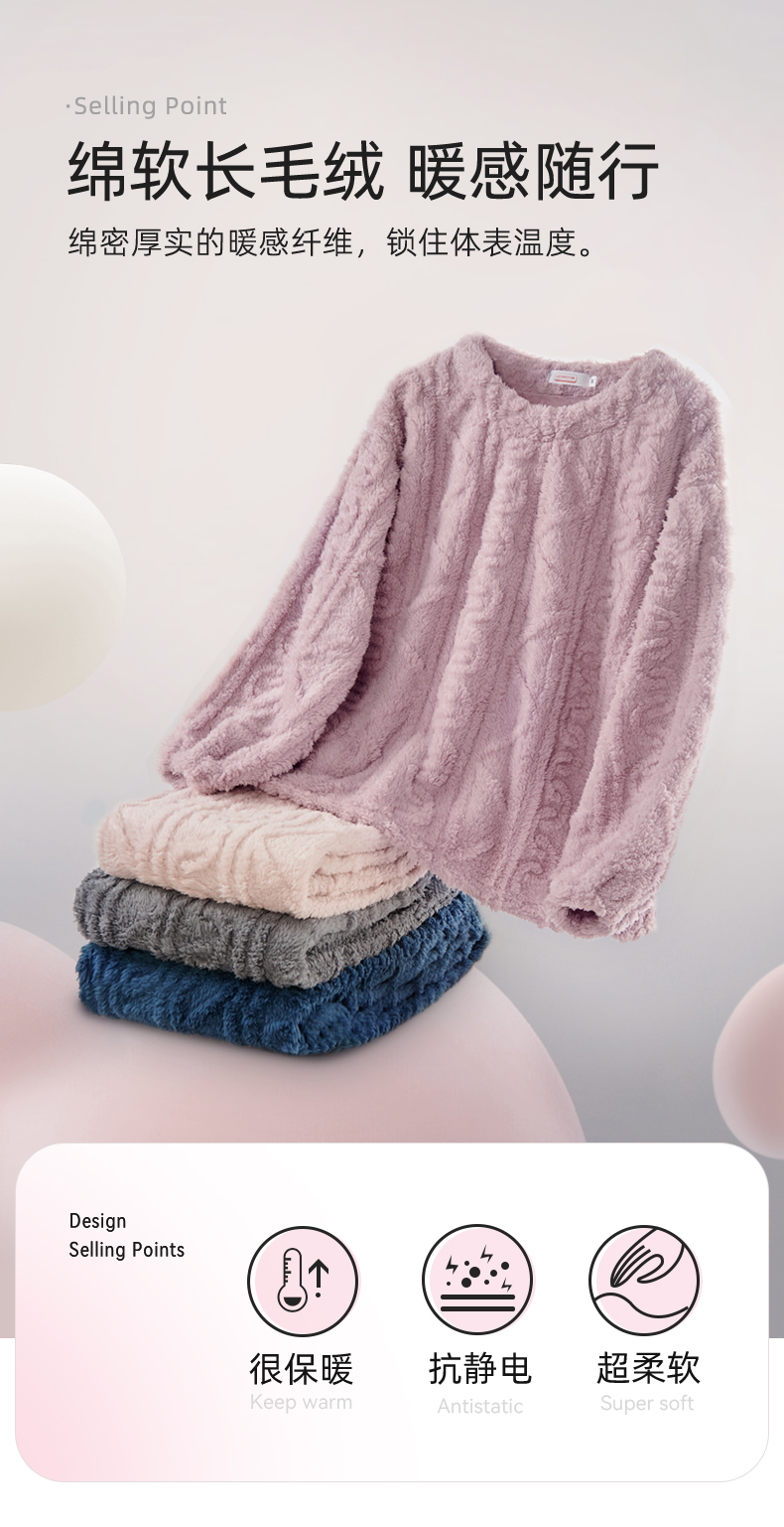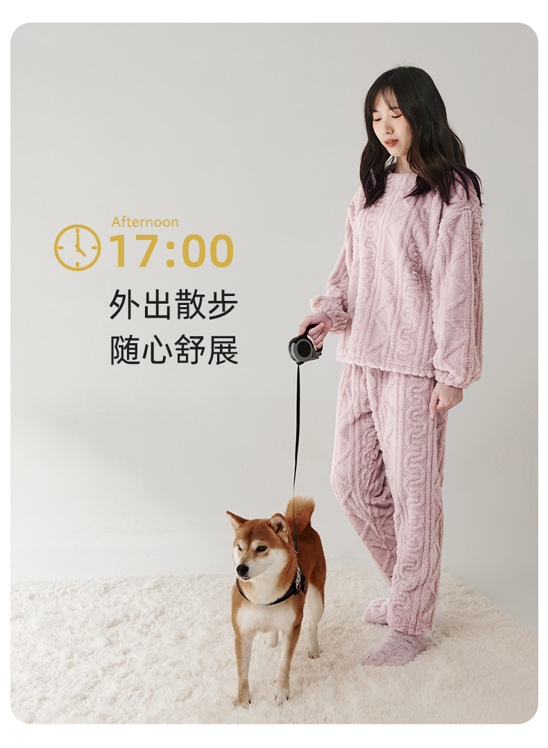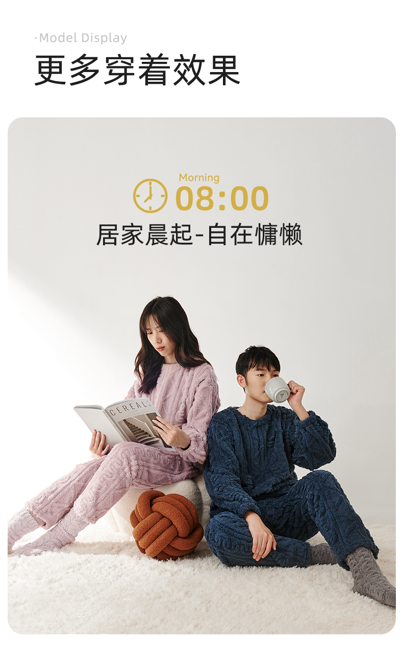 舒适柔软 LUCKMEEY幸棉 Adore毛茸茸防静电麻花长毛绒情侣家居服