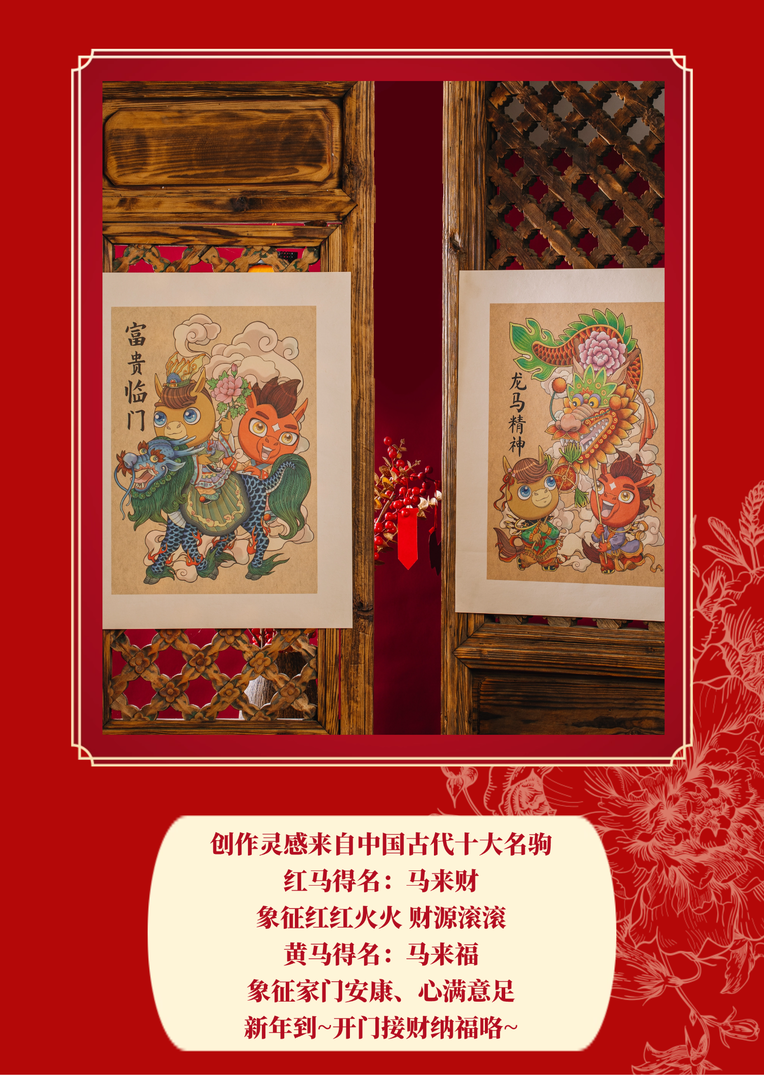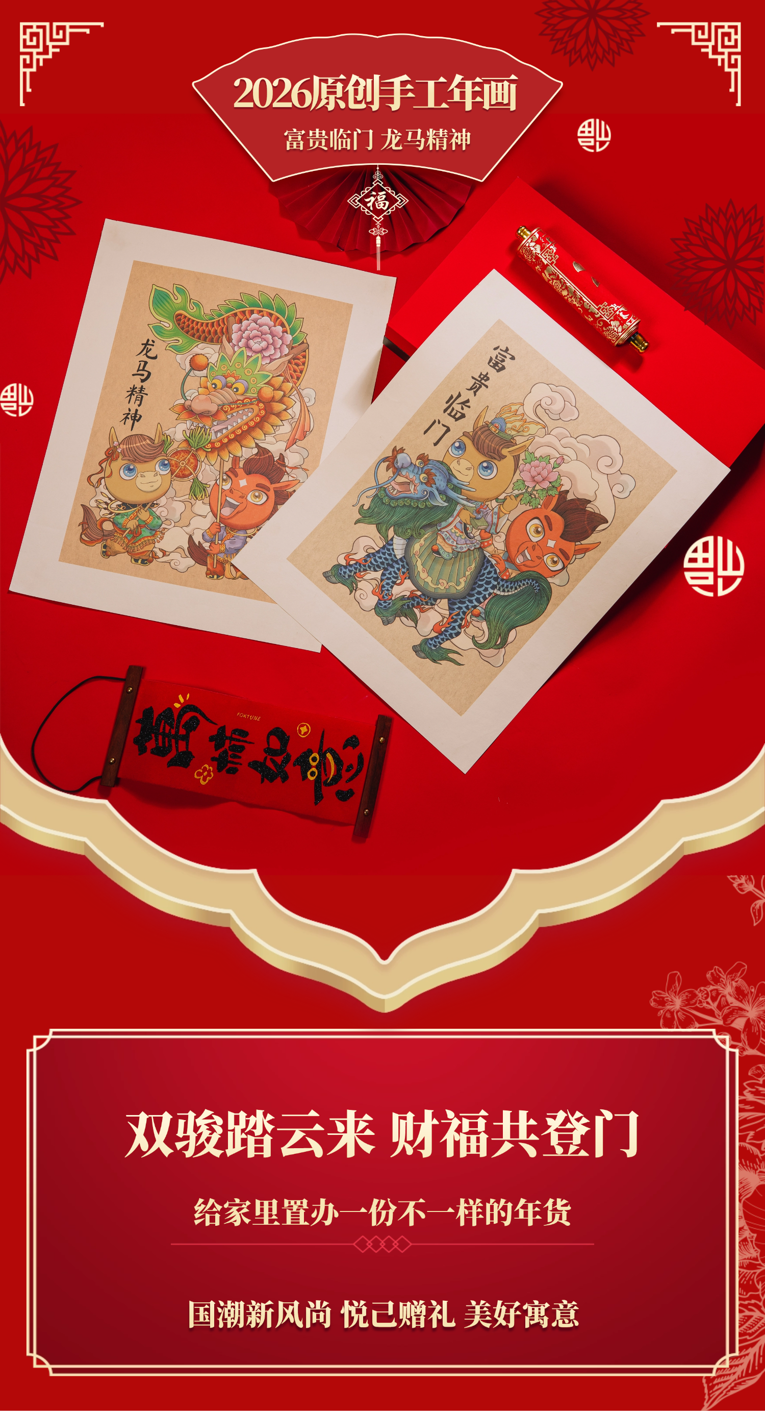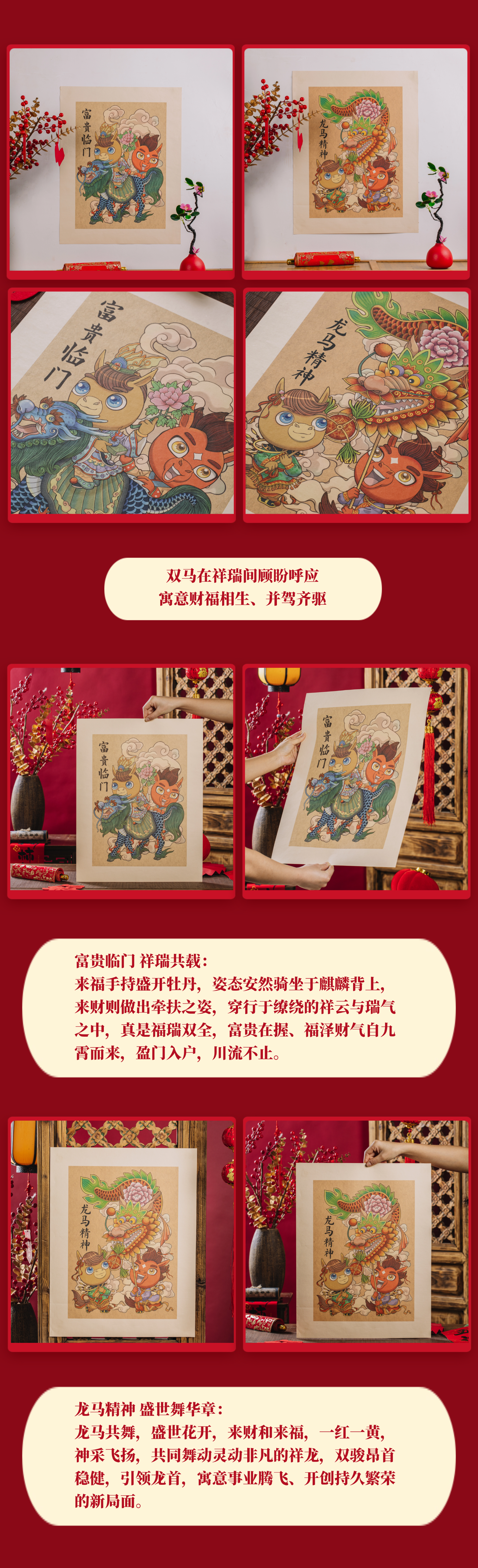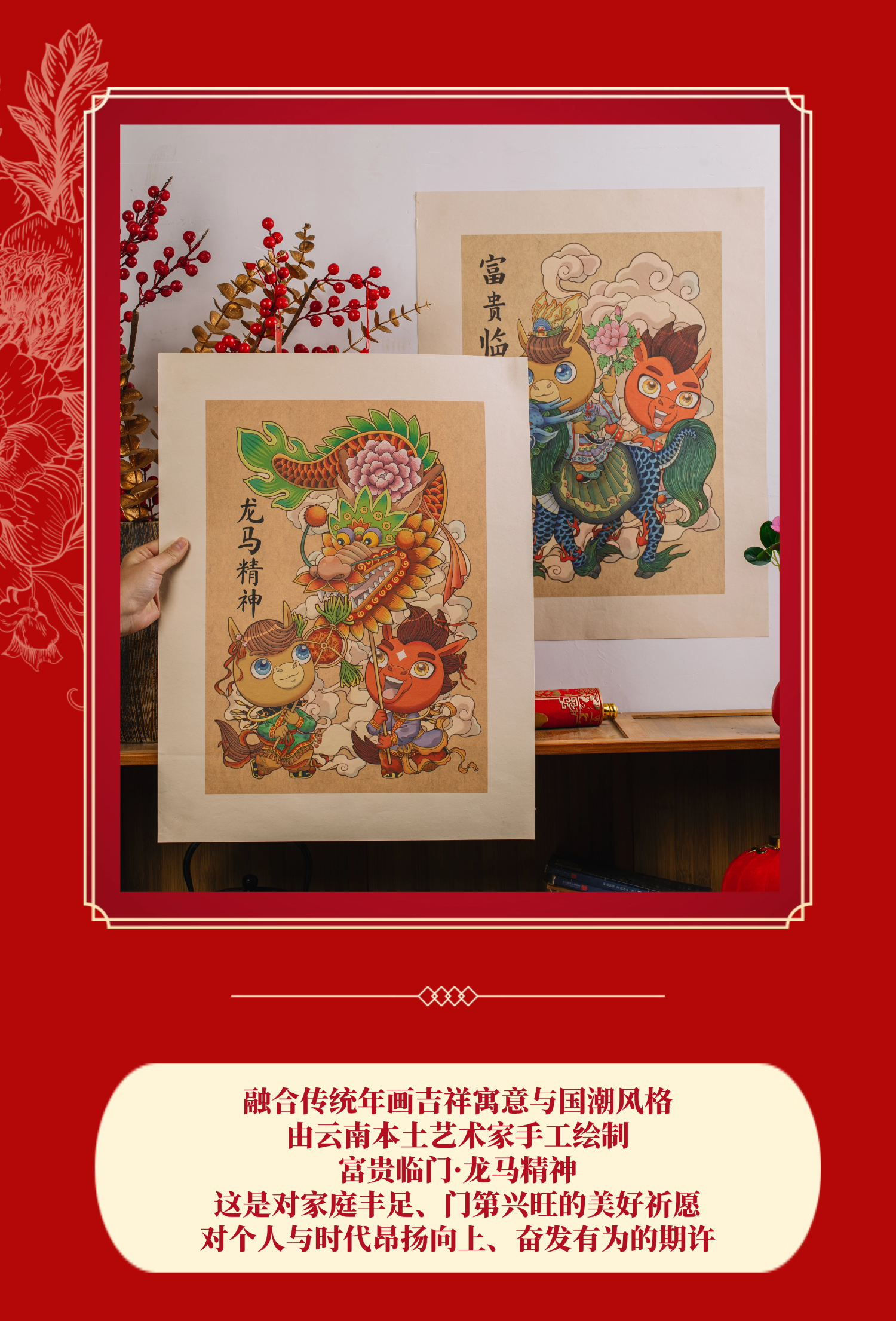 菜头商城 2026原创手工年画 内含两张(富贵临门 龙马精神)