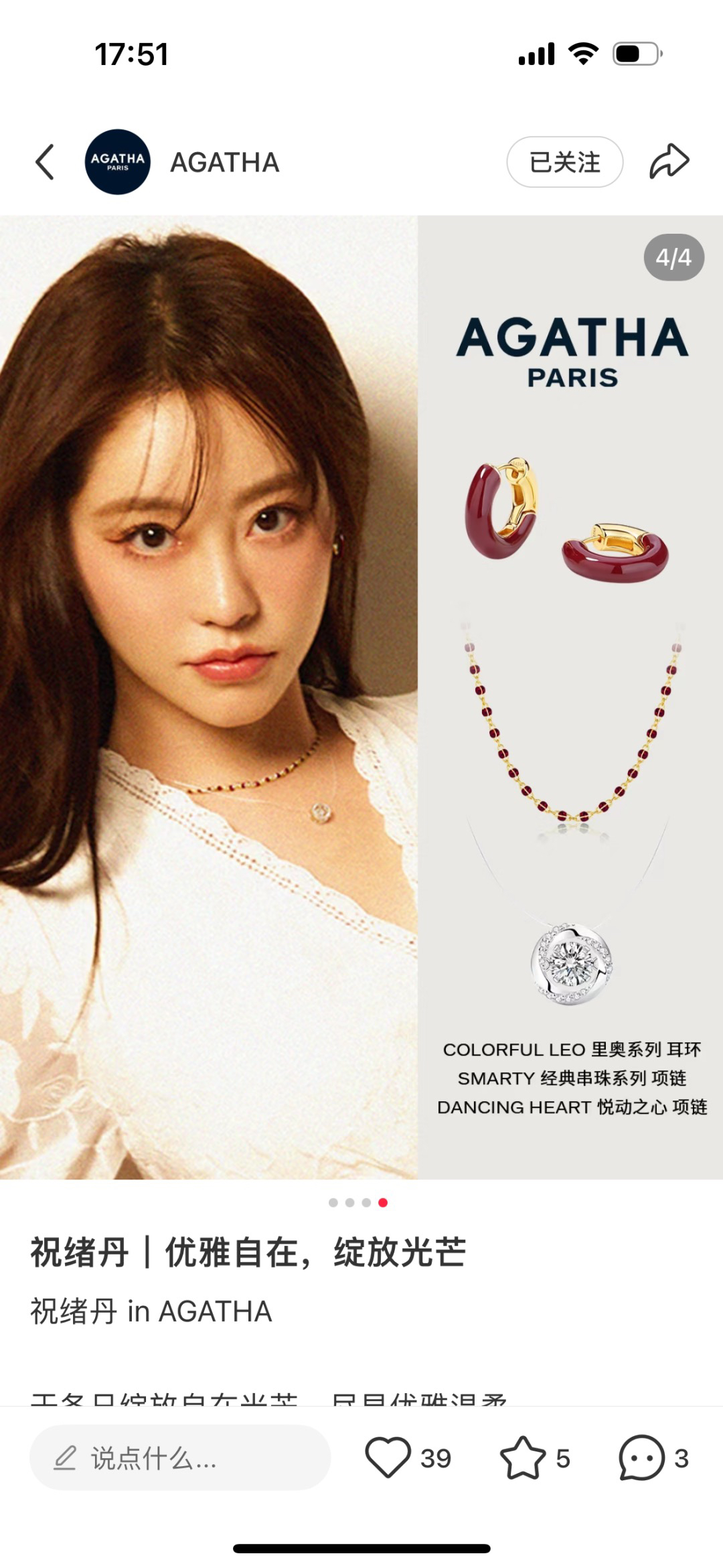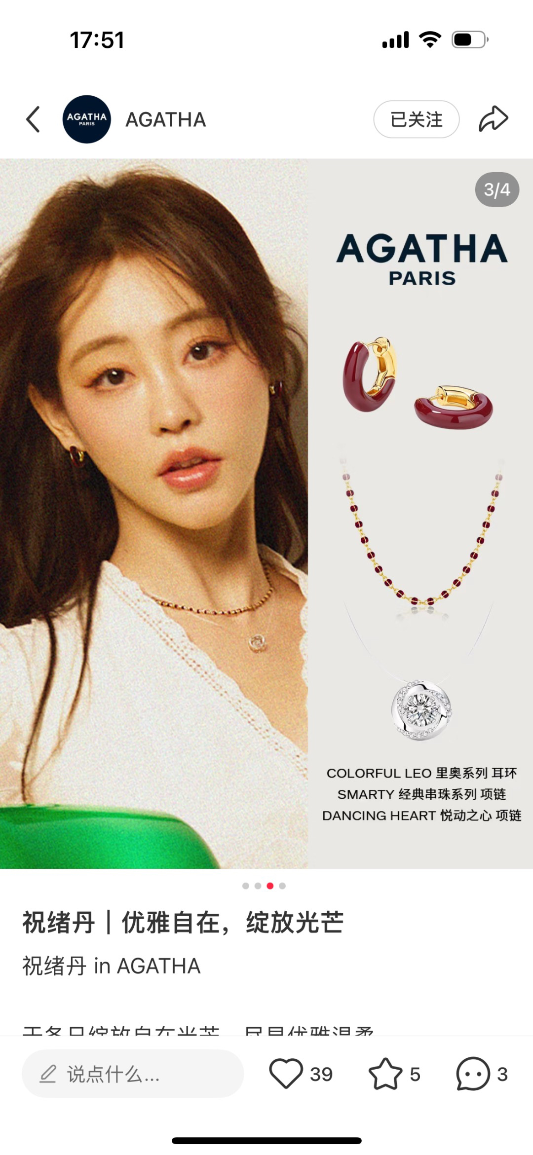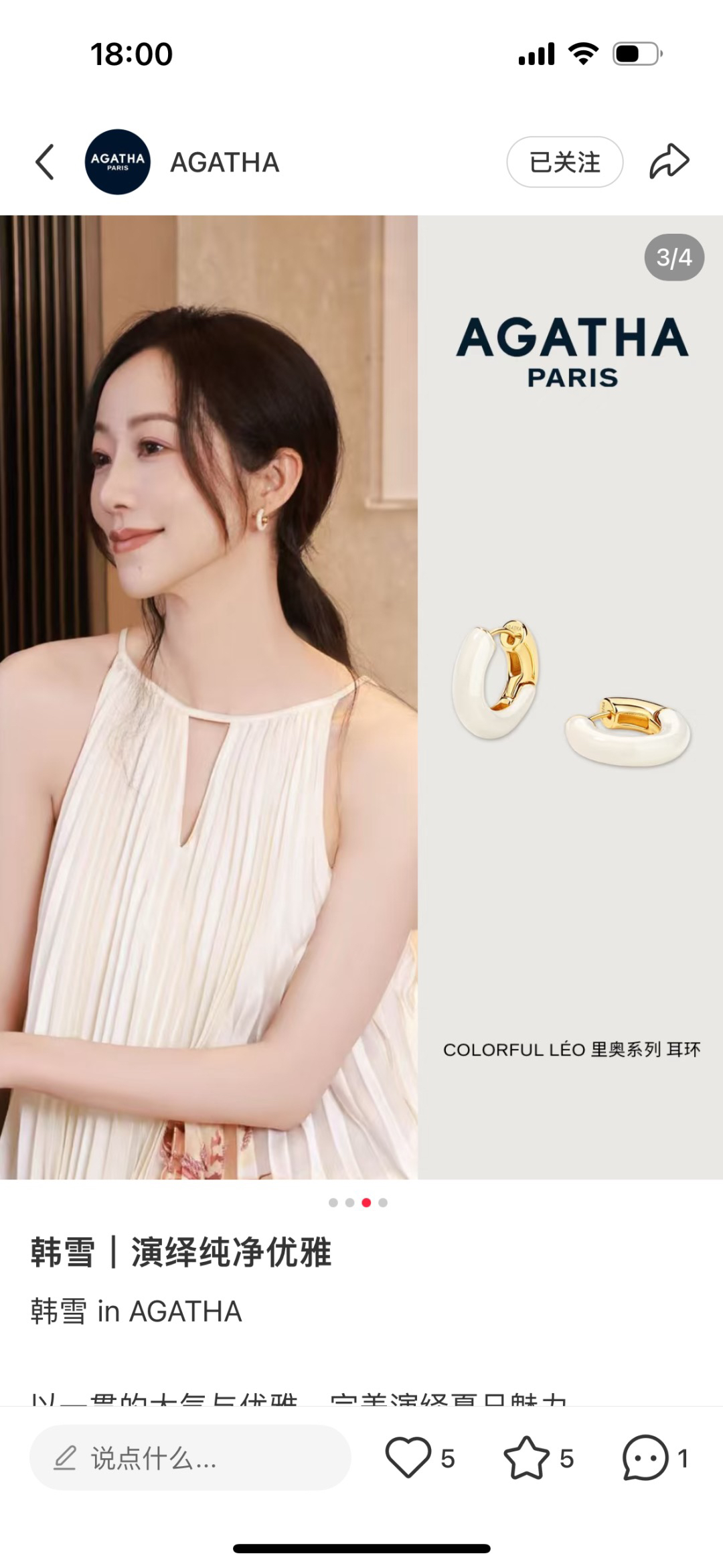 🔺纯原! 众多明星同款AGATH*A/瑷嘉莎里奥系列 珐琅法式耳环