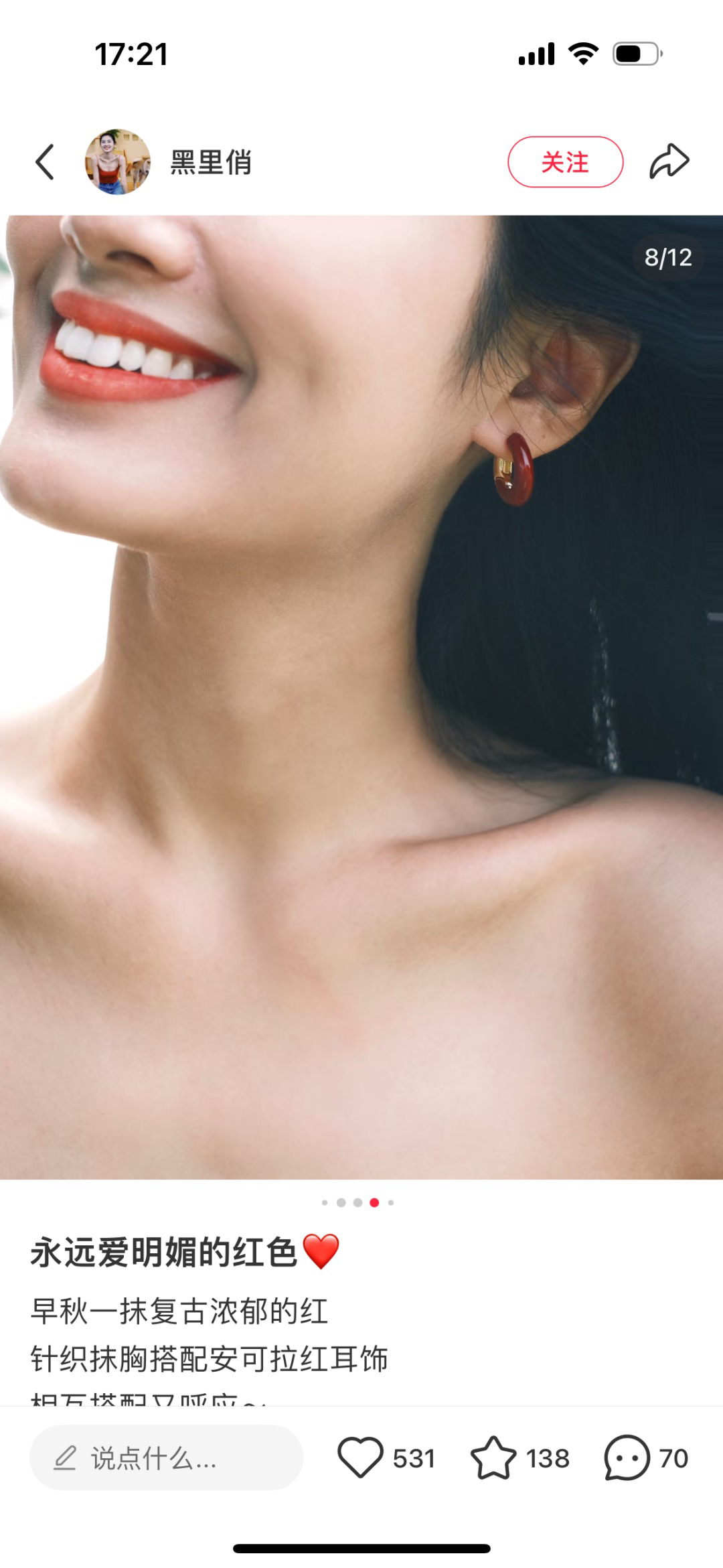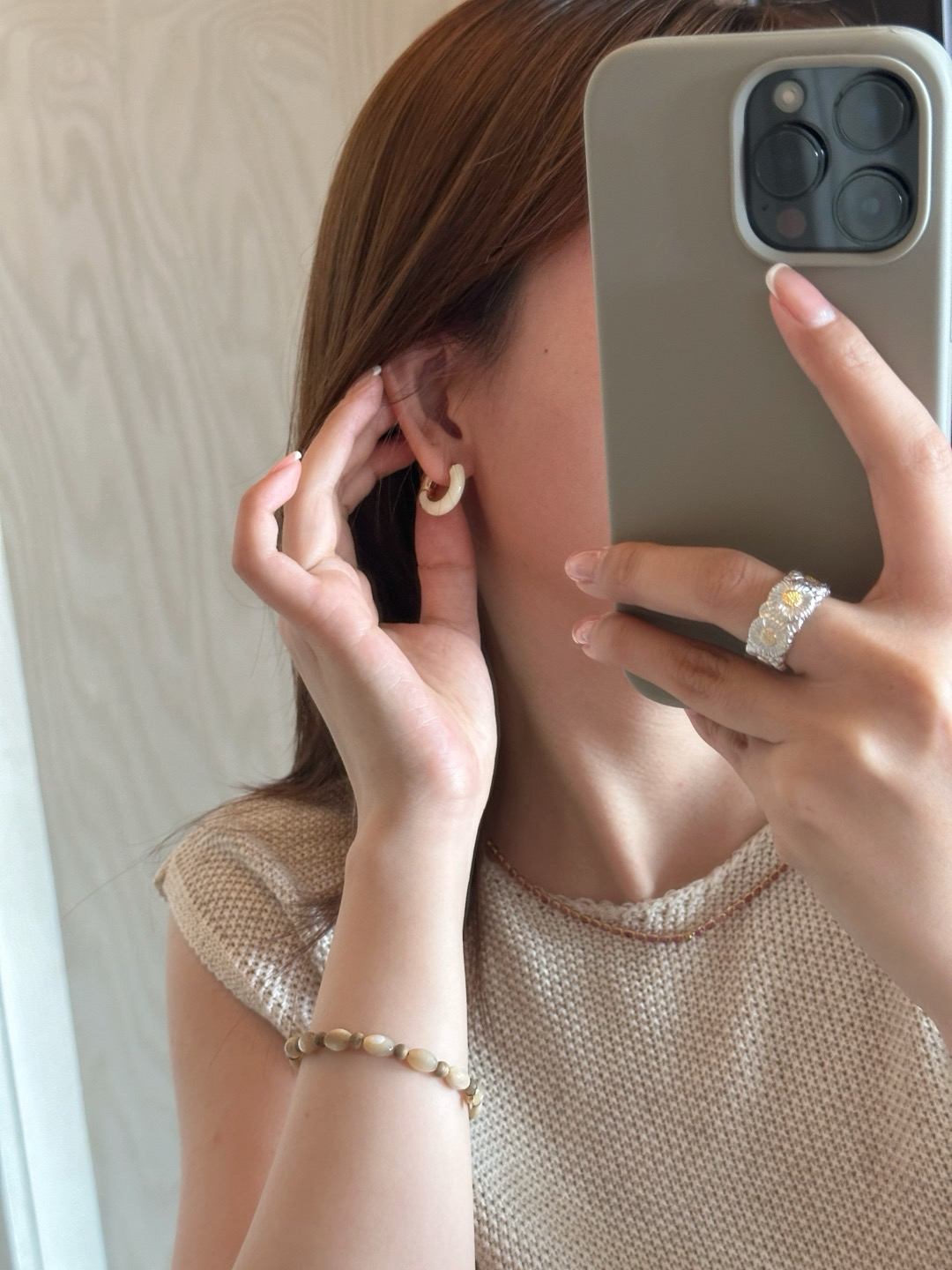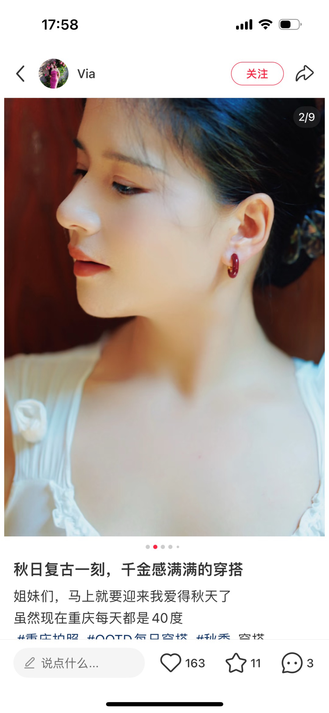 哪怕我们简简单单搭配tee牛仔裤 那个调性就在 也是这只耳环的灵魂之处