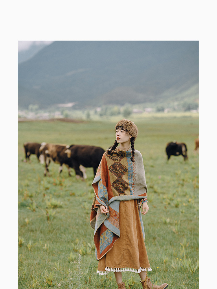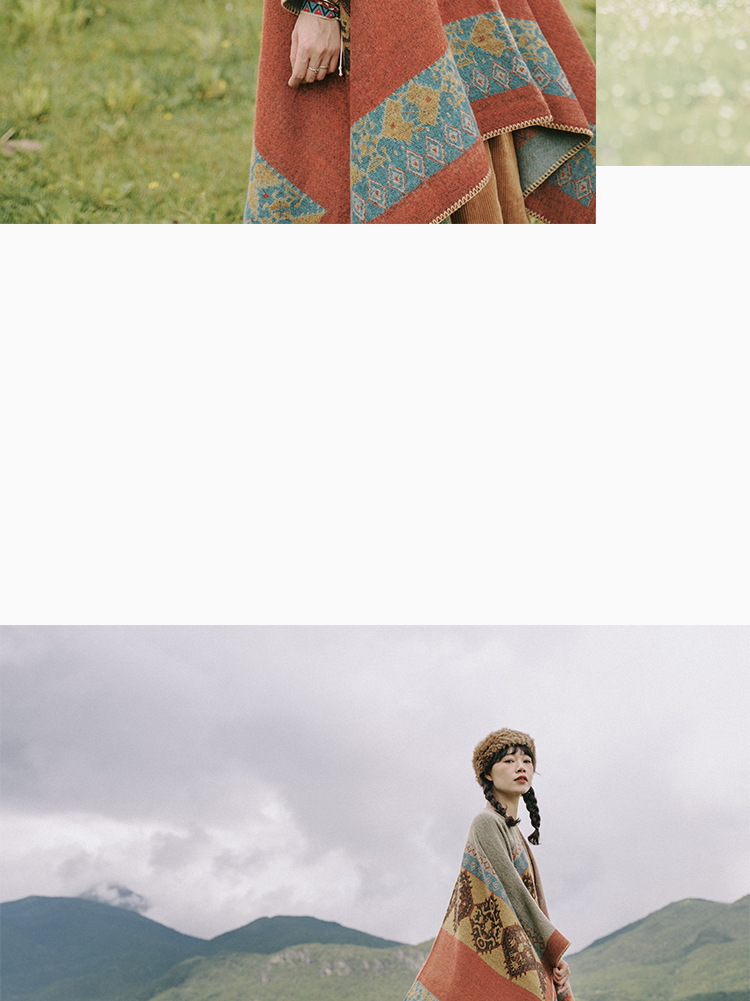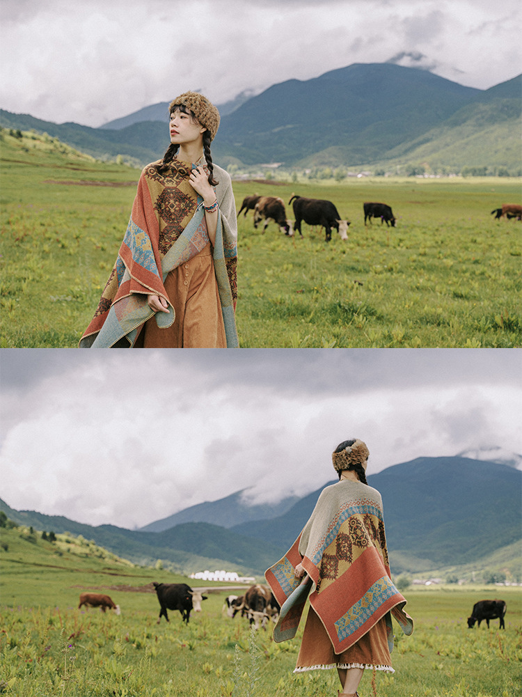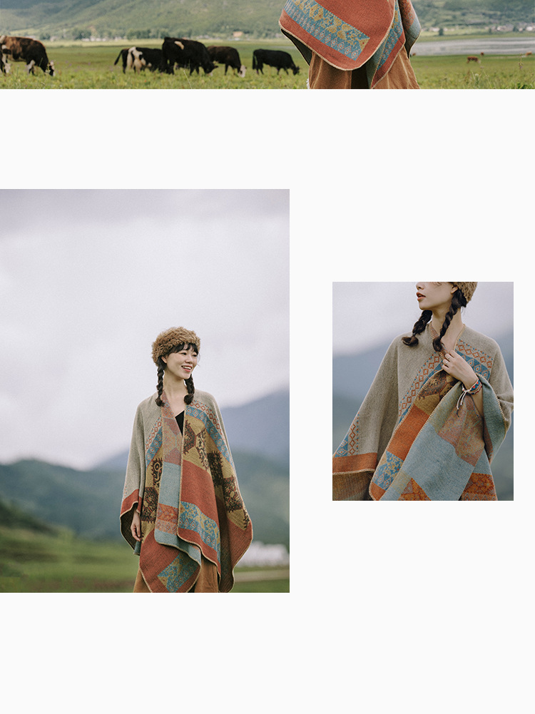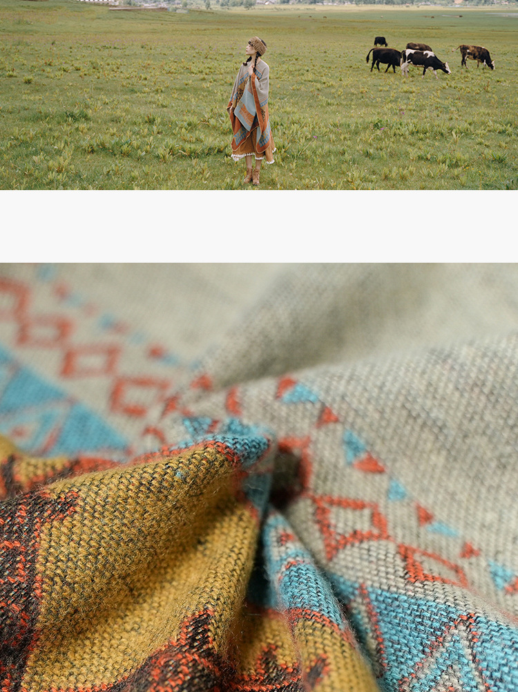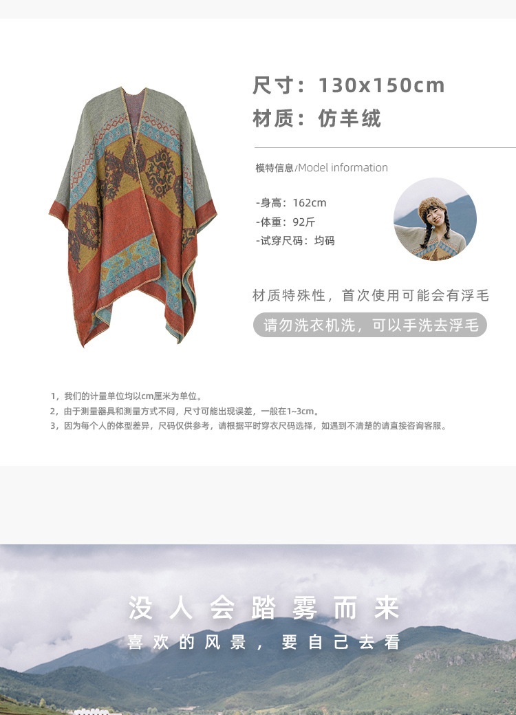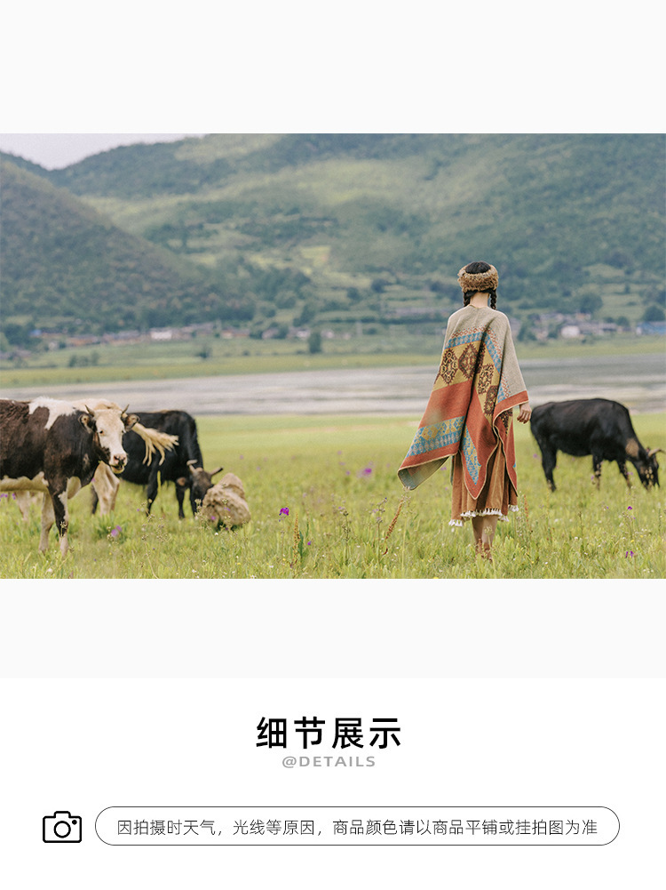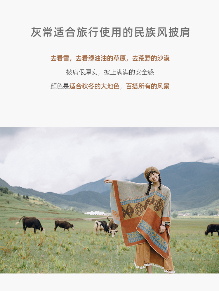 青海西藏茶卡盐湖旅游,大开叉披肩民族风加厚披风HJ-001