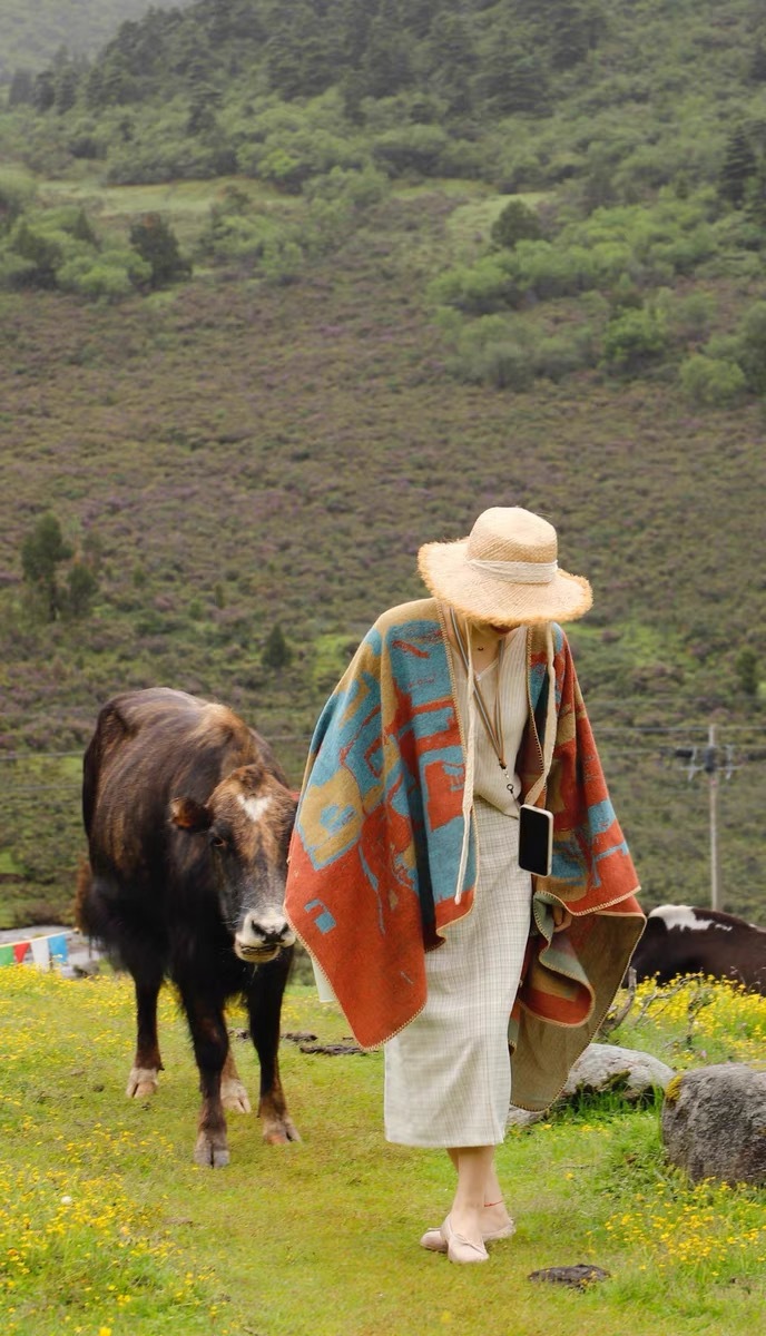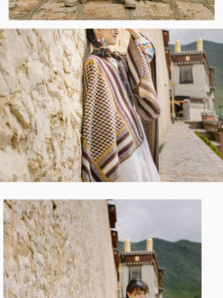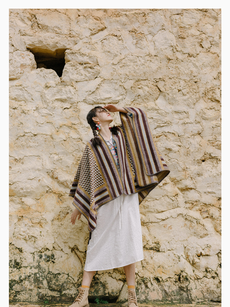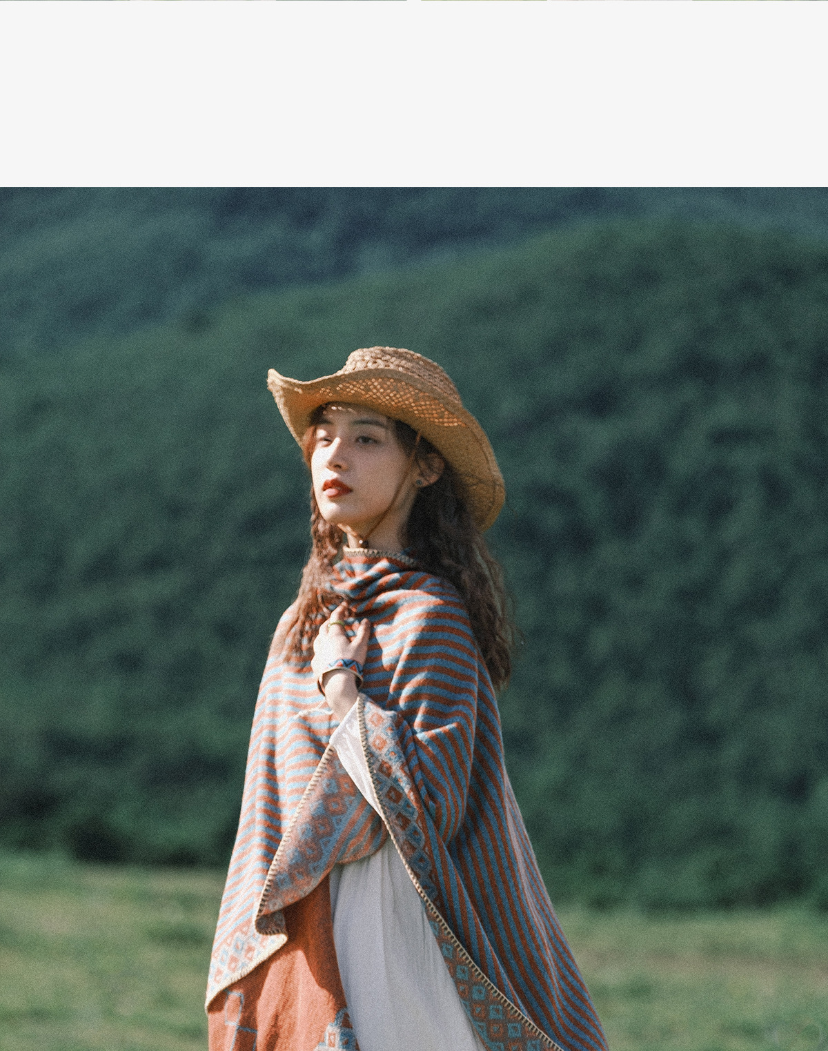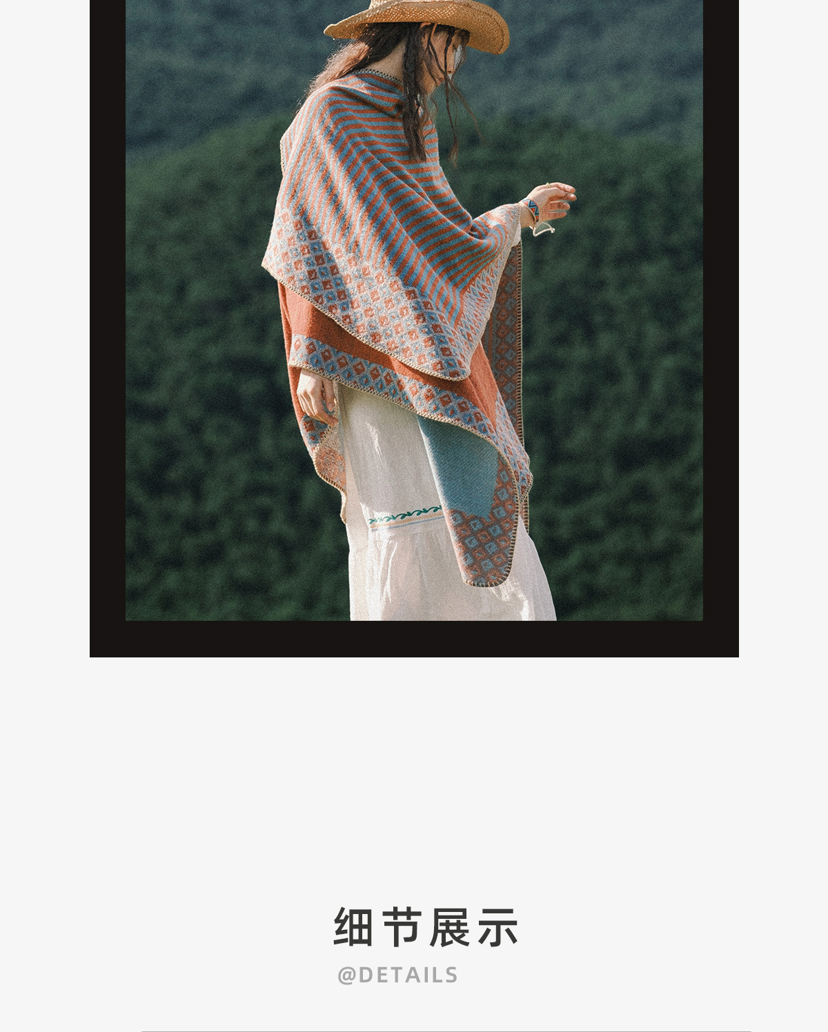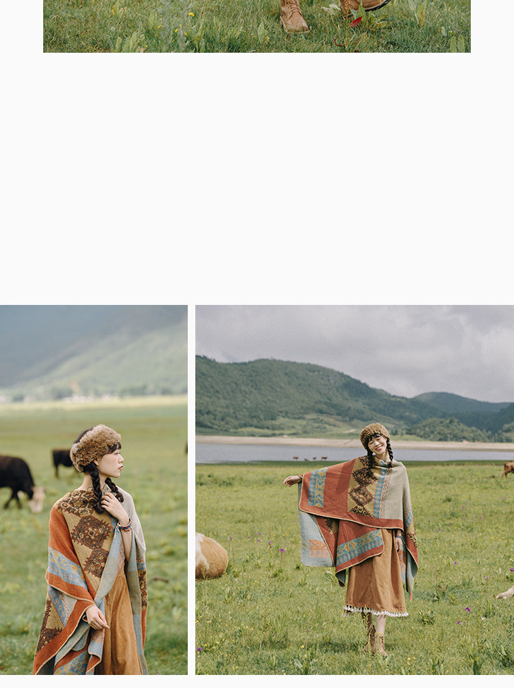 青海西藏茶卡盐湖旅游,大开叉披肩民族风加厚披风HJ-001