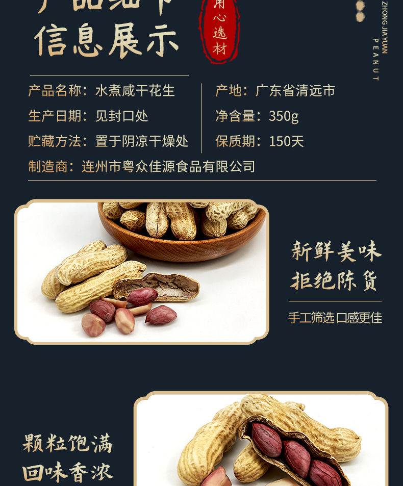 连州粤众佳源水煮咸干花生自立袋350克休闲食品果脯蜜饯开袋即食