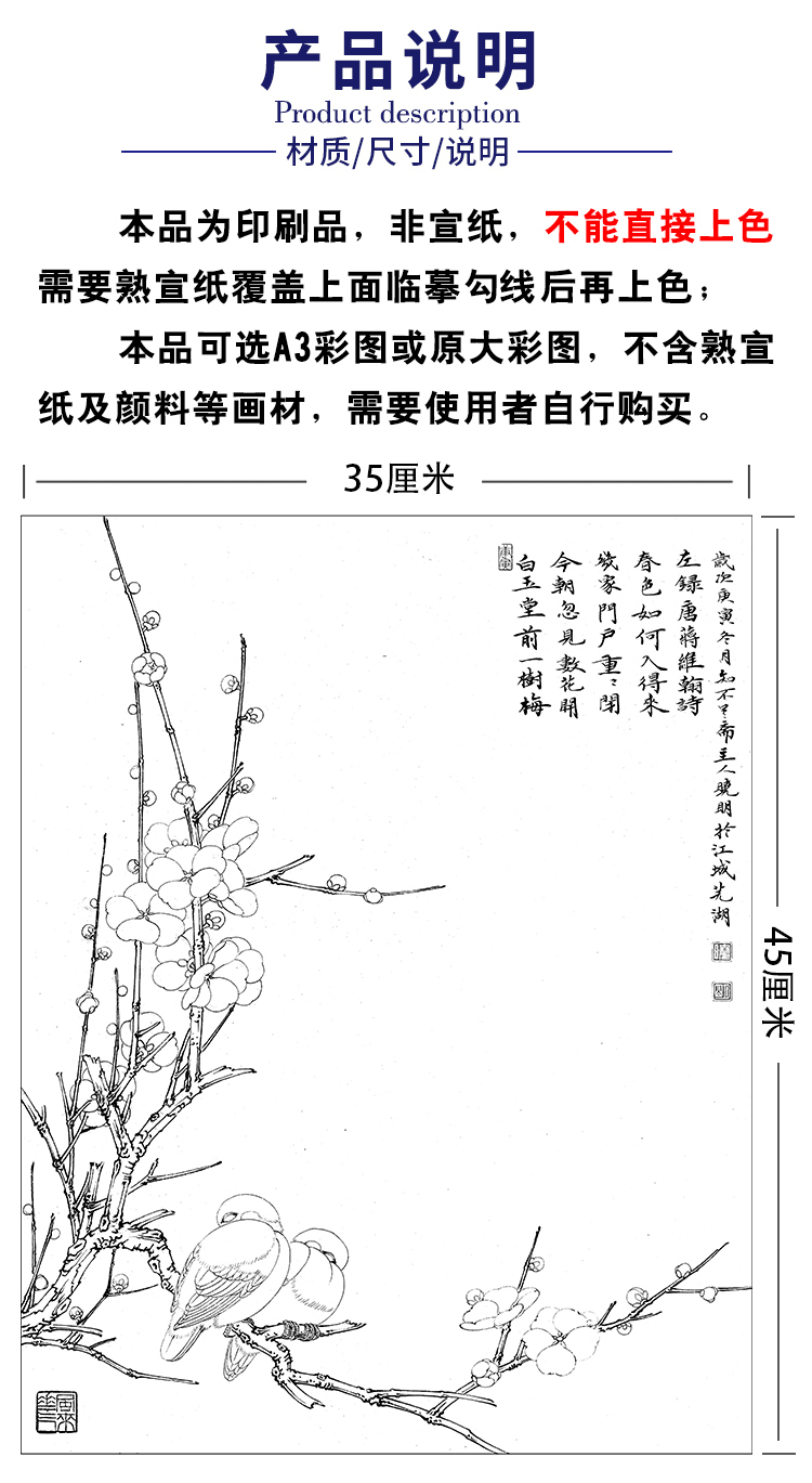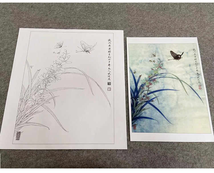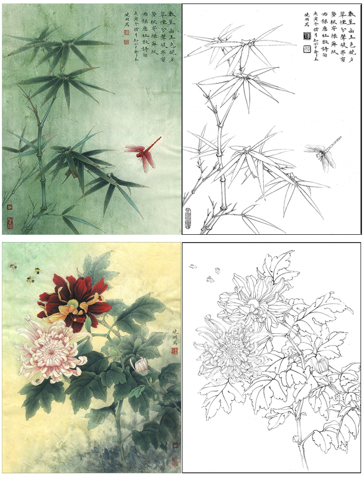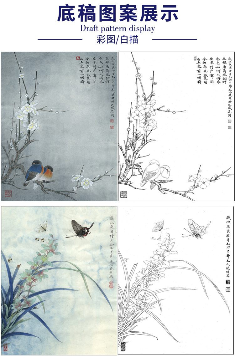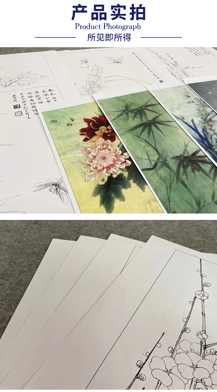 李晓明工笔画白描底稿梅兰竹菊一套四幅册页尺寸35×45厘米KF24