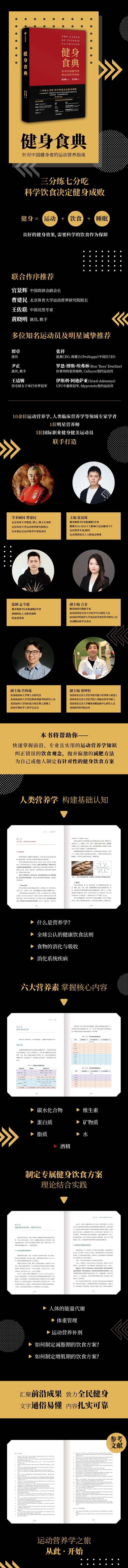 2.专门针对中国健身者的运动营养指南,科学饮食成就理想身材。全书图文并茂、通俗易懂、系统全面,内容扎实可靠,参考文献全面,科学性与可读性并重。