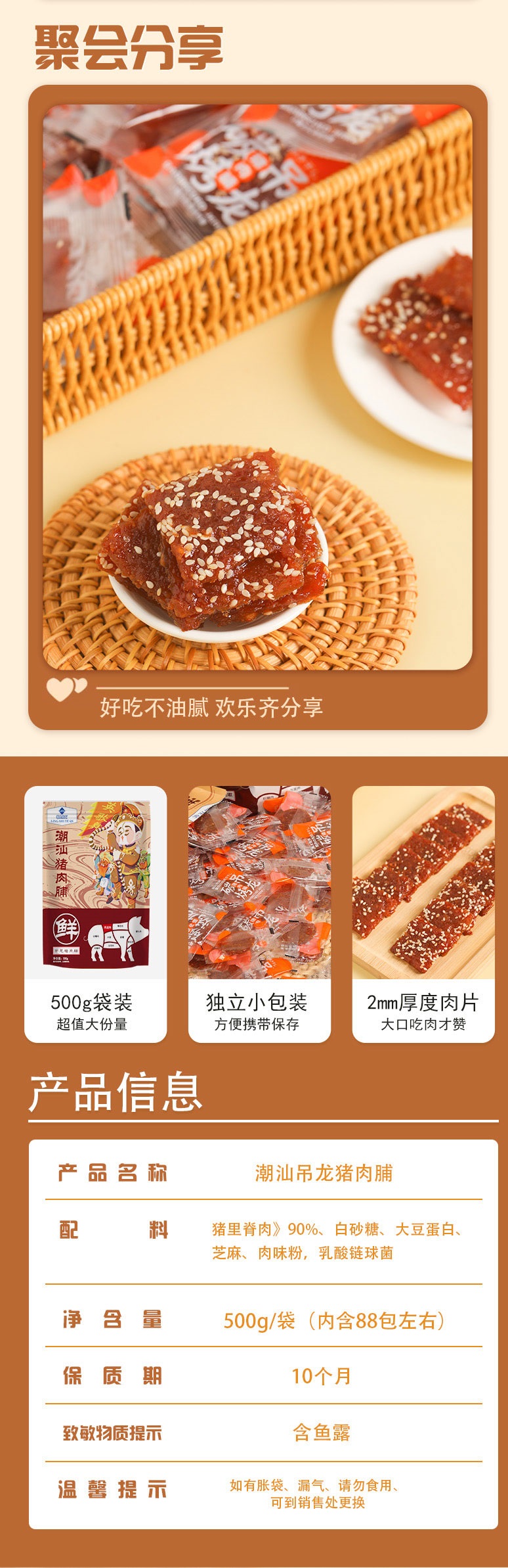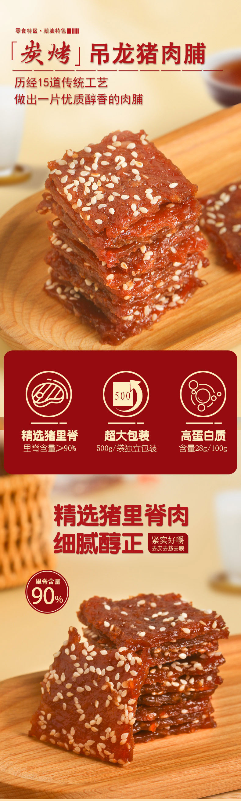 【东方甄选推荐】零食特区 潮汕猪肉脯 肉质紧实 软硬适中 碳烤工艺500g/袋