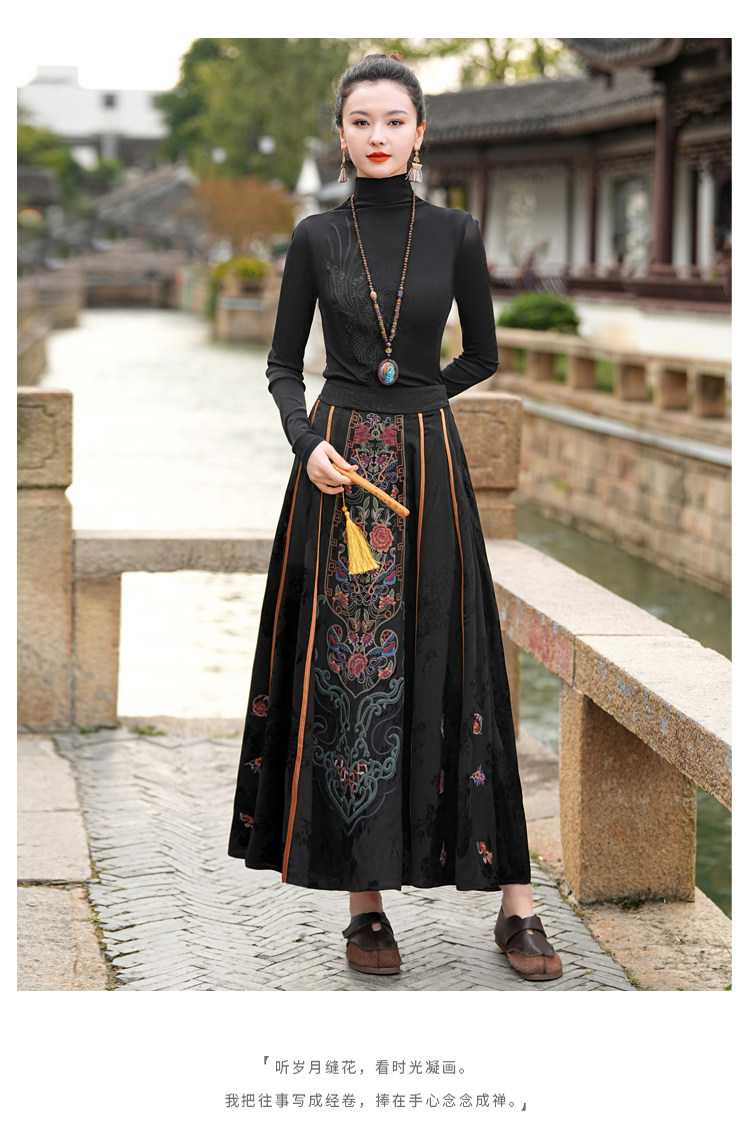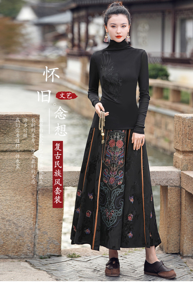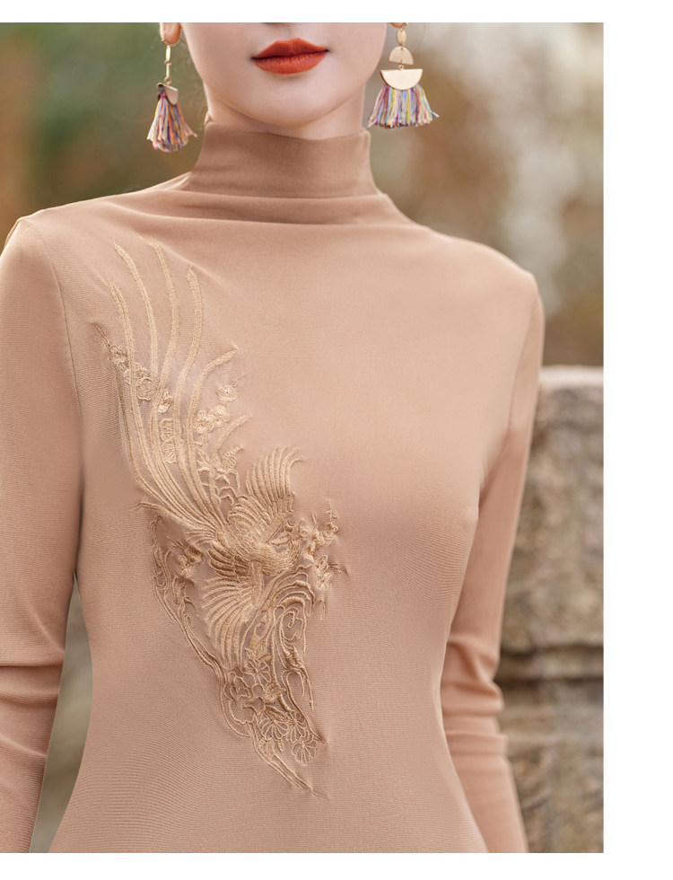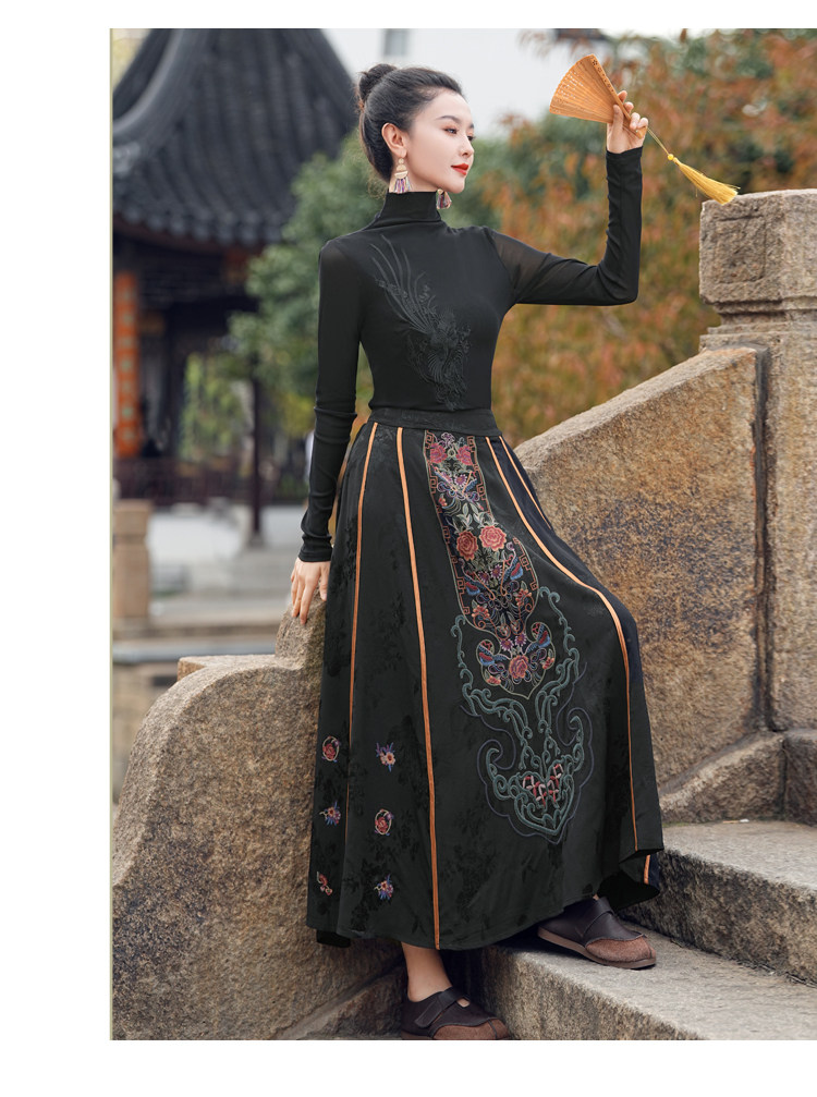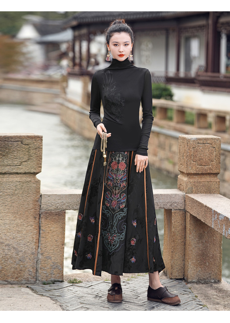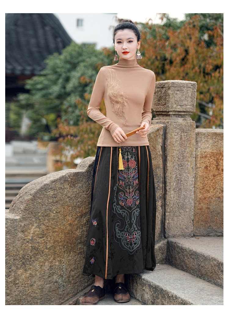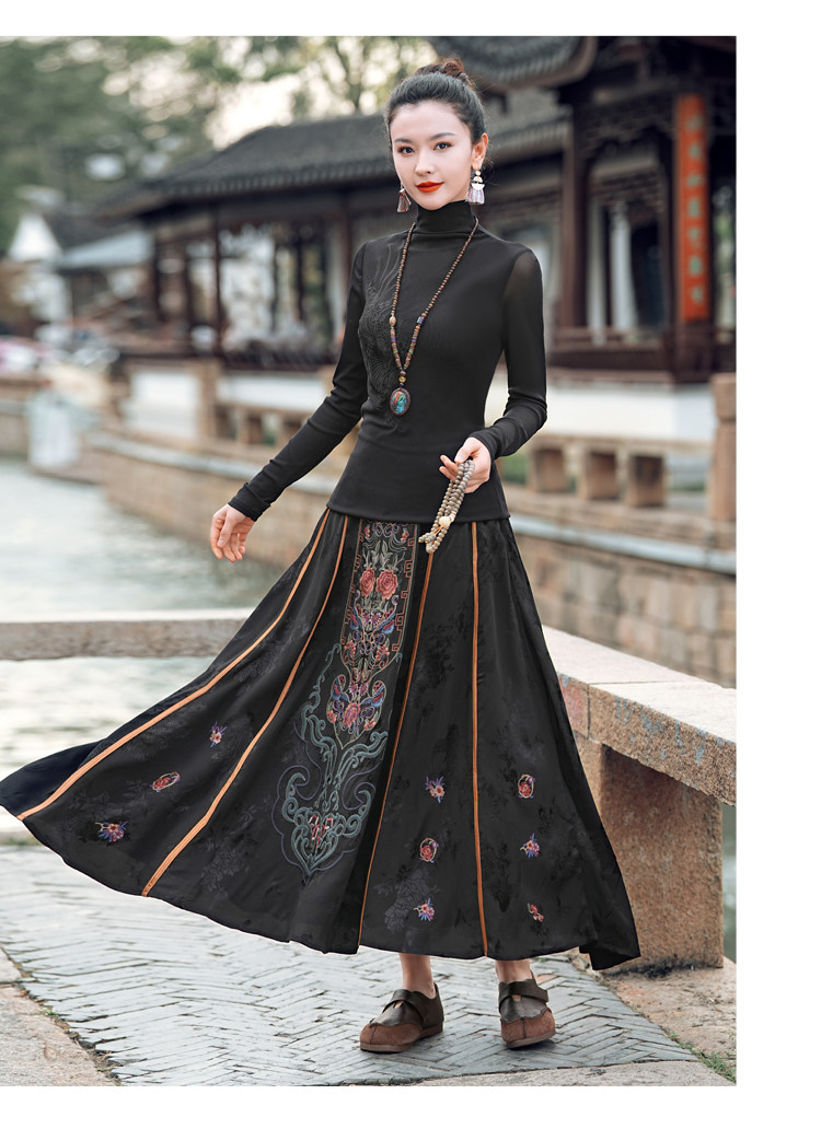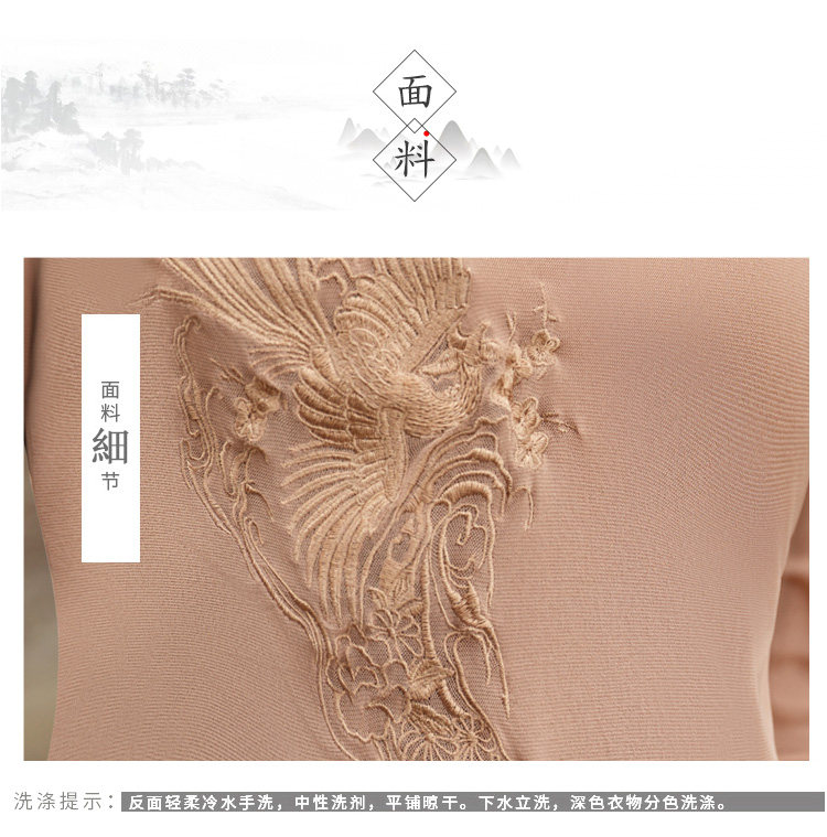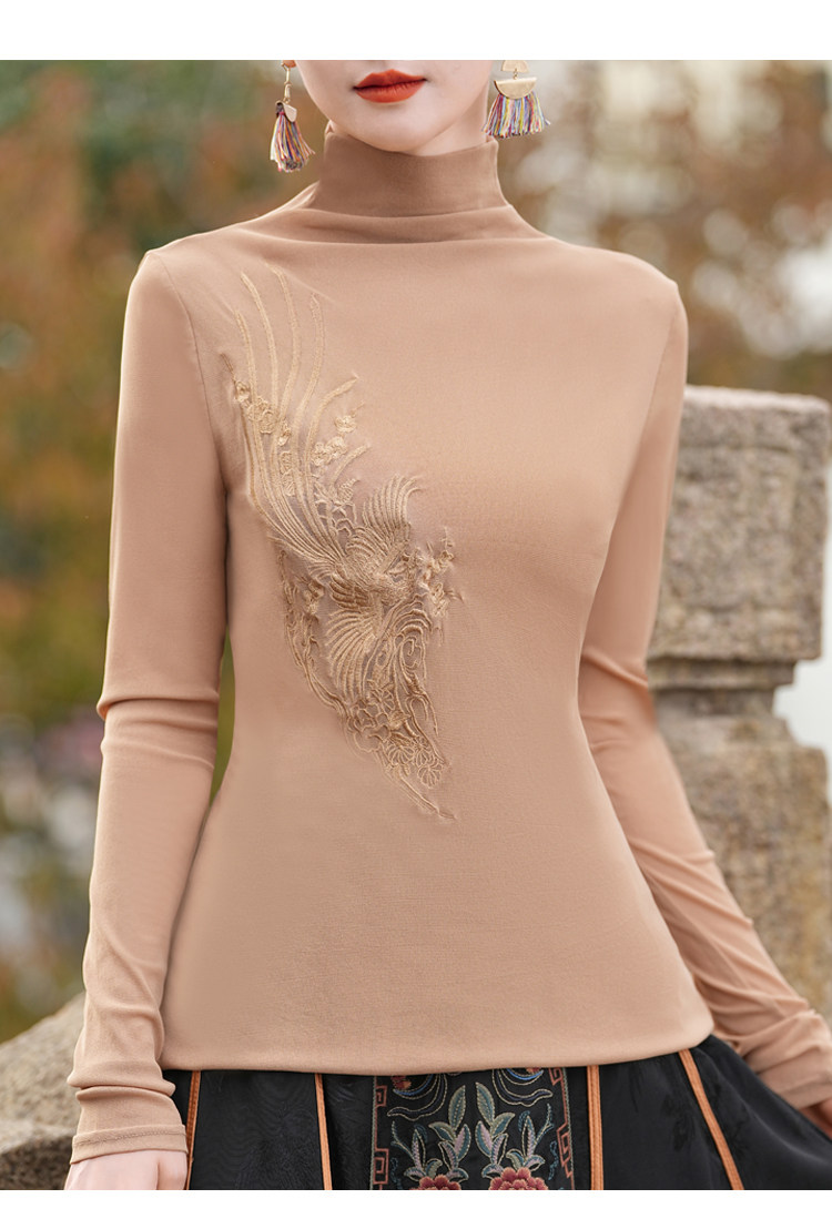 A8061# 新中式国风高级国潮双层网纱立领长袖刺绣T恤女打底衫