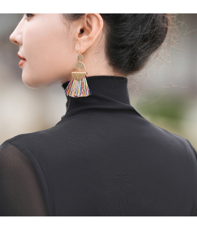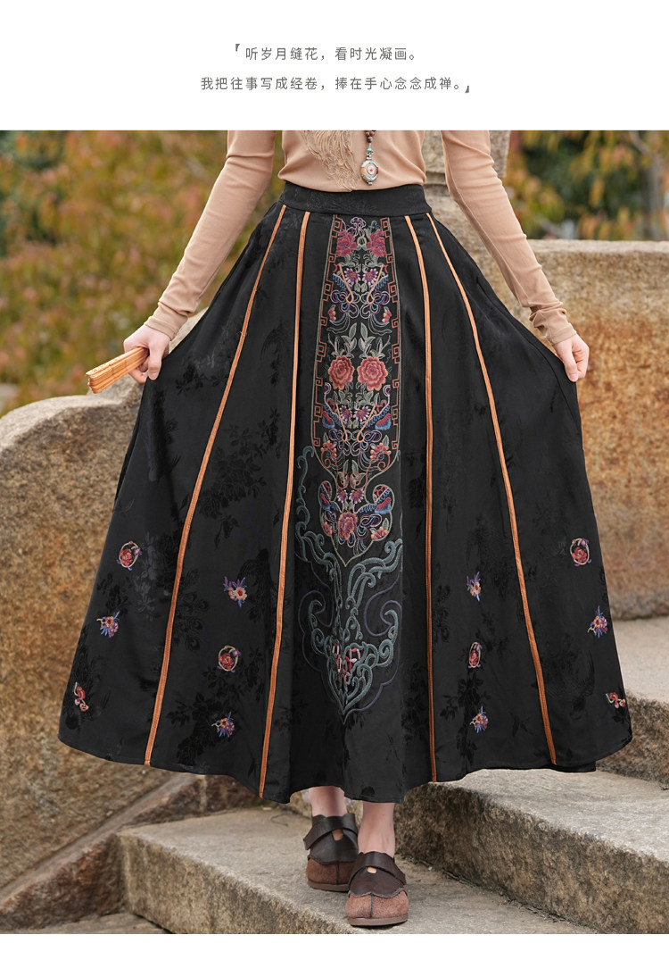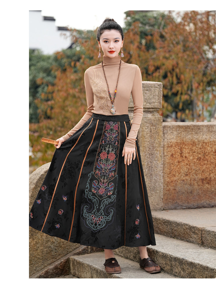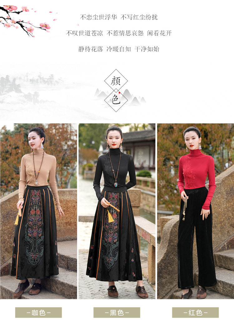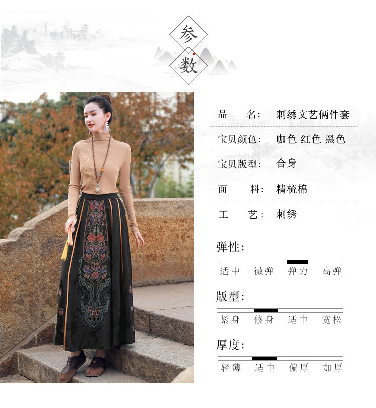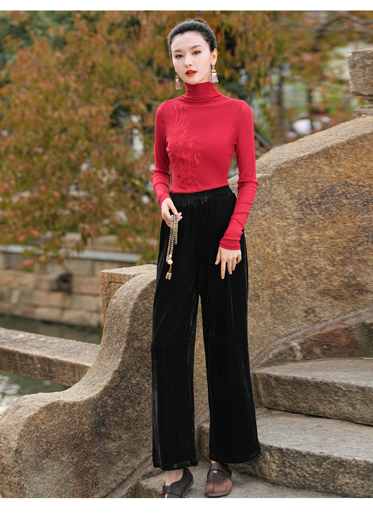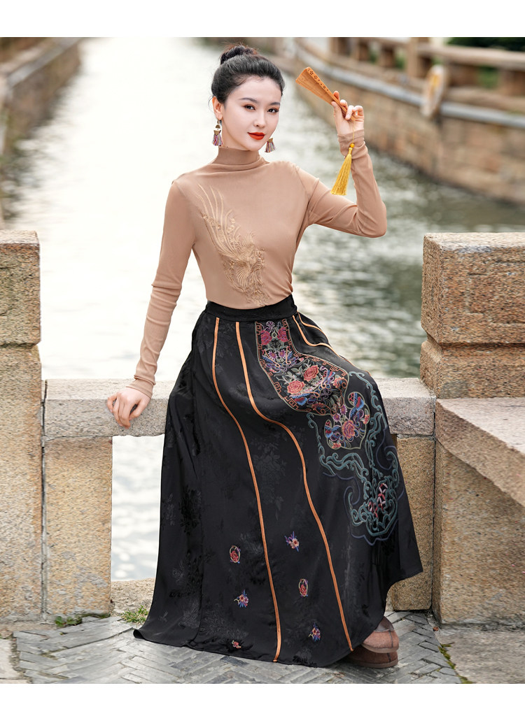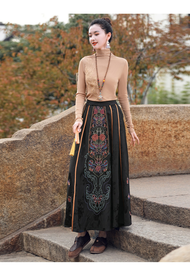 A8061# 新中式国风高级国潮双层网纱立领长袖刺绣T恤女打底衫