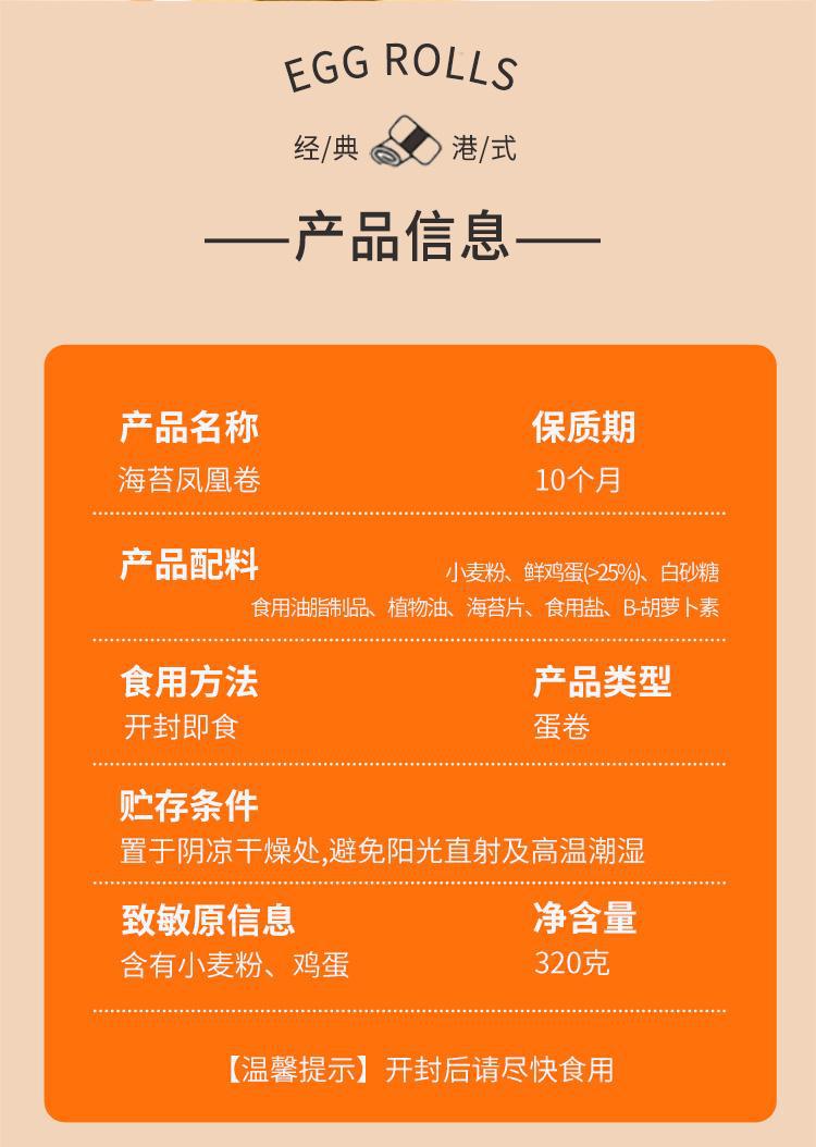 【蛋香酥脆,港式传统休闲零食】海苔凤凰卷 港式传统蛋香酥脆 休闲零食点心 独立包装礼盒搭配 下午茶点心-QQ