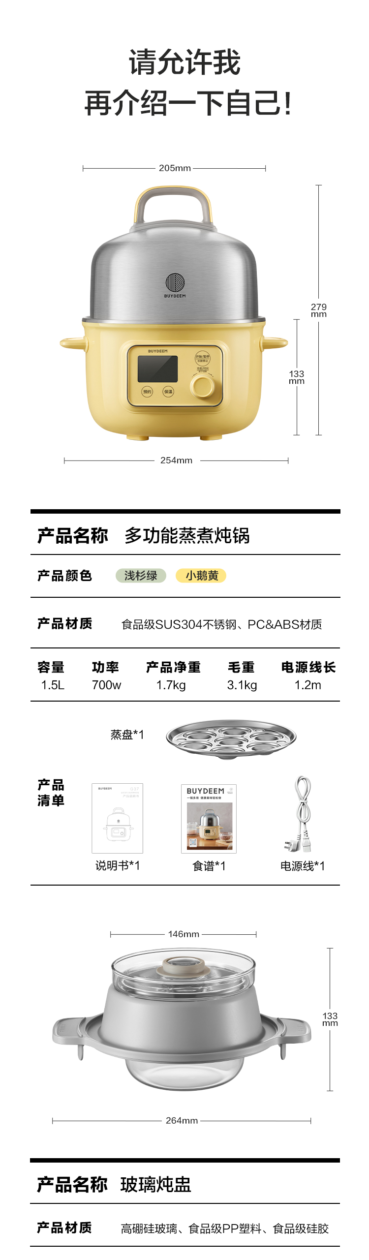 需加购配件:玻璃炖盅、陶瓷蒸蛋盘