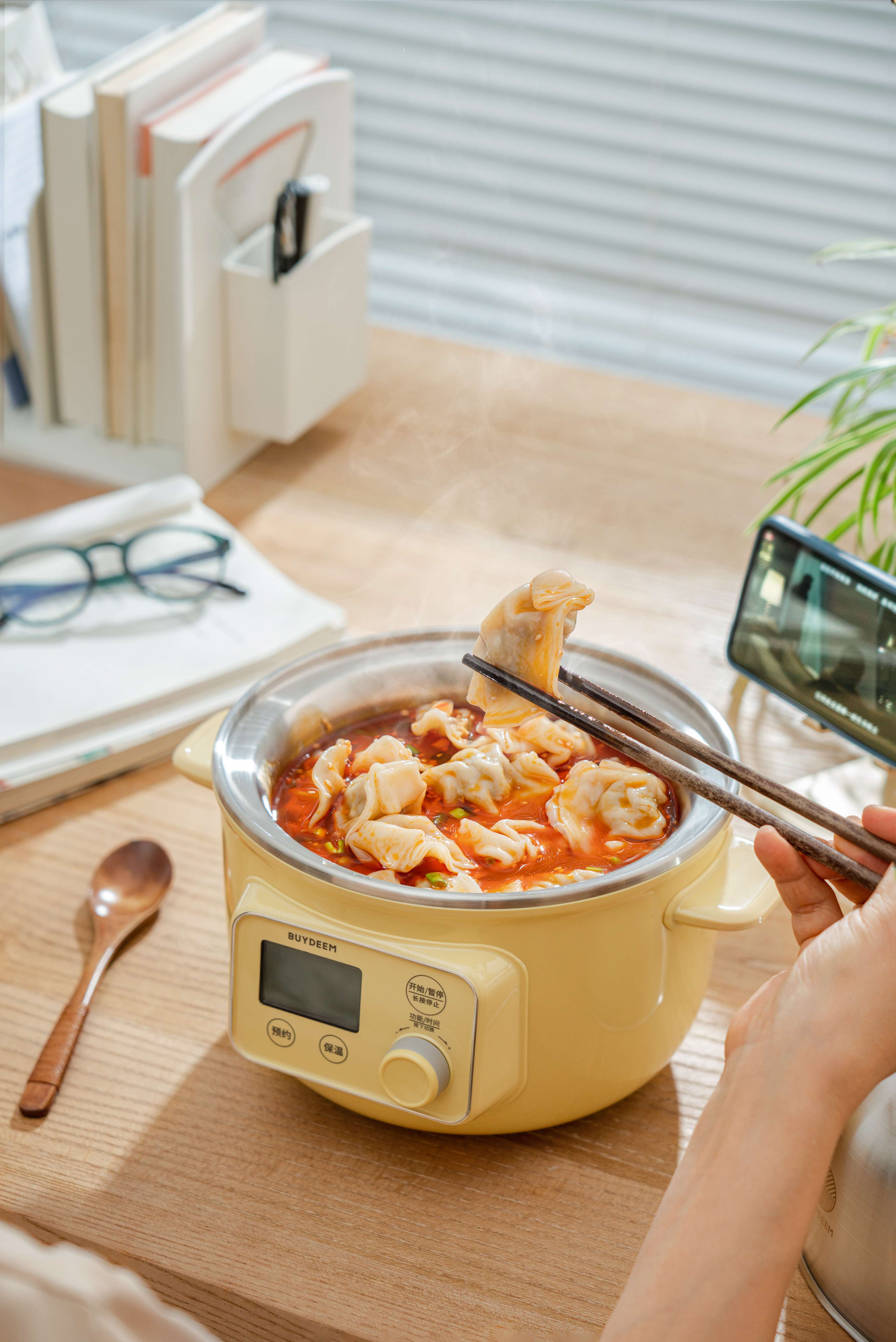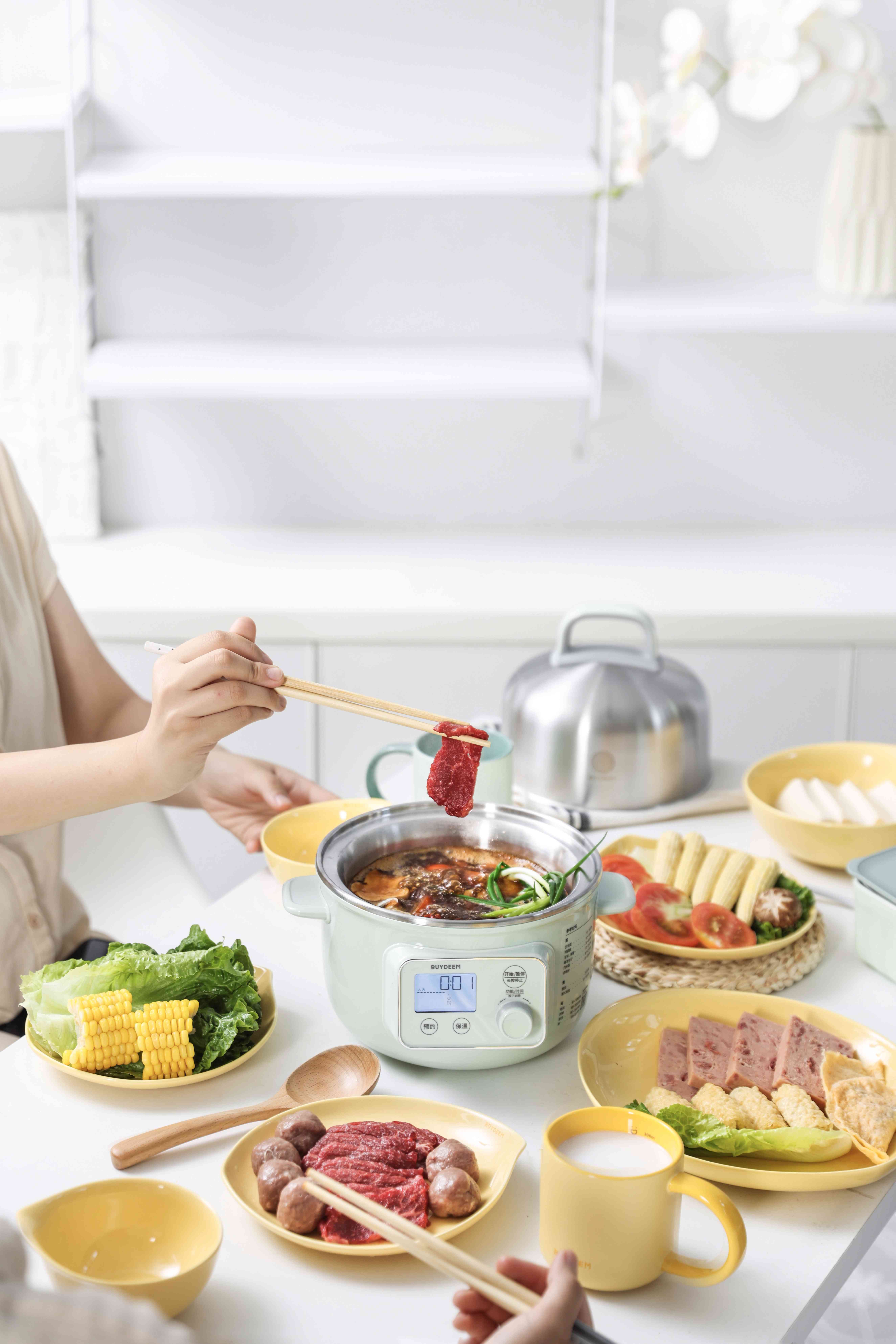 蒸煮锅占地比A4纸还小,橱柜、餐桌、收纳架,放哪都合适。完美适配1-2人小家庭,三餐美味都能用它轻松解决。