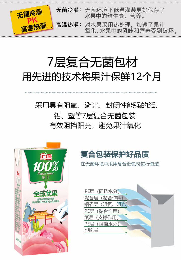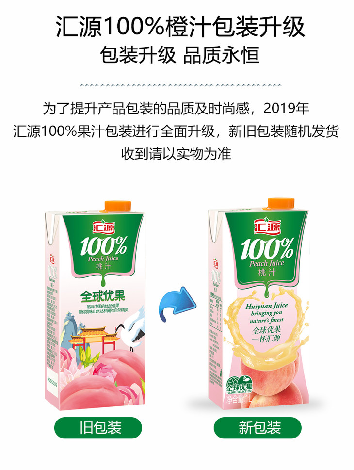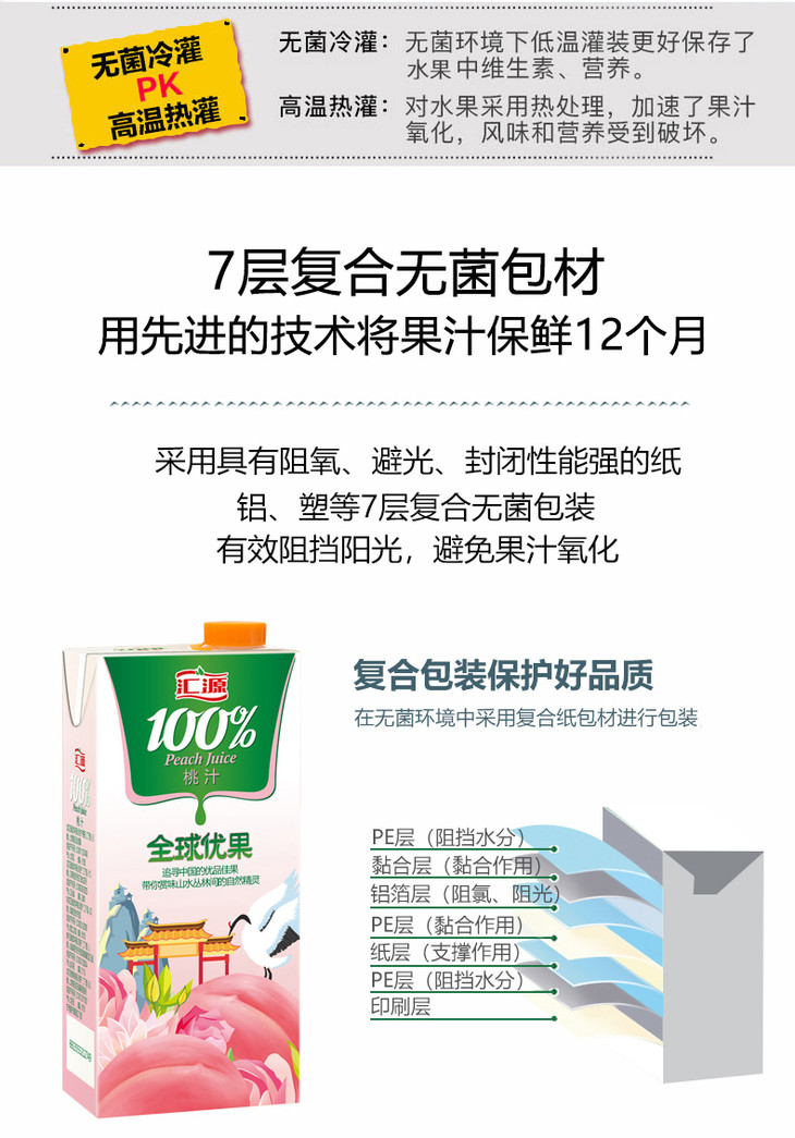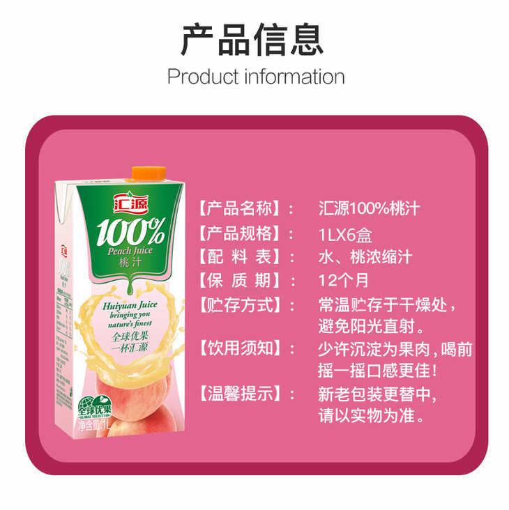 [饮料]汇源100%桃汁复合果汁1L