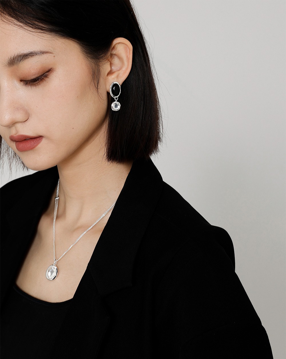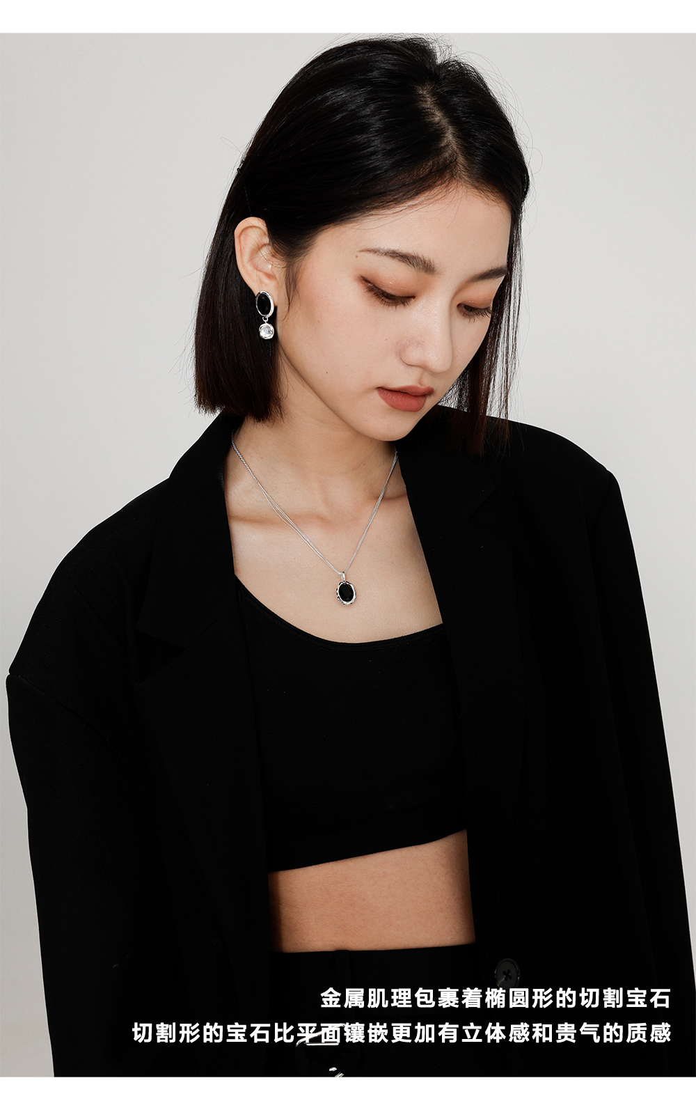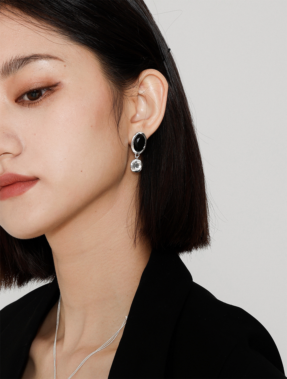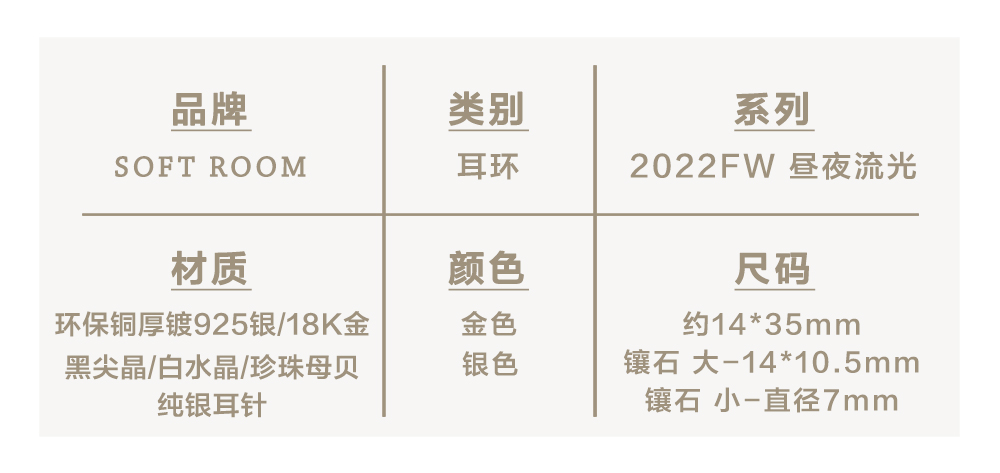 高级复古 SOFT ROOM 双色水晶宝石耳环金黑白