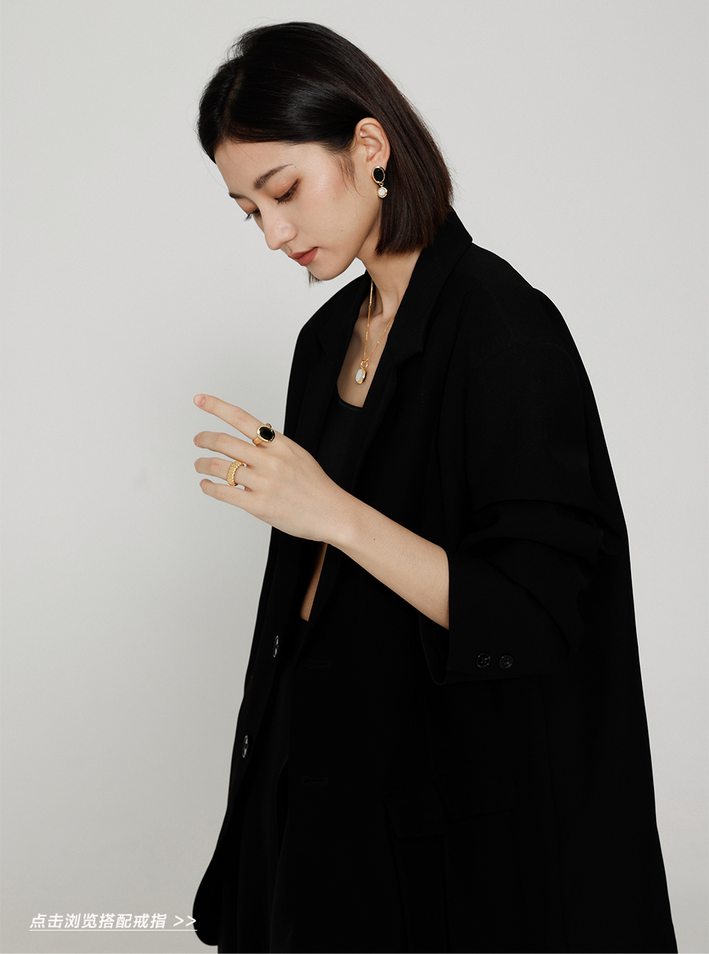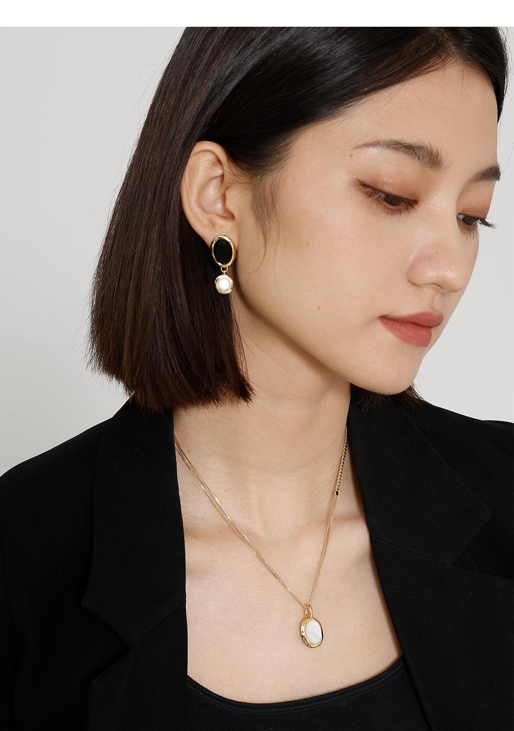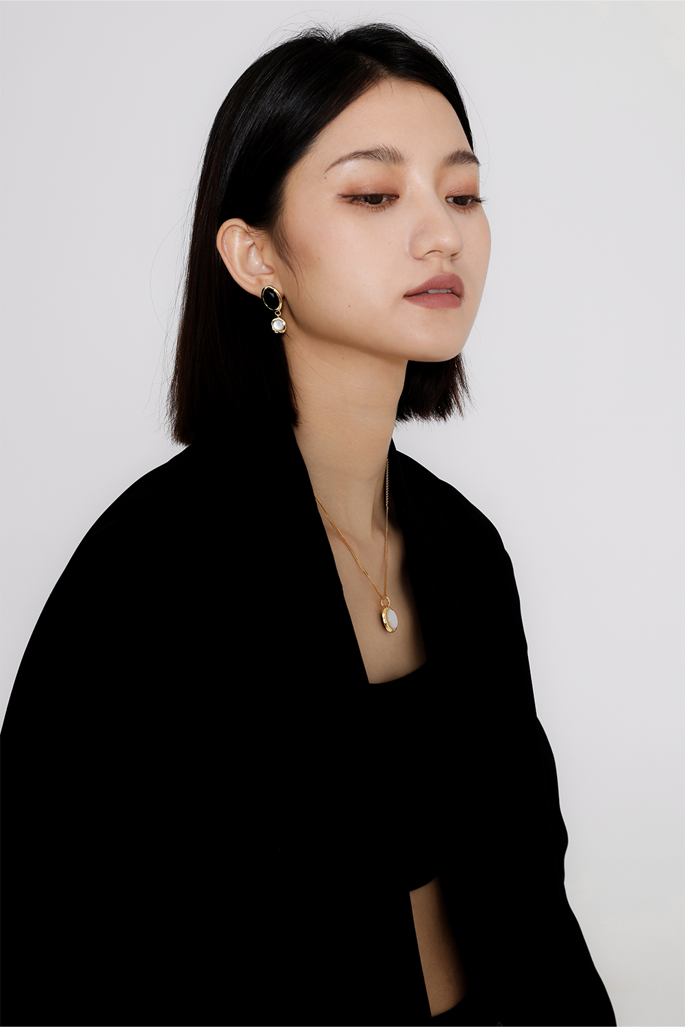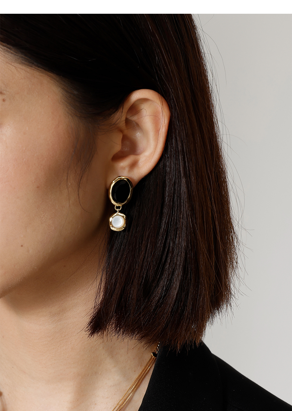 高级复古 SOFT ROOM 双色水晶宝石耳环金黑白
