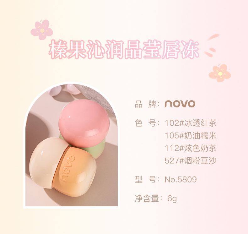 【团购秒杀】NOVO小蘑菇奶罐唇冻口红滋润补水保湿淡化唇纹玻璃唇镜面水光唇釉