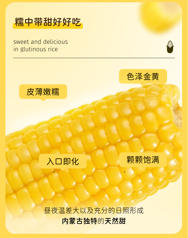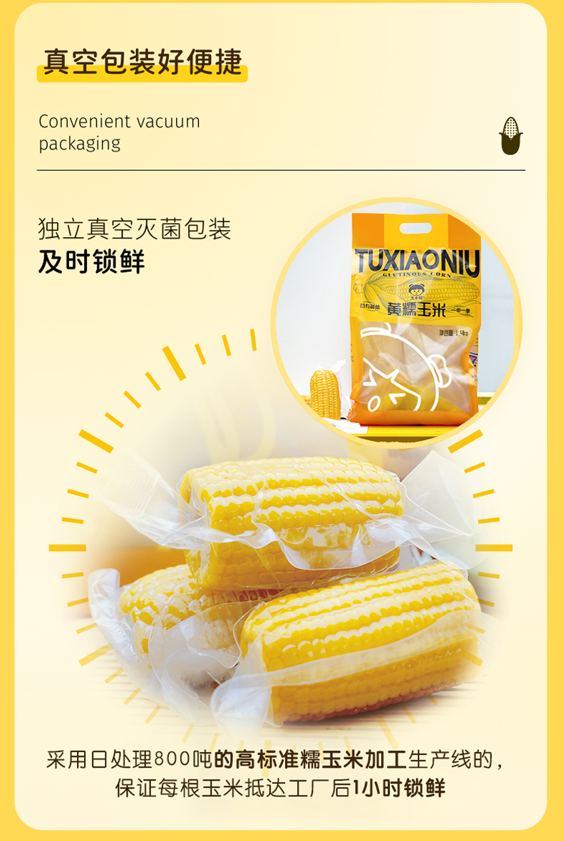 【8穗再加送2穗】到手10穗 内蒙古土小妞黄糯玉米 香甜软糯鲜嫩玉米棒 真空包装家庭装1400g/袋