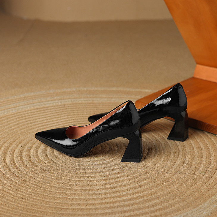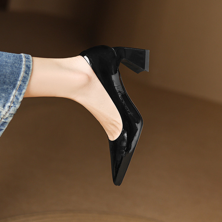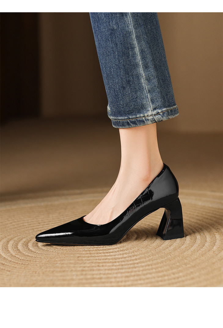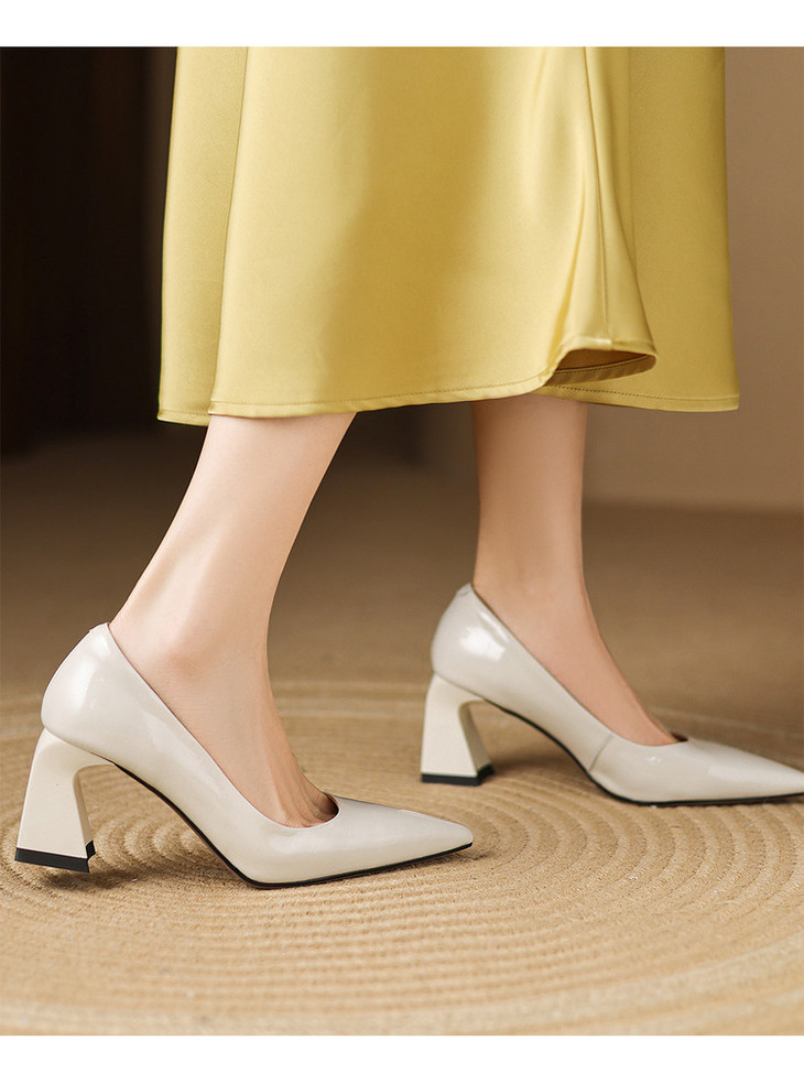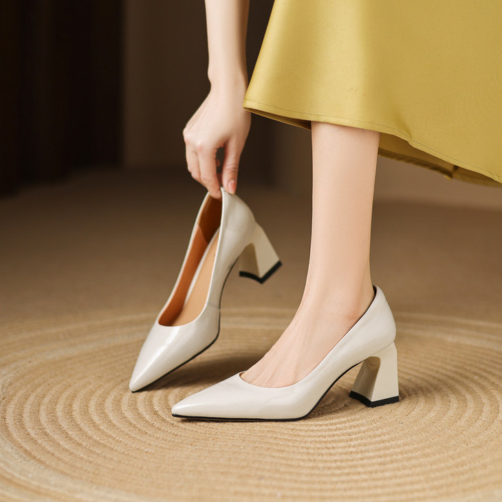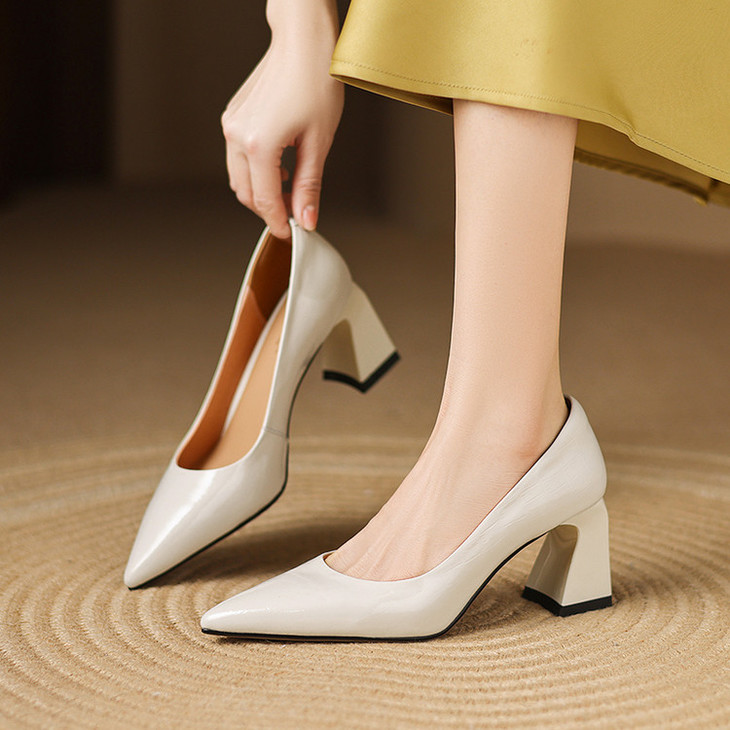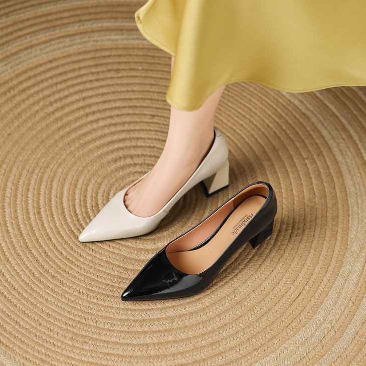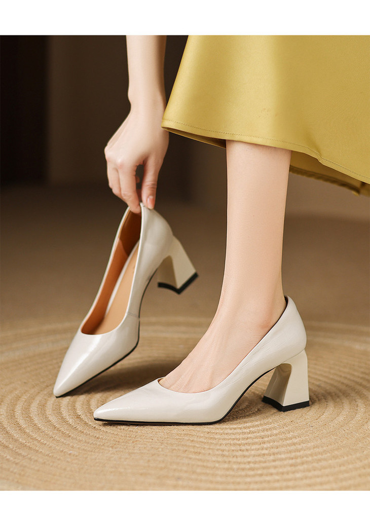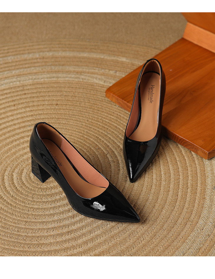 【预售5天】尖头气质优雅粗跟浅口一脚蹬高跟鞋春季通勤风舒适简约工作鞋LD&7274