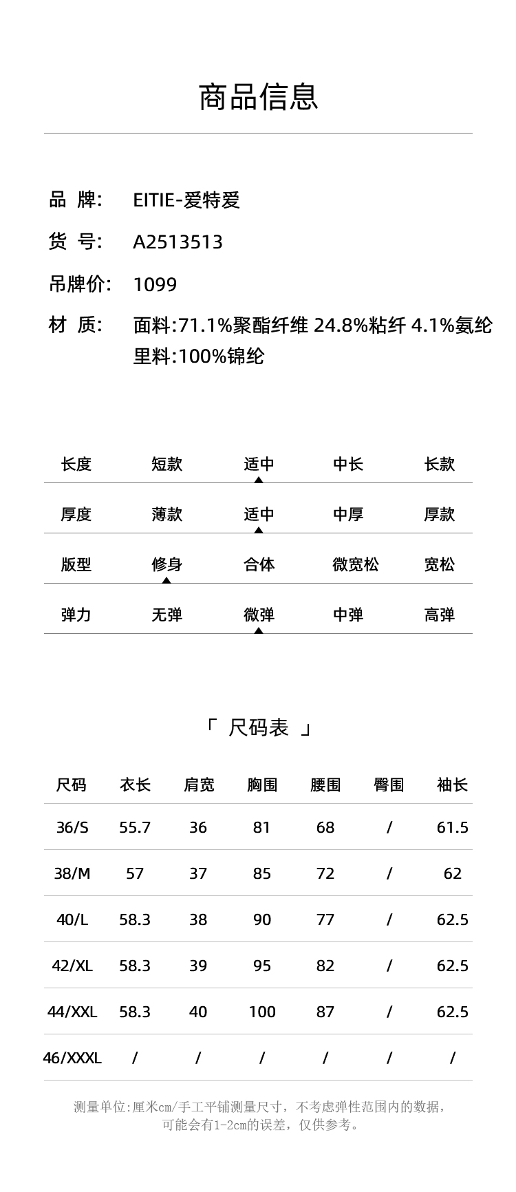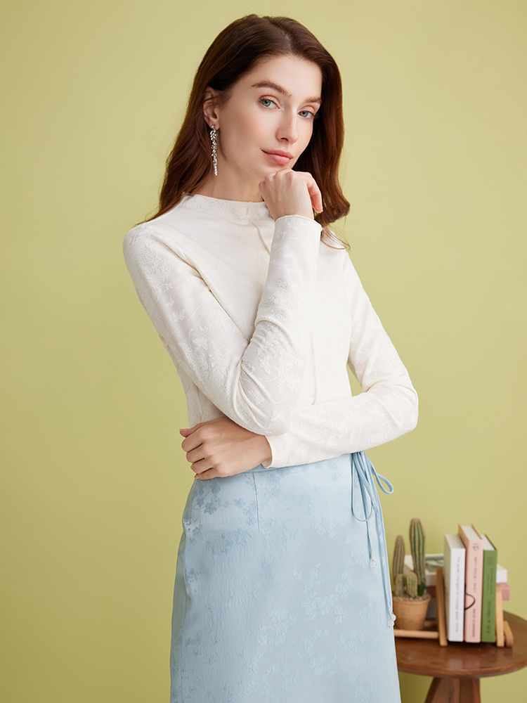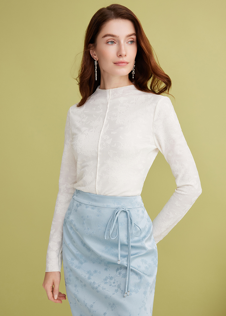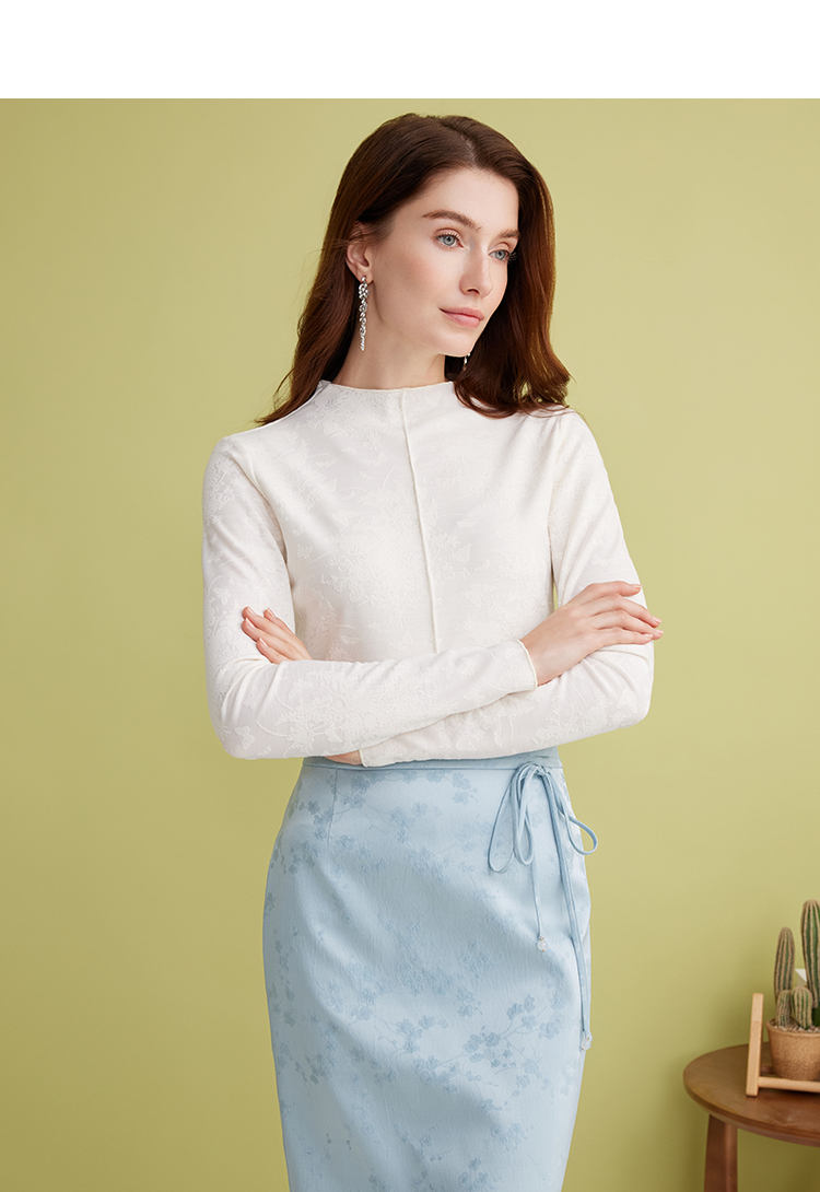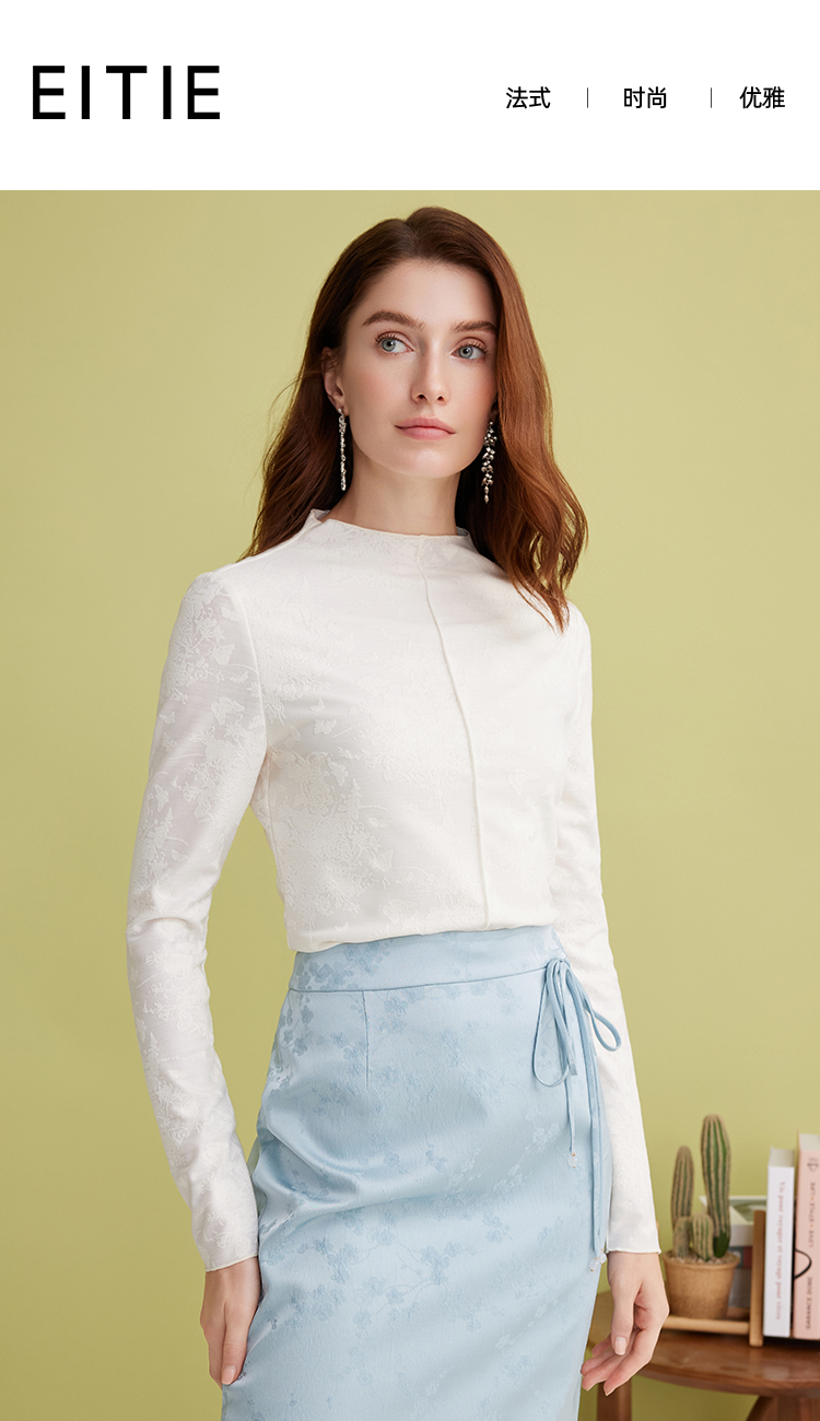 EITIE爱特爱百搭舒适修身显瘦立领白色打底衫长袖T恤春季新款A2513513