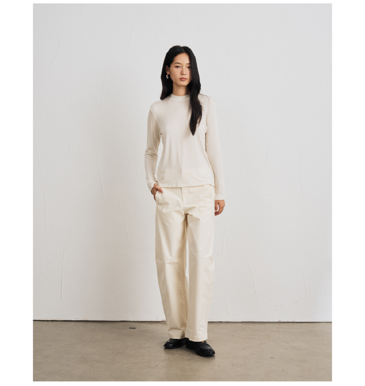 羊毛与天丝醋酸的完美结合。既有羊毛的温润体感,又用醋酸和天丝带来亲肤的丝滑细腻享受。澳洲黄金产区的美丽诺羊毛+奥地利兰精公司产的天丝+美国伊士曼的醋酸纤维。两边袖子上带有立体袖缝工艺,小设计感,却又不失基础百搭。