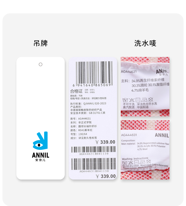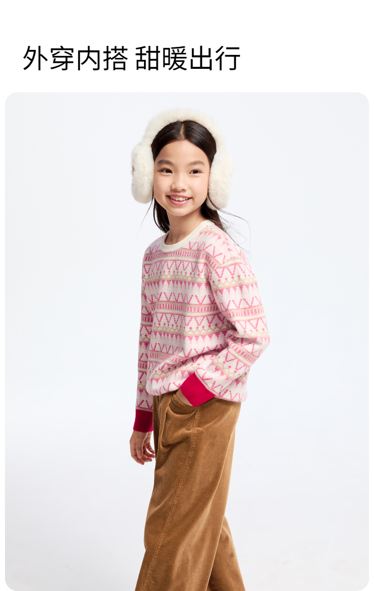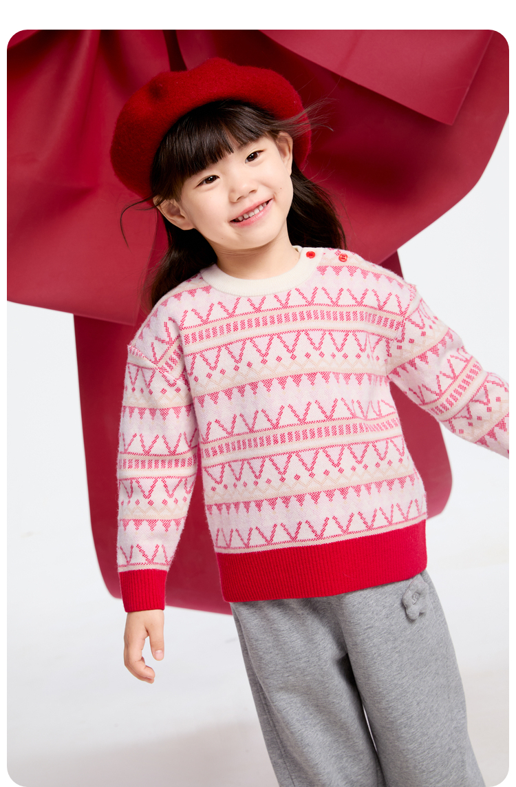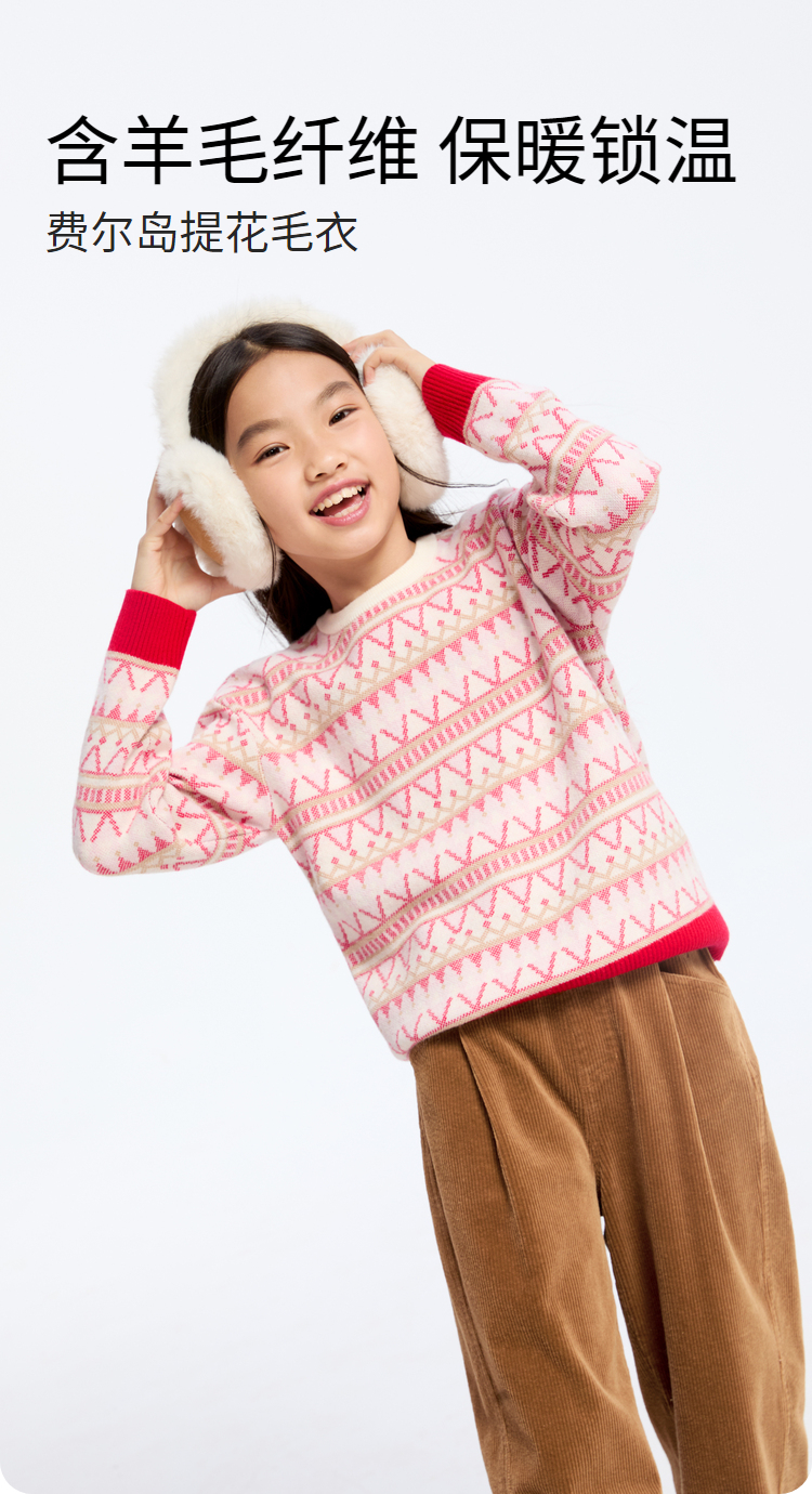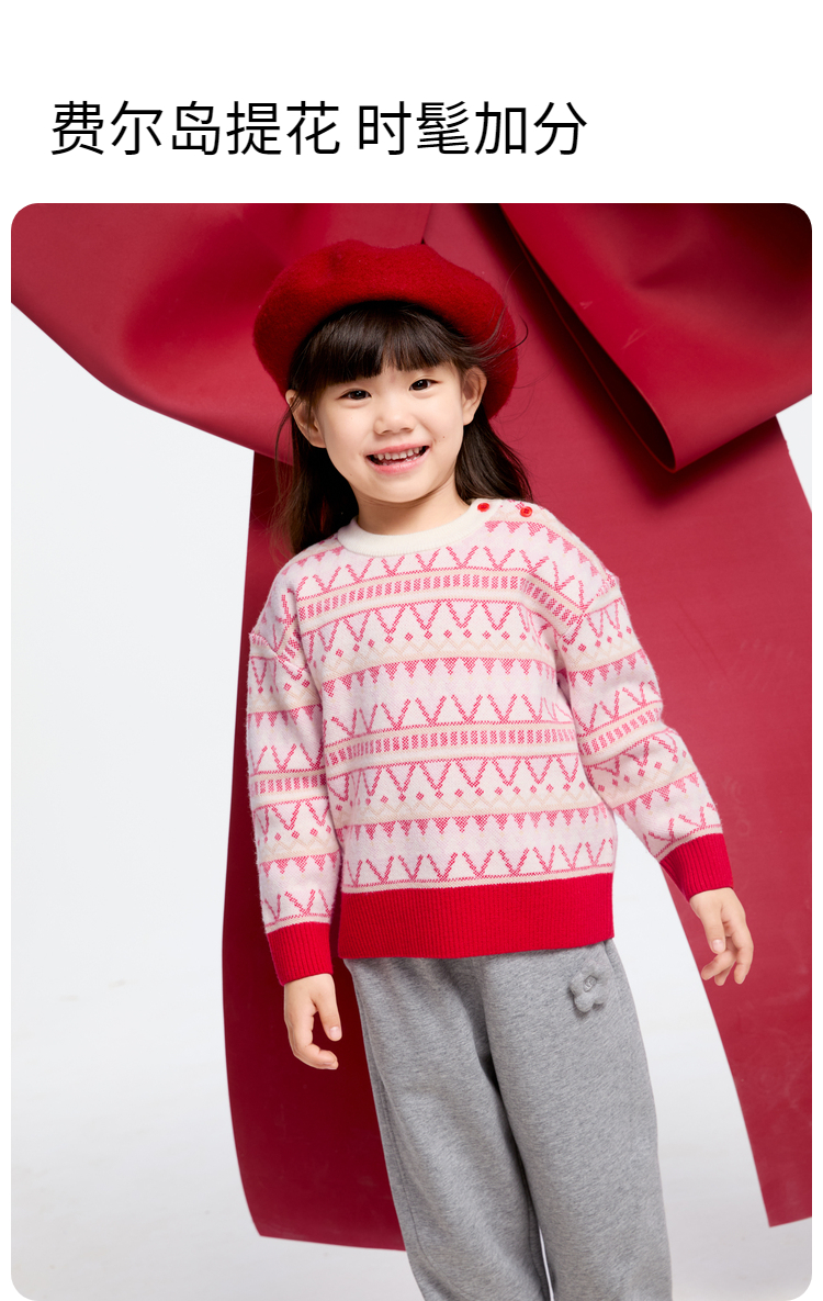 女童费尔岛提花毛衣冬季新款安奈儿童装实体店同款AG444631