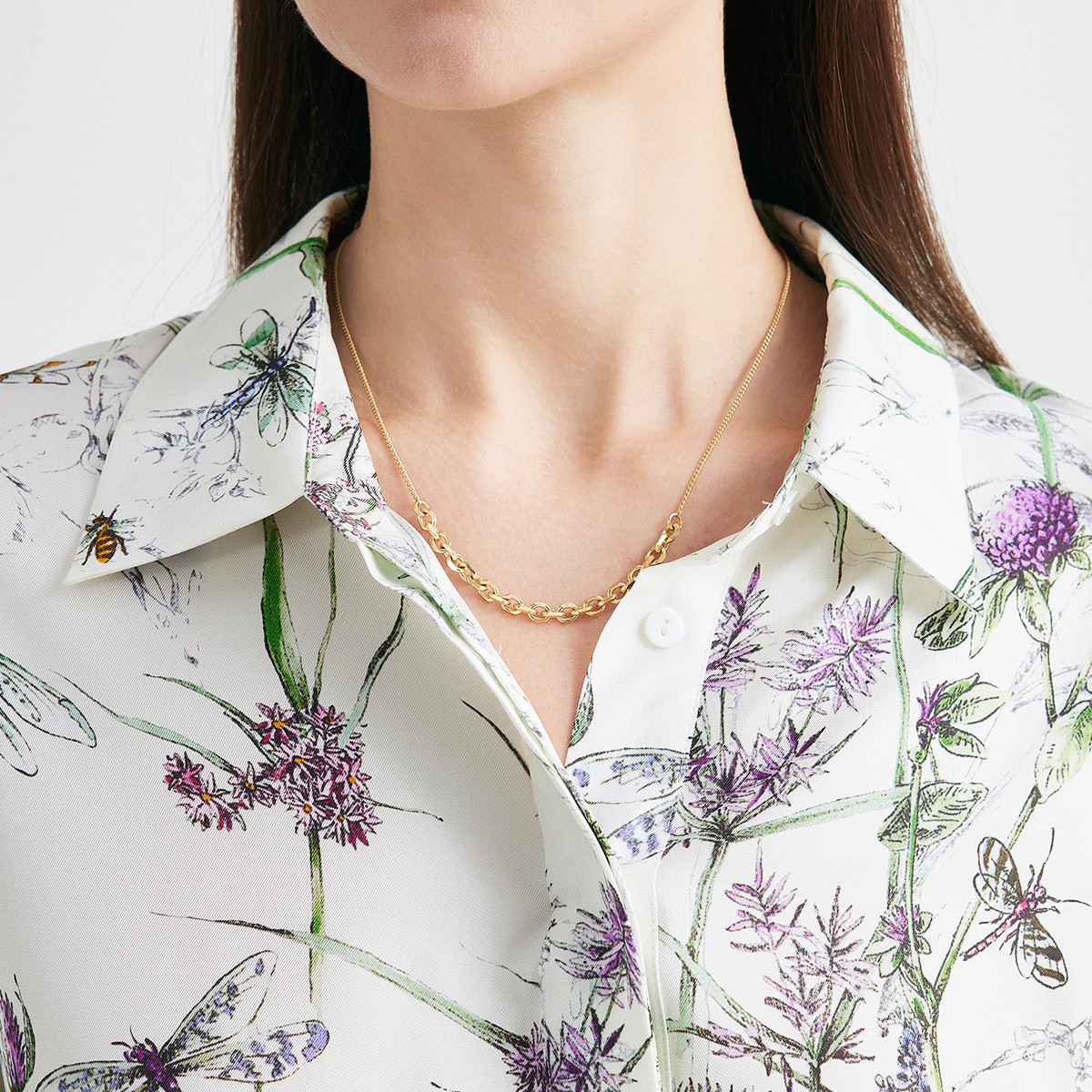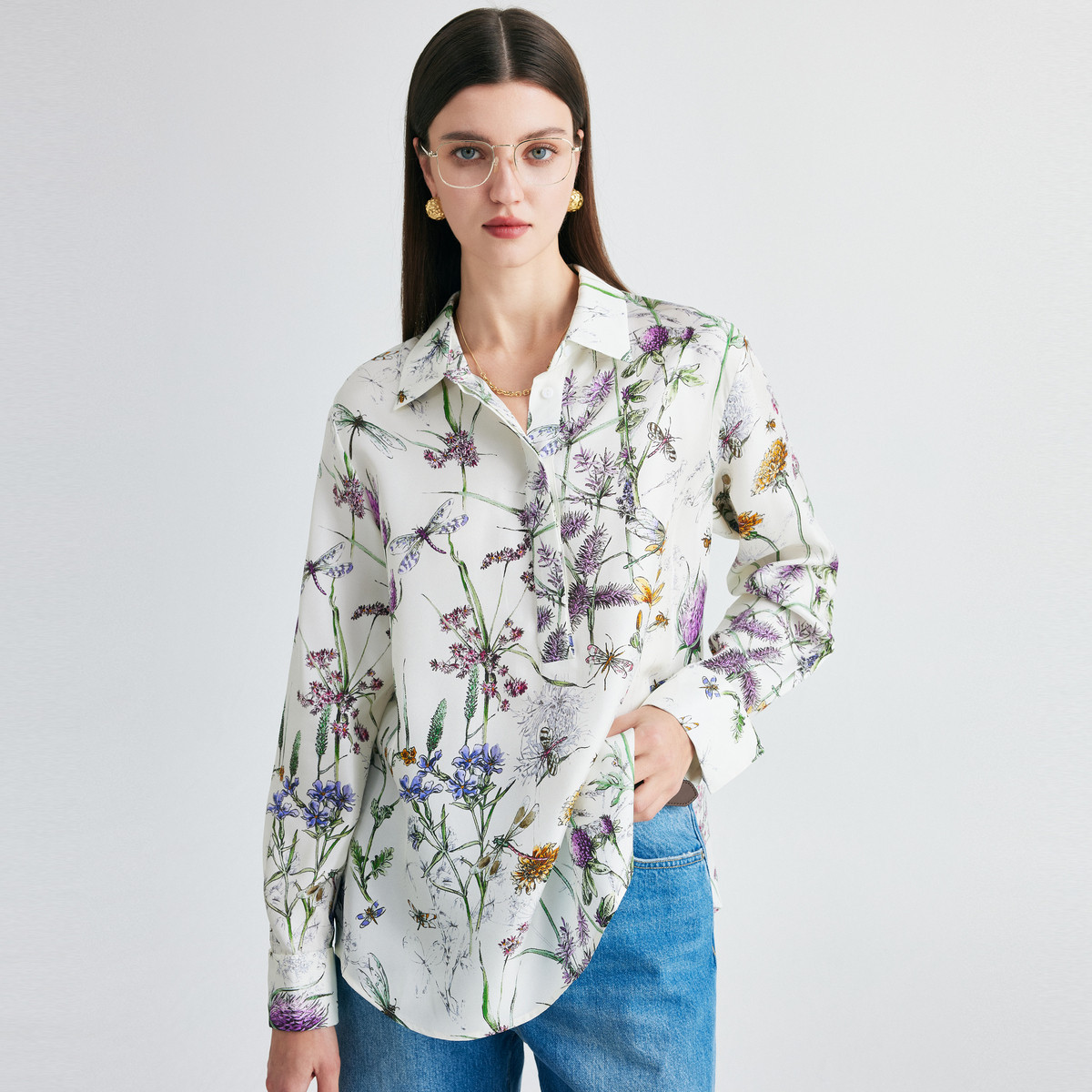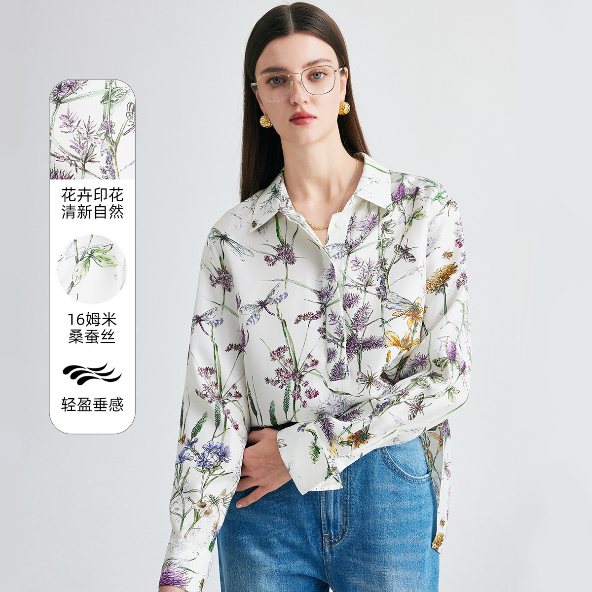 PALUOPO/PL16姆米斜纹绸春夏翻领高级感田园风印花桑蚕丝真丝衬衫ES250591Z
