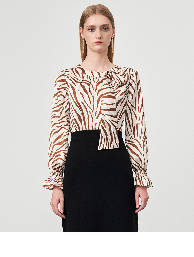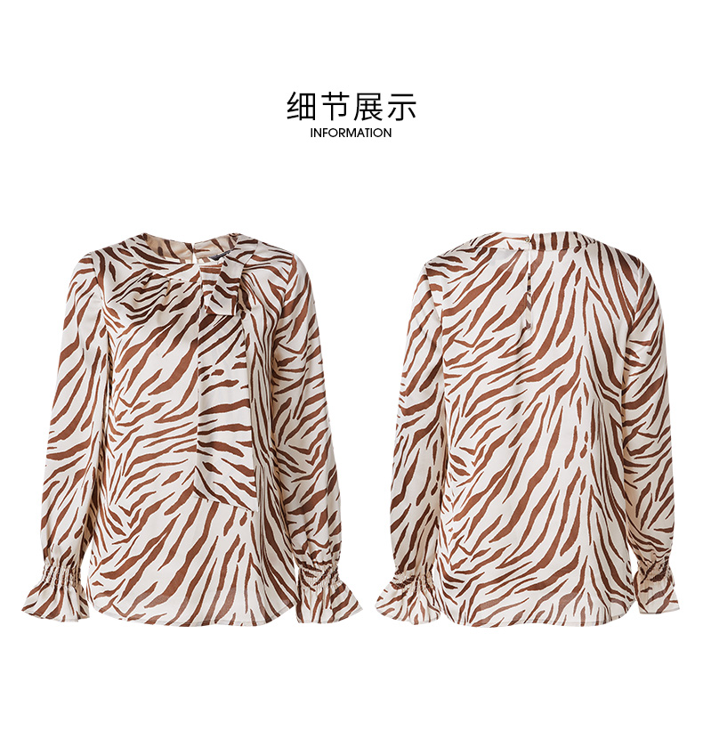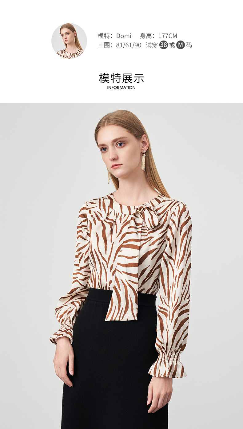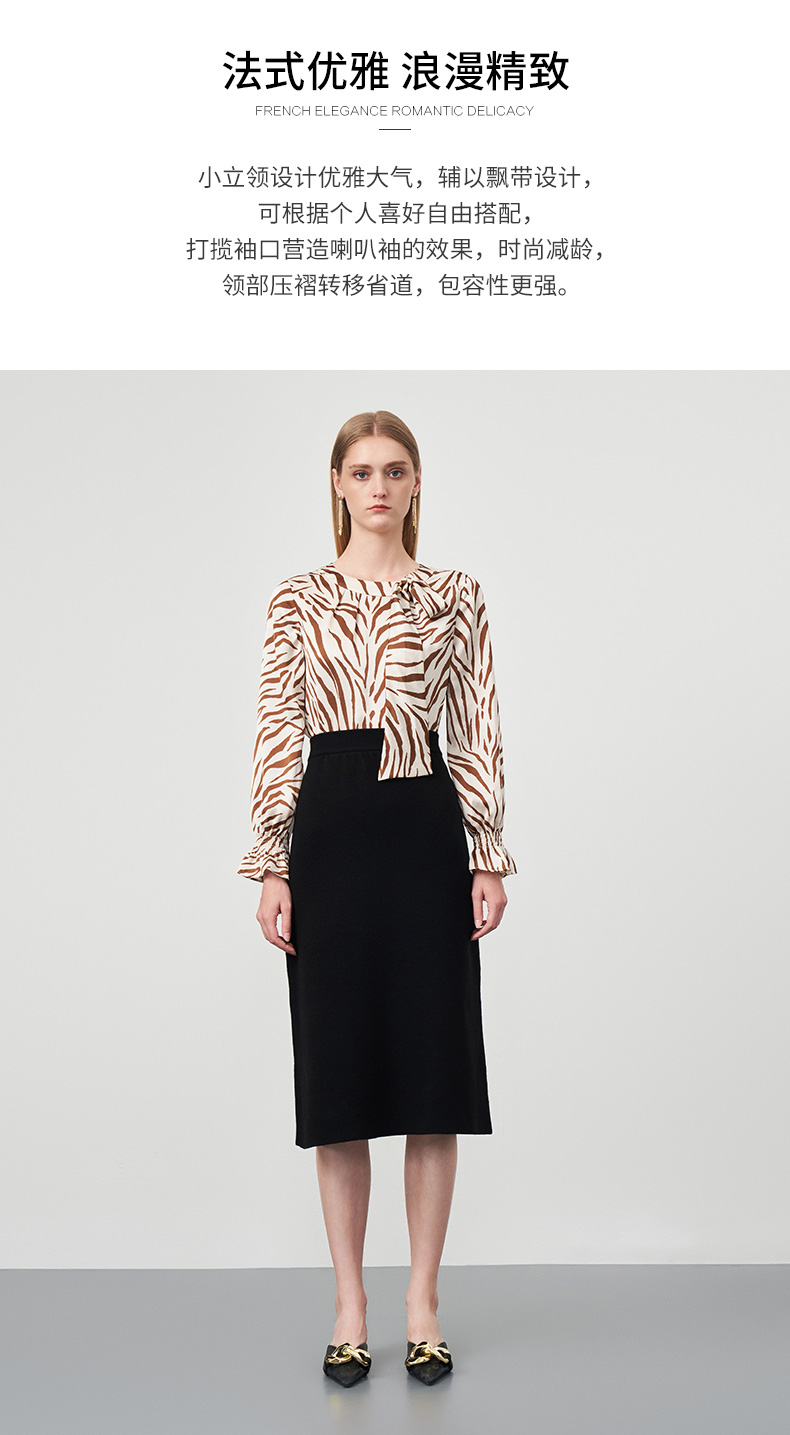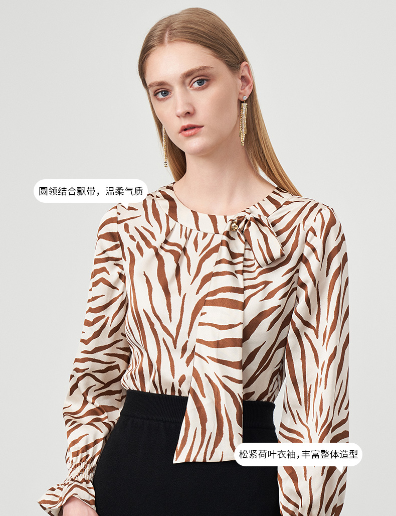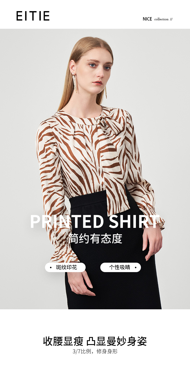 EITIE爱特爱秋季新款修身显瘦百搭印花松紧袖口衬衣上衣6713413